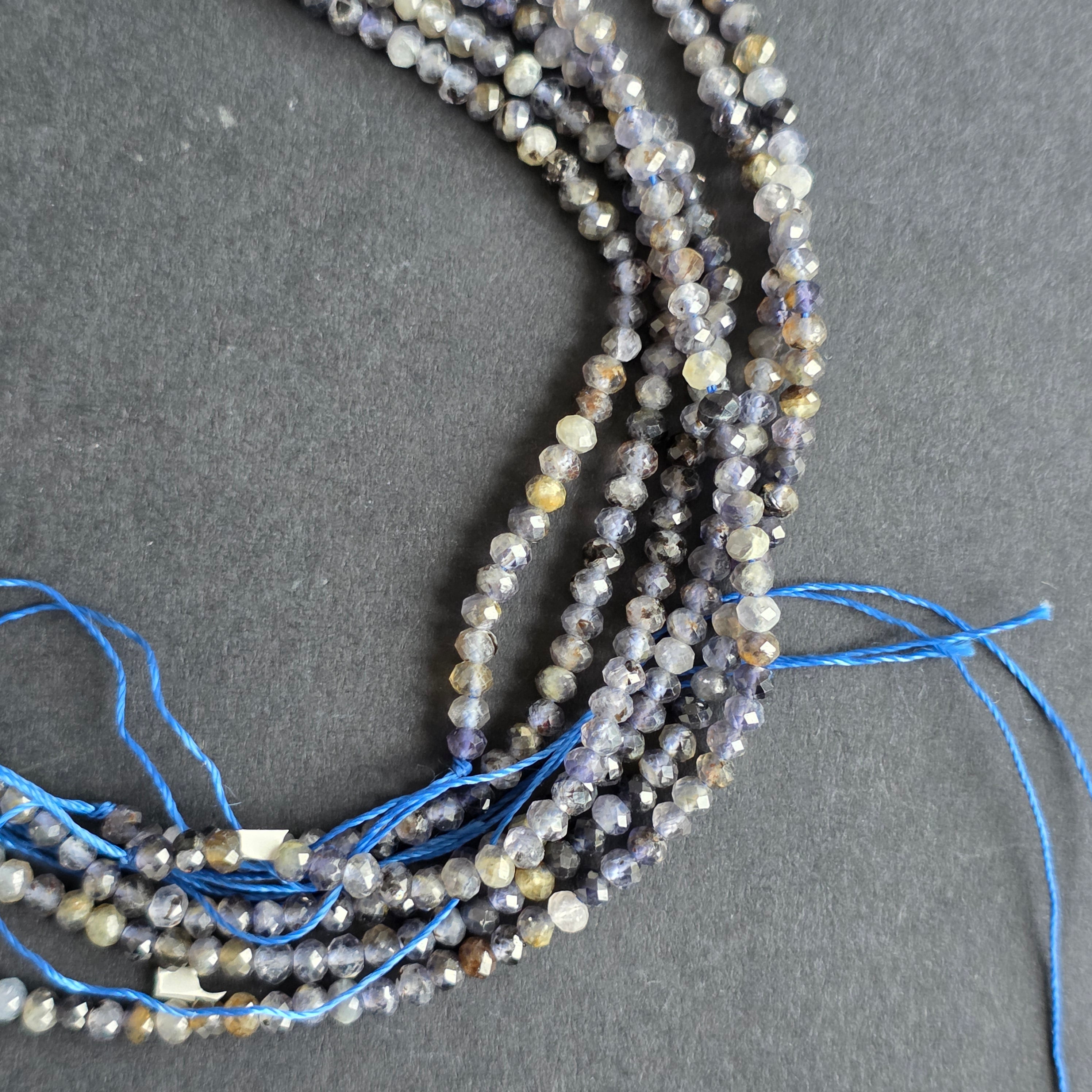 Iolit gömb füzér, természetes csiszolt tányérokból áll, tökéletes nyakláncokhoz, karkötőkhöz vagy egyéb kézműves ékszerekhez.