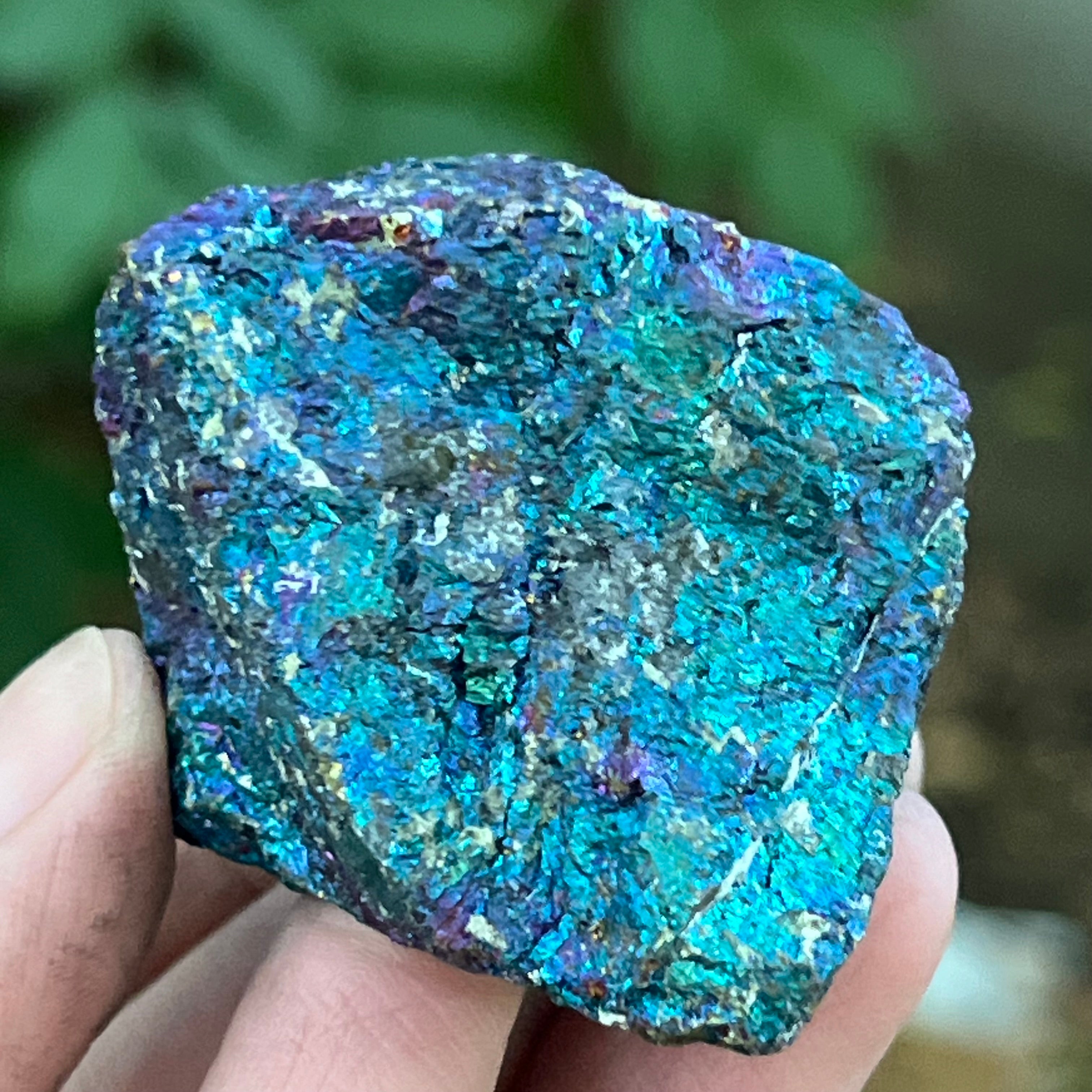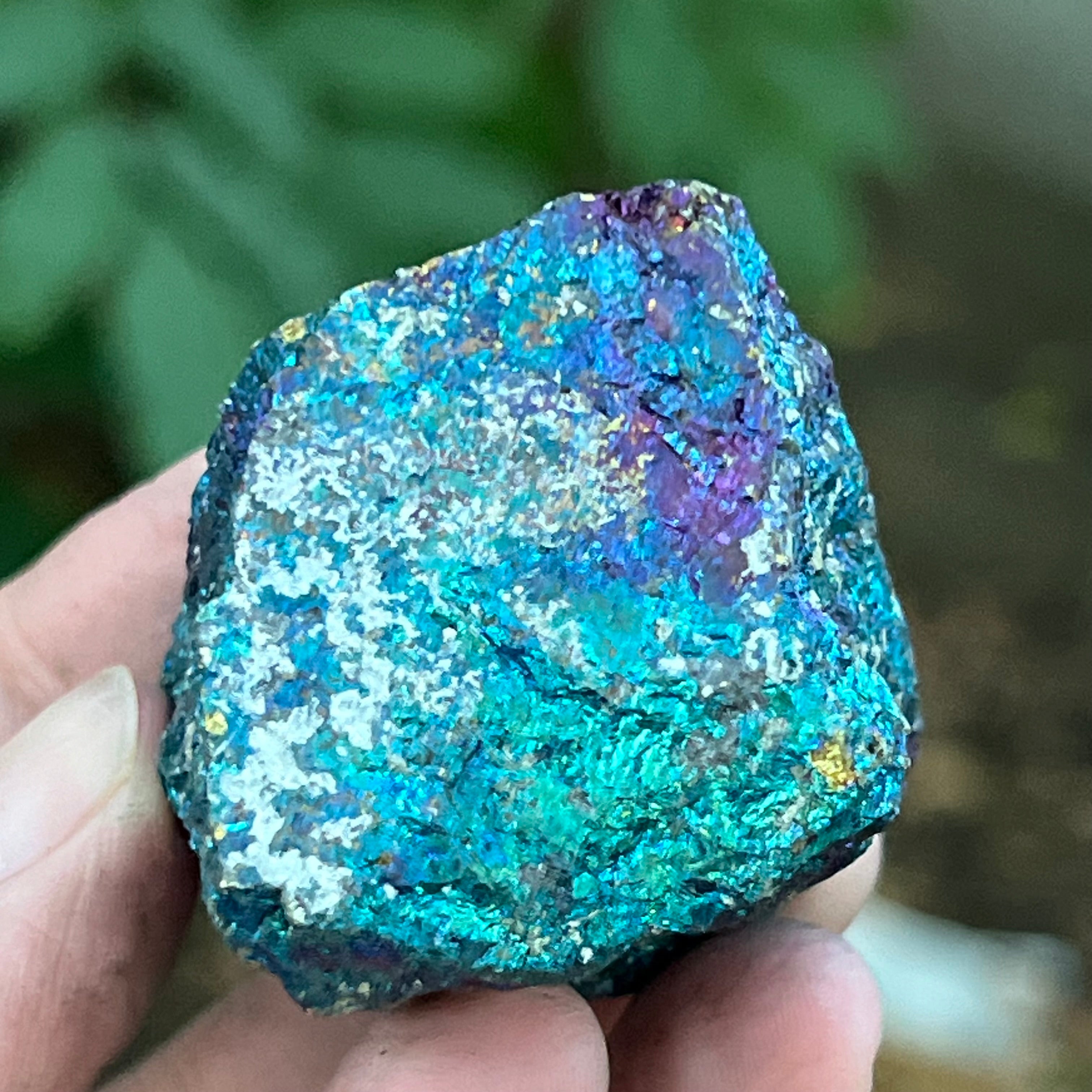 A kék kalkopirit, más néven irizáló kalkopirit,olyan kalkopirit típus, amely ragyogó kék, lila, zöld vagy más irizáló színeket mutat. Ez az irizáló hatás egy vékony oxidrétegnek köszönhető az ásvány felszínén, ami egy természetes folyamat, amely akkor történik, amikor a kalkopirit hosszabb ideig levegőnek és nedvességnek van kitéve.