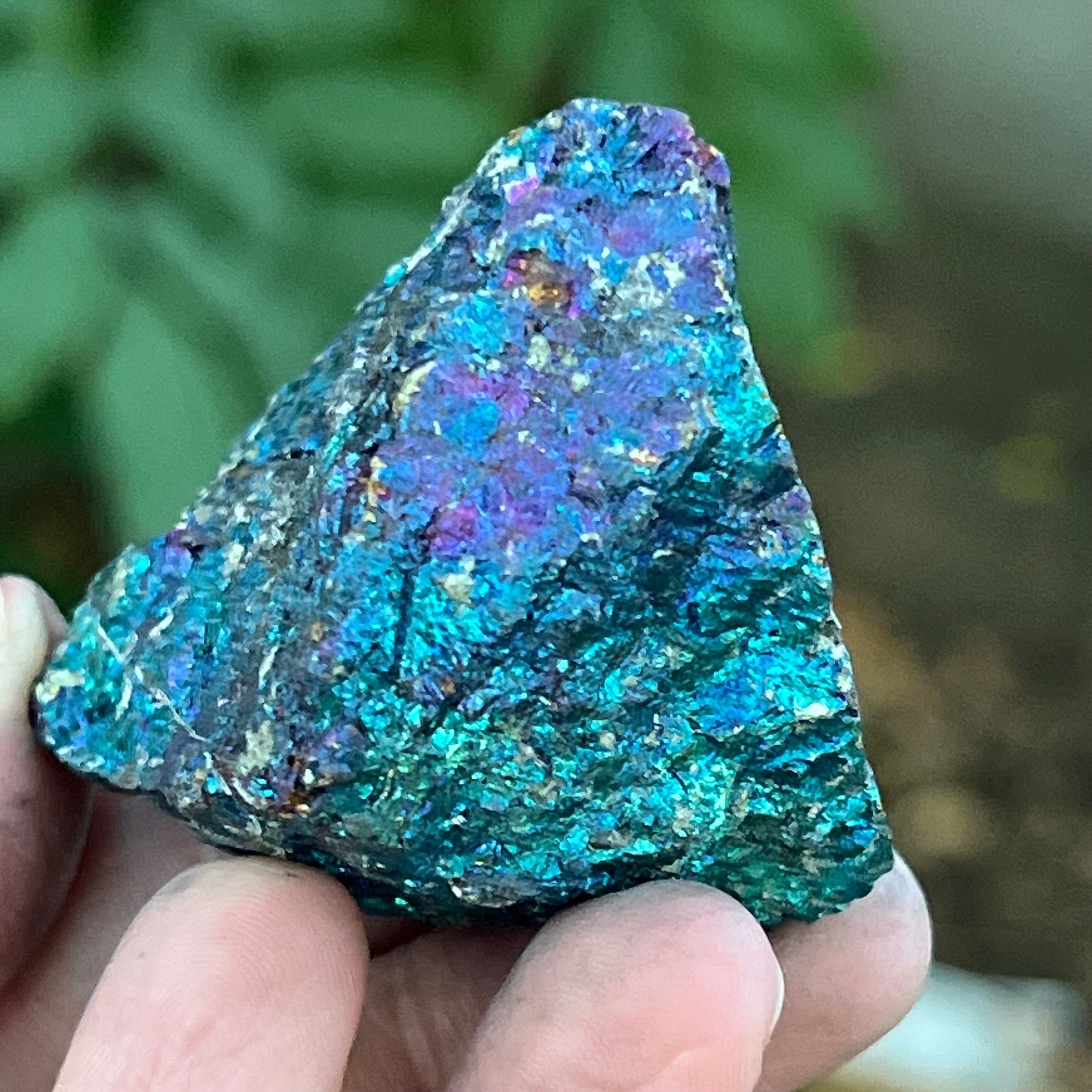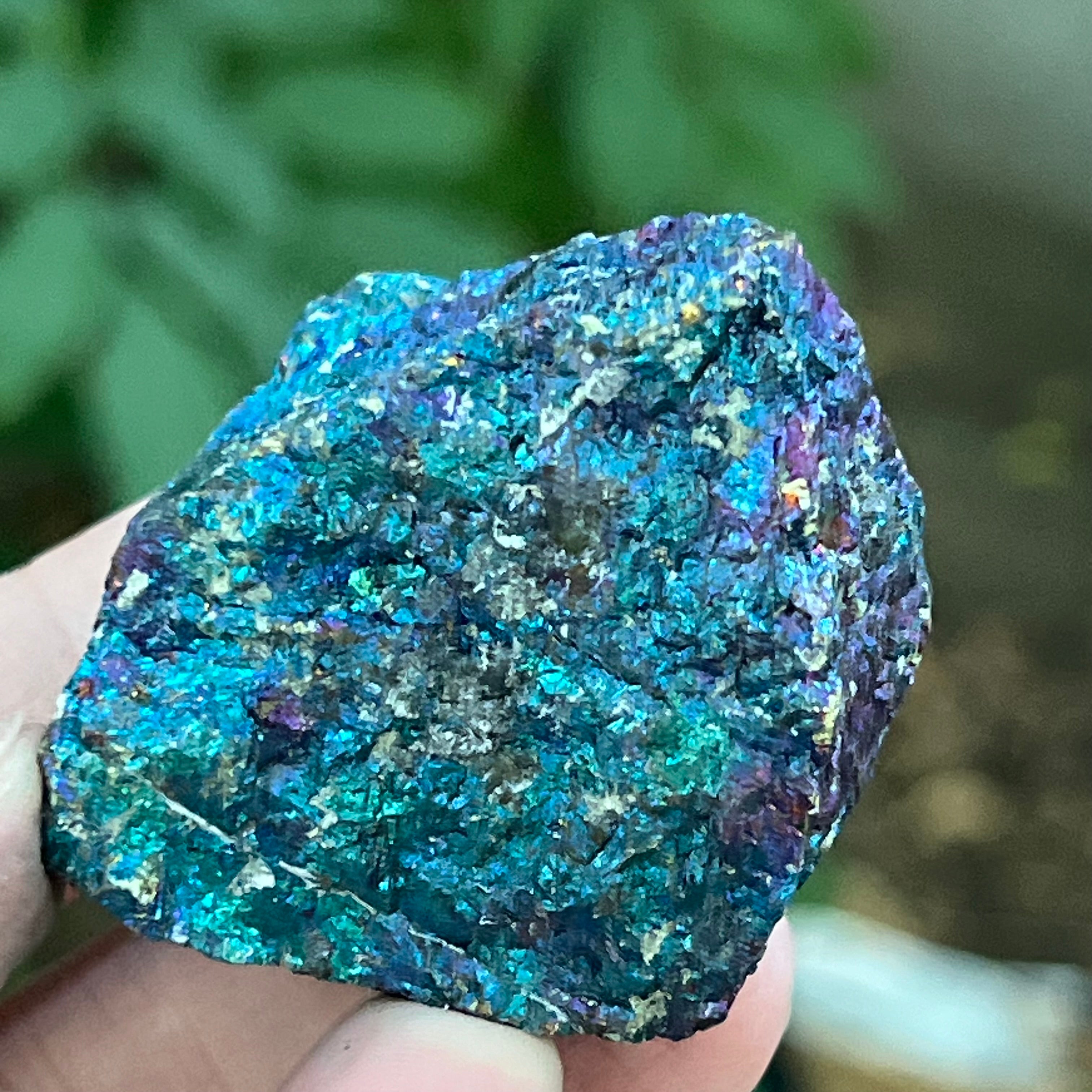 A kék és lila kalkopirit a spirituális fejlődéssel, az intuícióval és a magasabb energiákkal való kapcsolódással társul. Hitet szerint segít a tudat megnyugtatásában és a kreativitás serkentésében. Az irizáló árnyalatai szimbolikusan az egyensúlyhoz és a harmóniához kapcsolódnak.