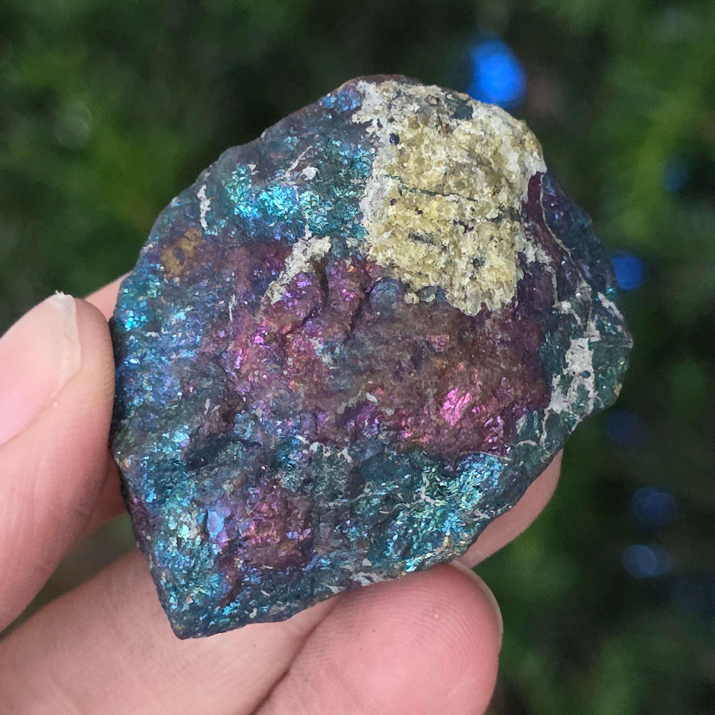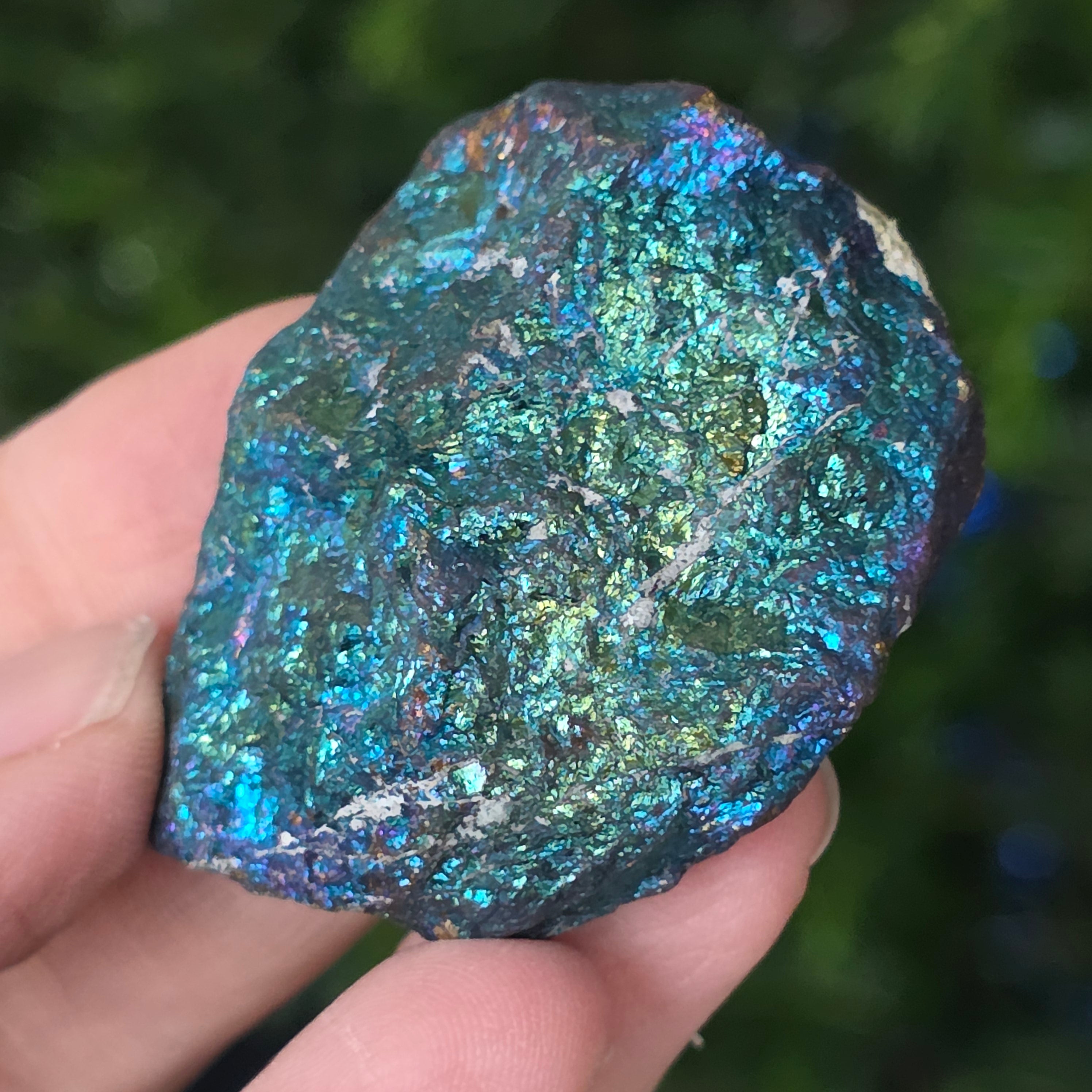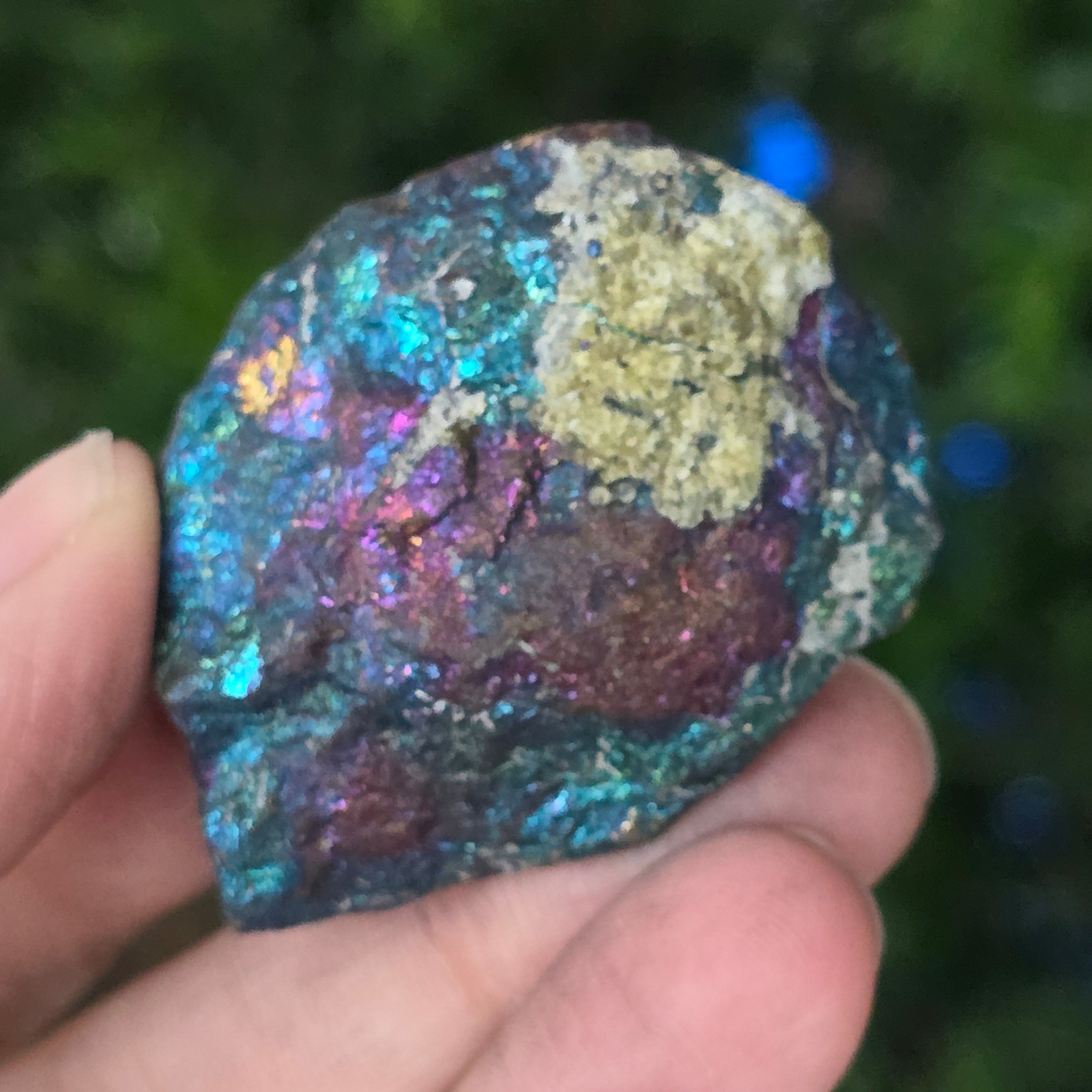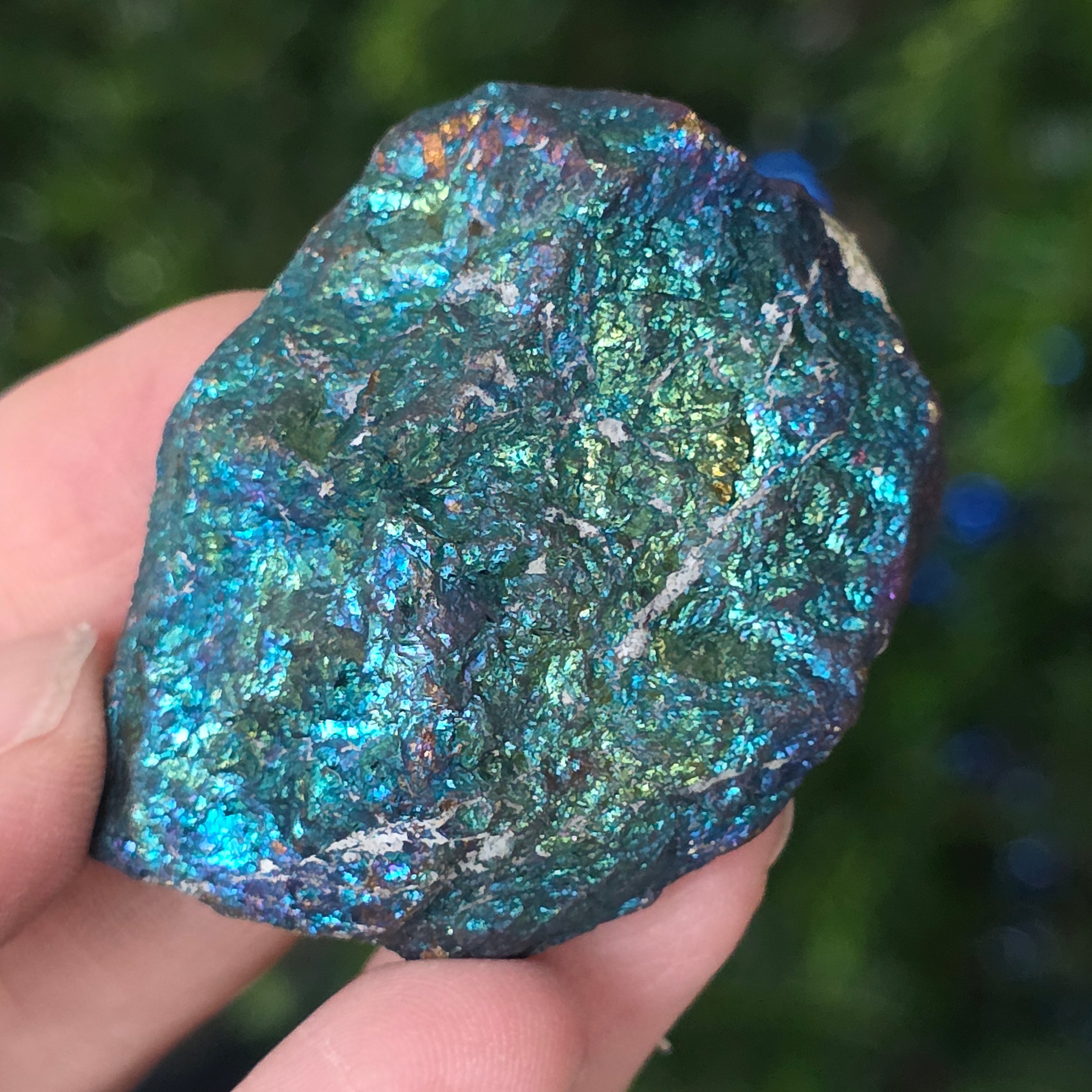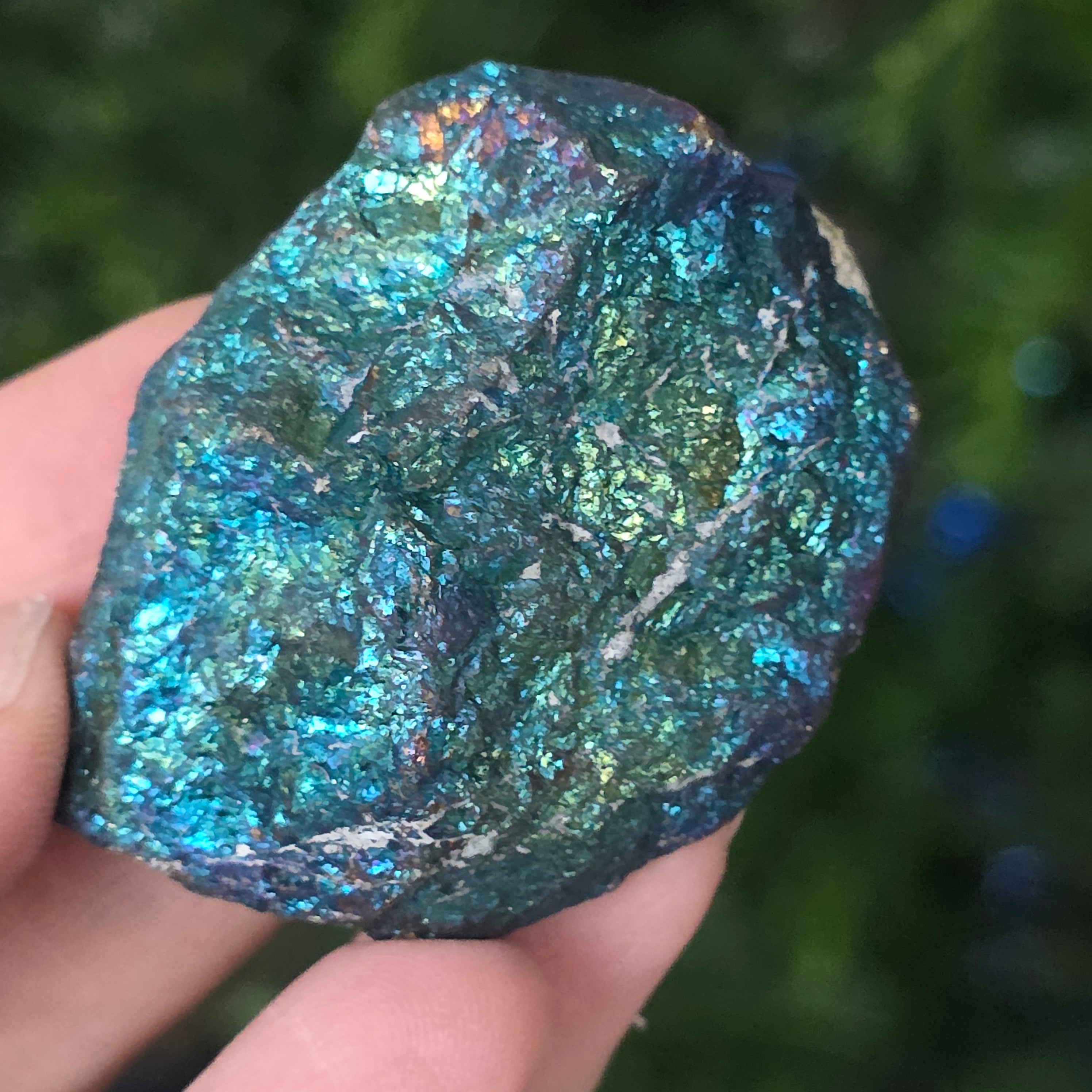 A kék és lila kalkopirit a spirituális fejlődéshez, az intuícióhoz és a magasabb energiákhoz való kapcsolódáshoz kapcsolódik. Úgy tartják, hogy segít megnyugtatni az elmét és ösztönözni a kreativitást. Irizáló árnyalatai szimbolikusan kapcsolódnak az egyensúlyhoz és harmóniához.