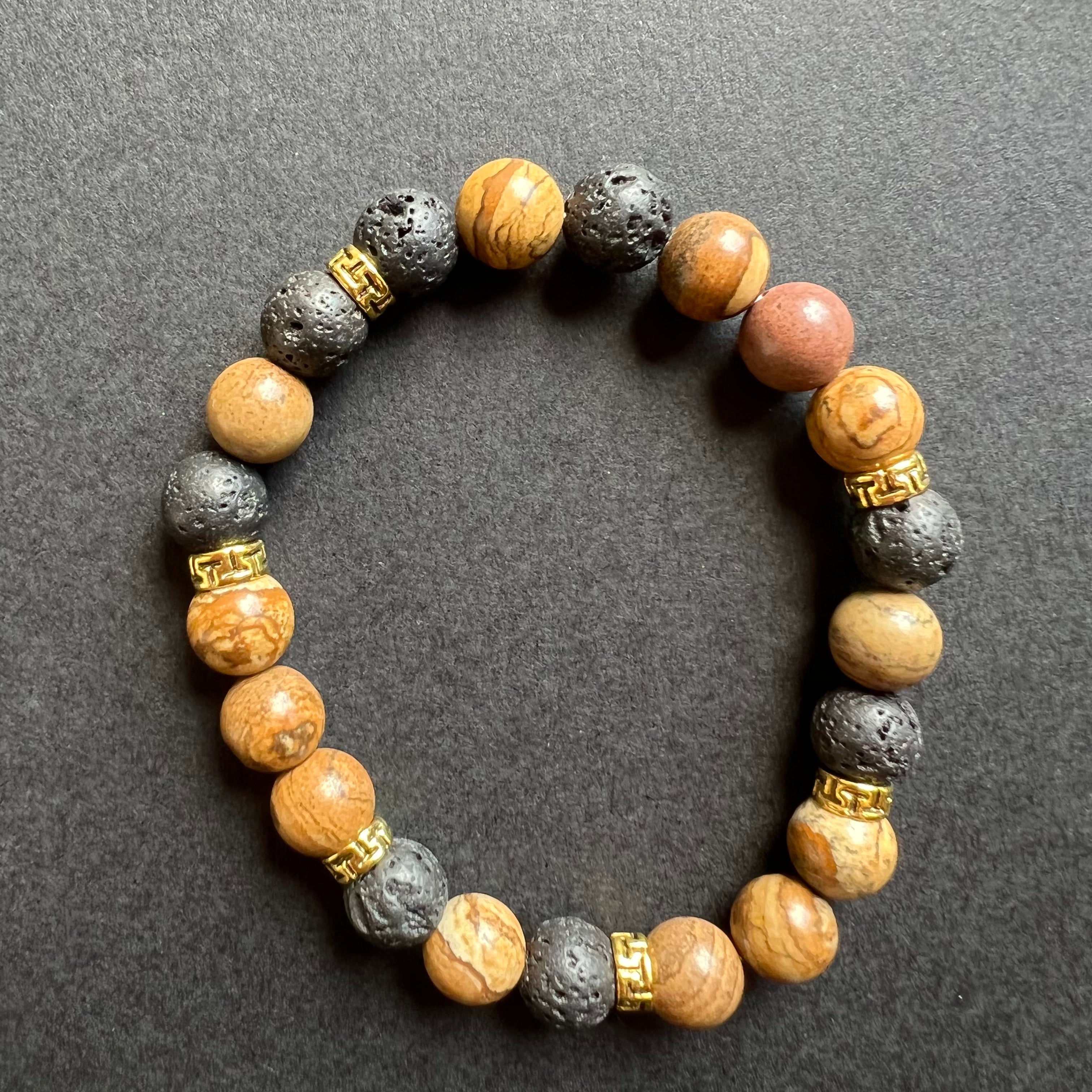 Descriere - Jászper karkötő „lávakövekkel” m2 8mm