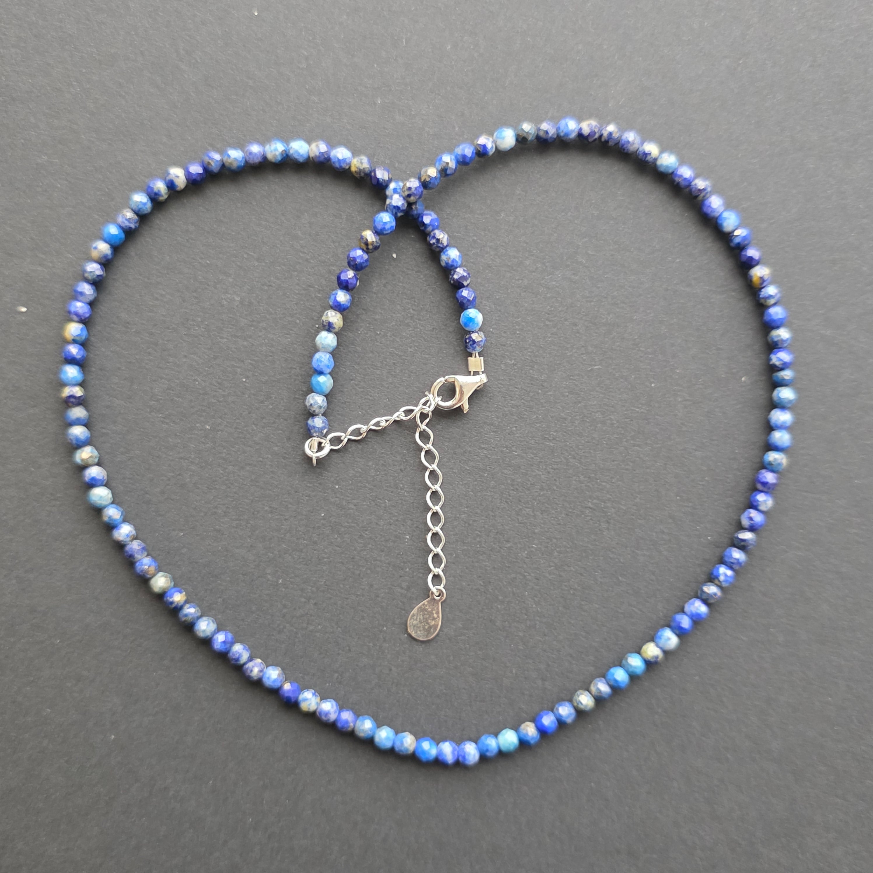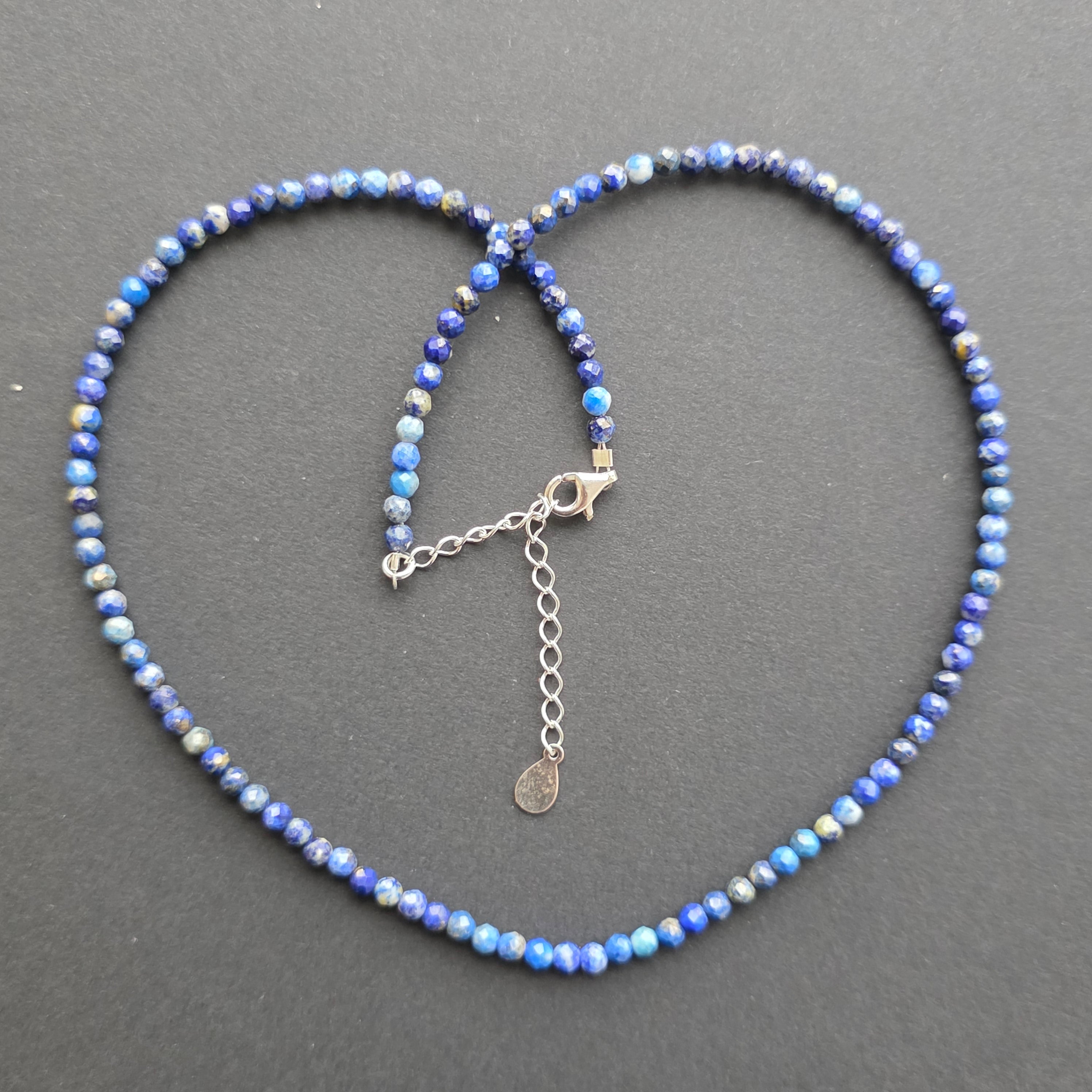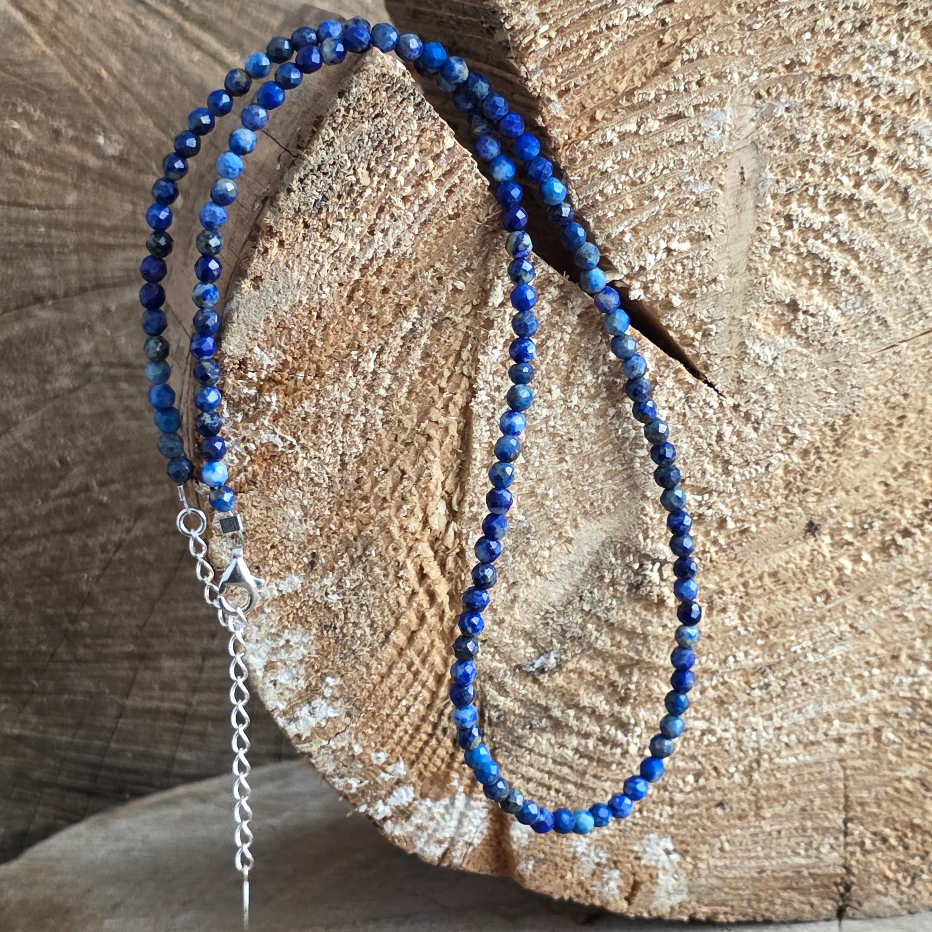 Egy nyaklánc, amely magában hordozza a sötét, csillagos égbolt nemességét. 3 mm-es csiszolt természetes lapis lazuli