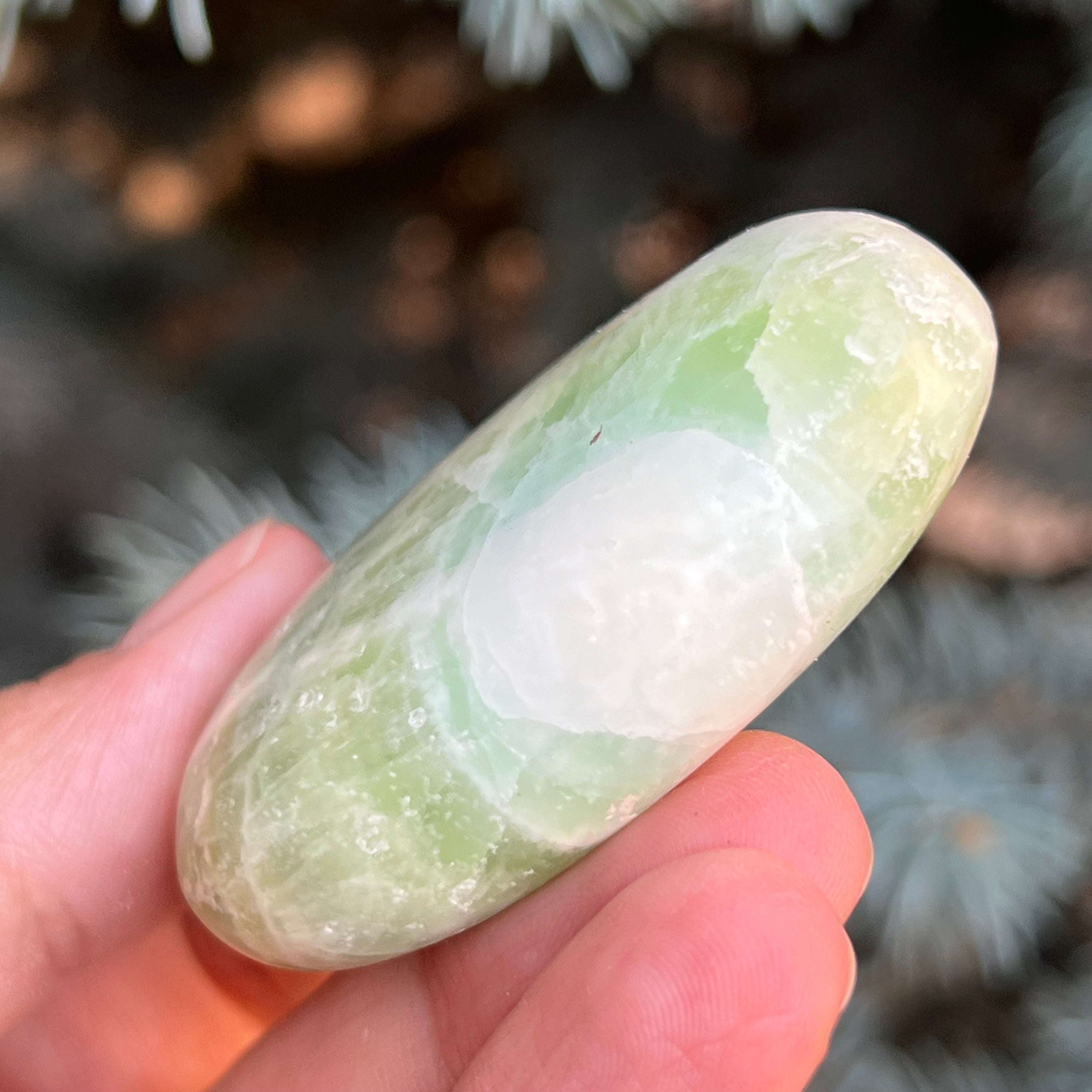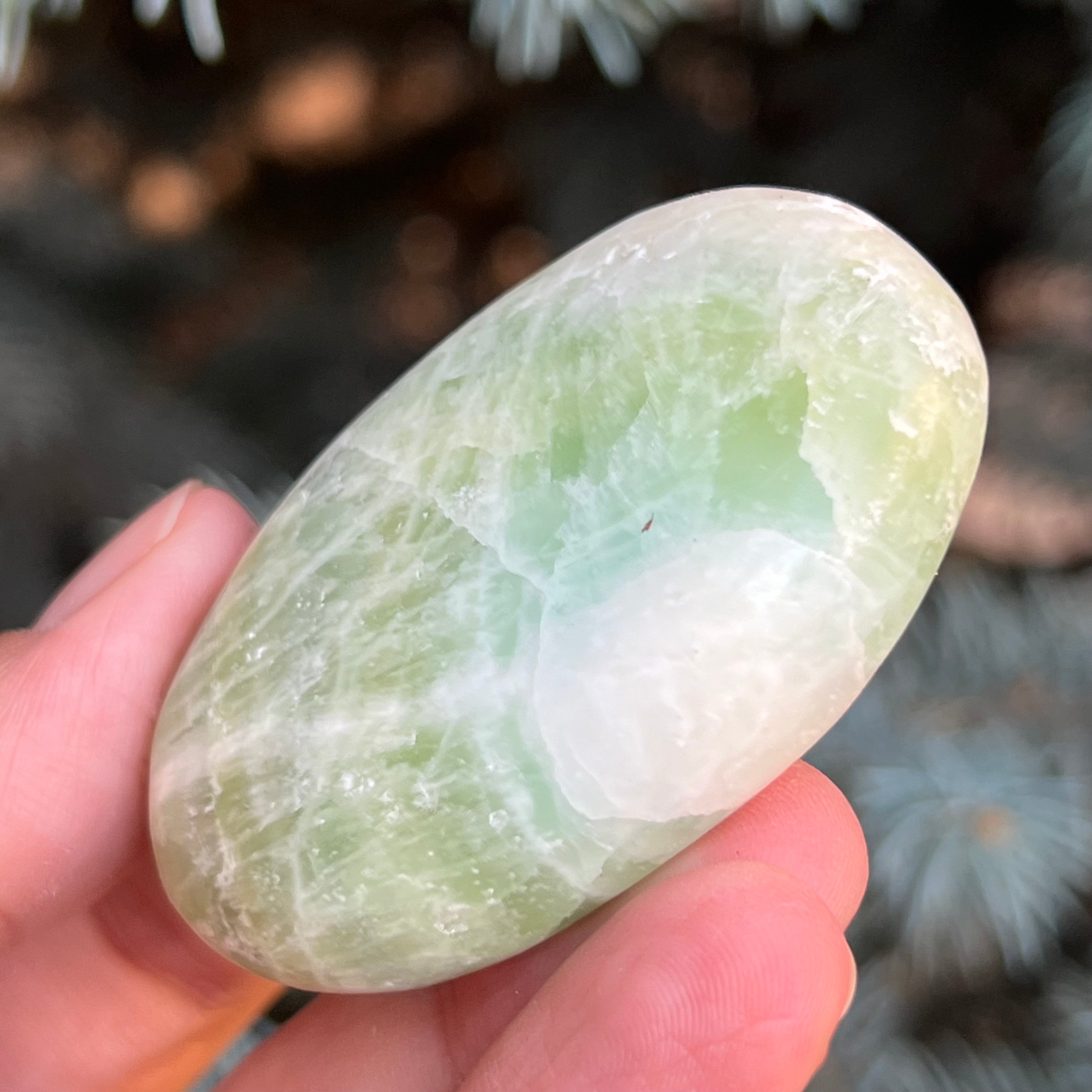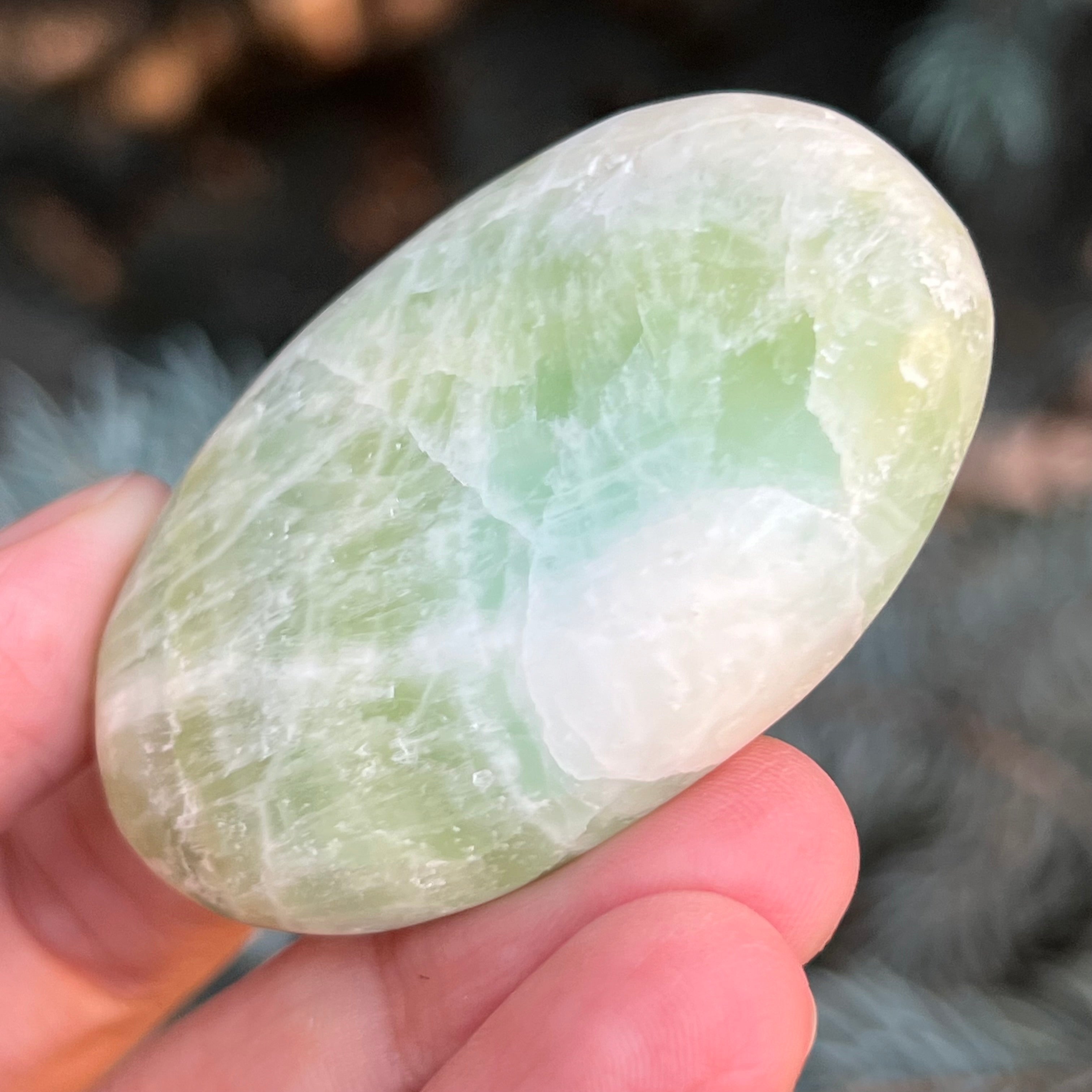 Kalcit pisztácia pálmakő m1, mérete 5,5 * 3,6 * 1,4 cm