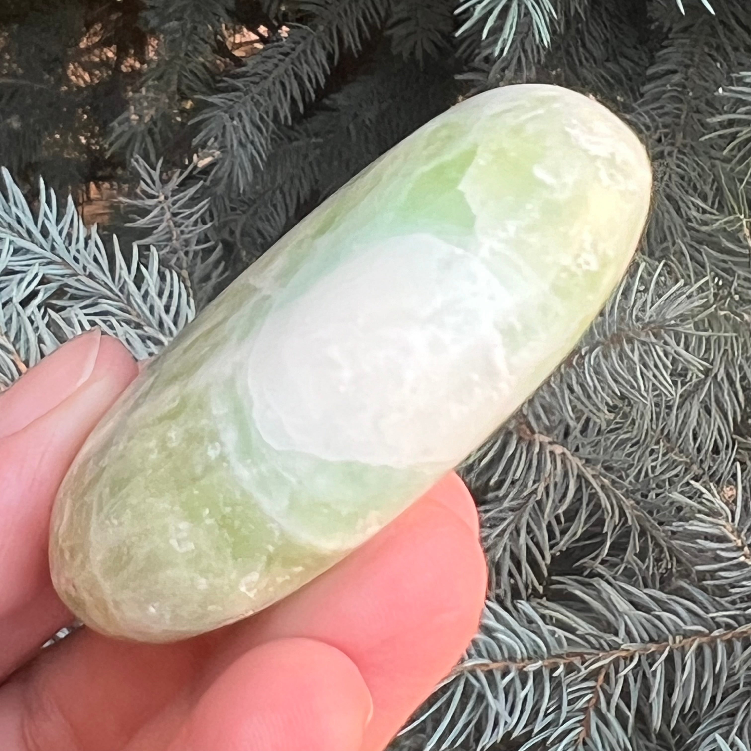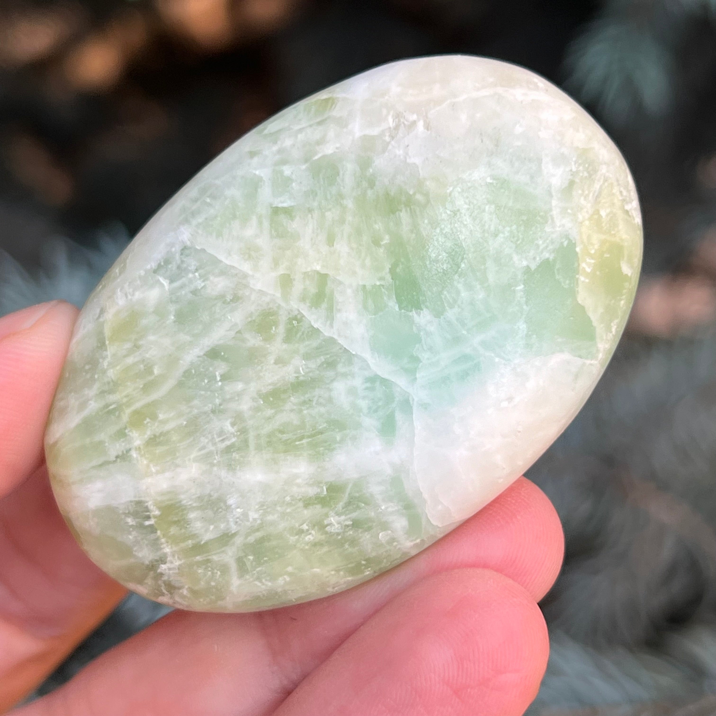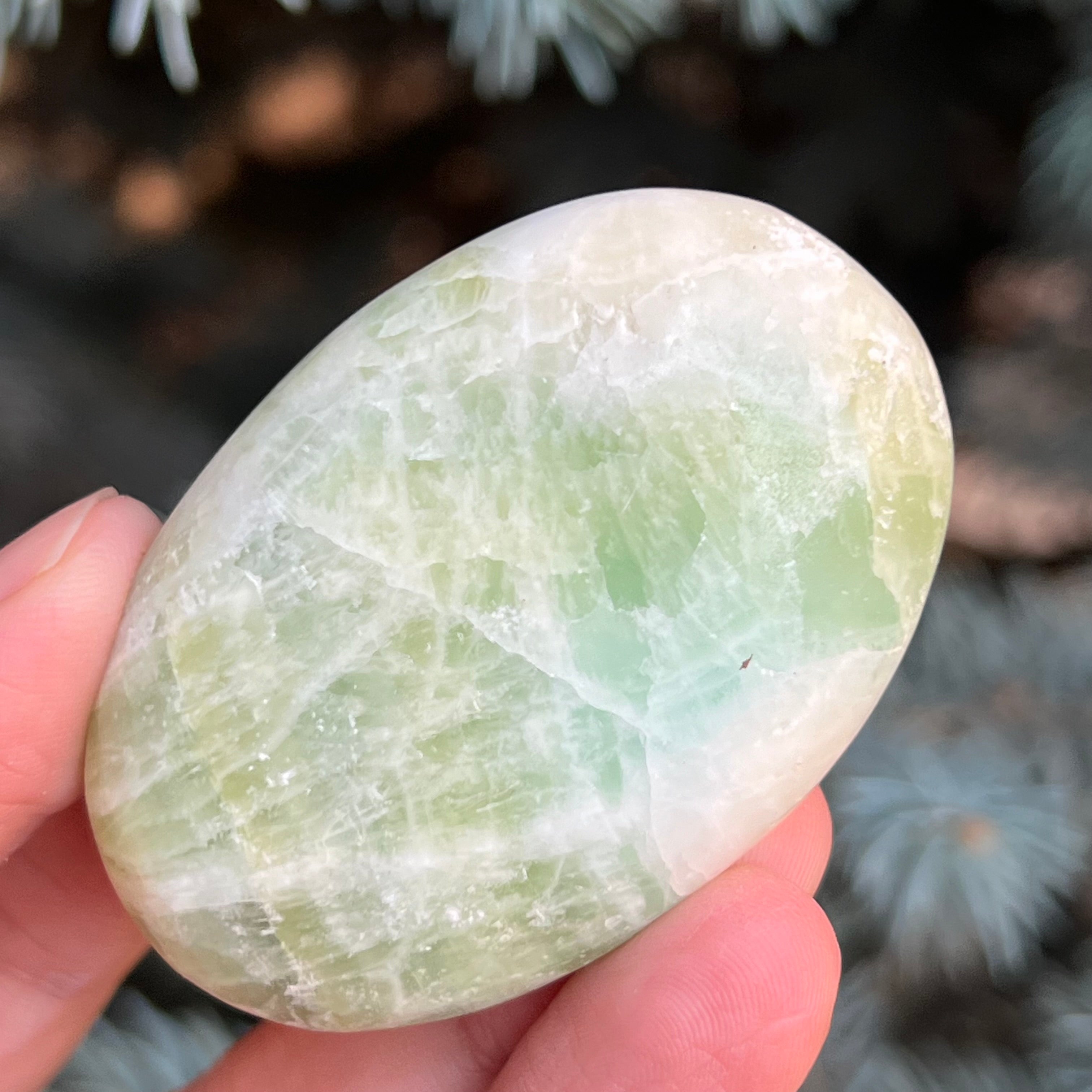 Kalcit pisztácia pálmakő m1, mérete 5,5 * 3,6 * 1,4 cm