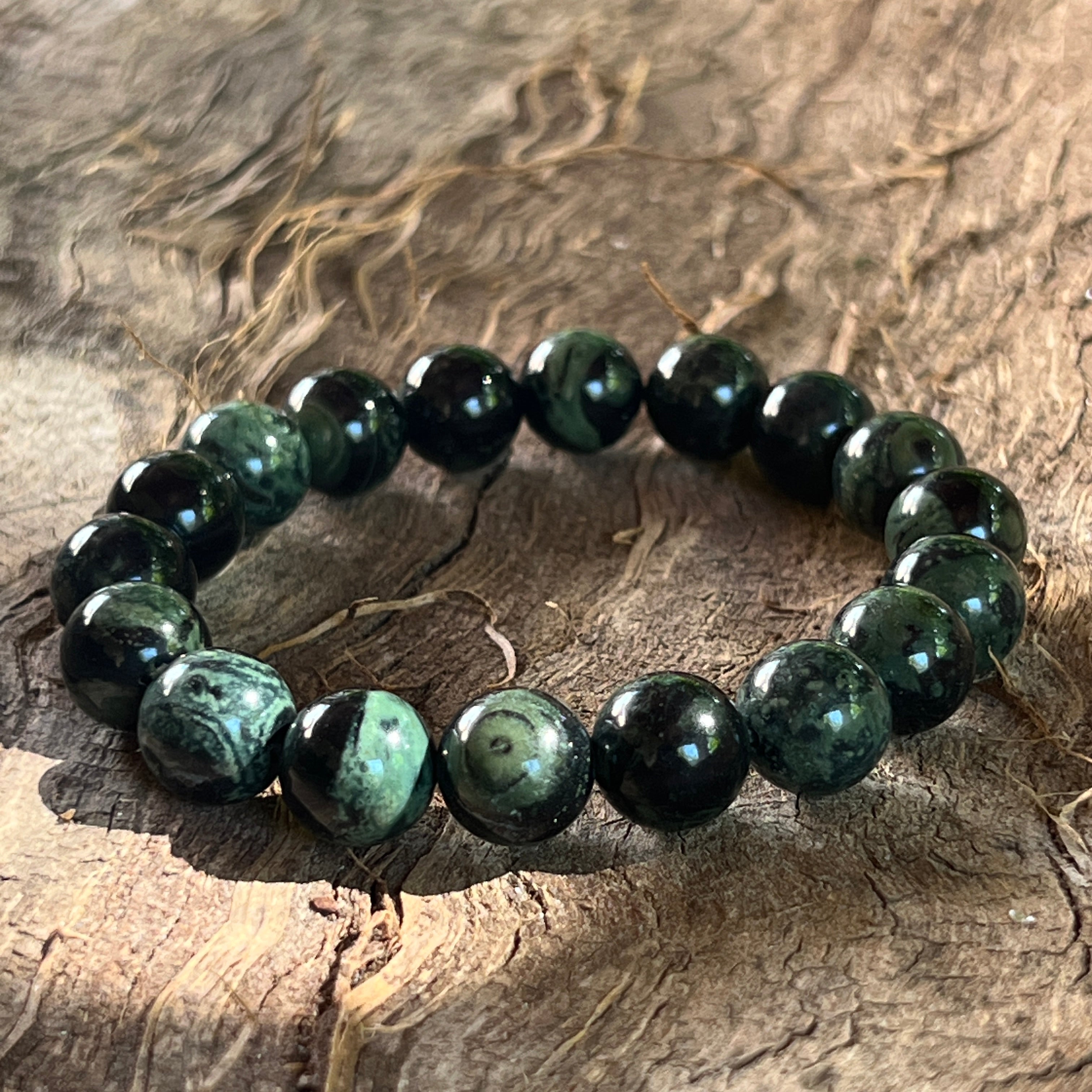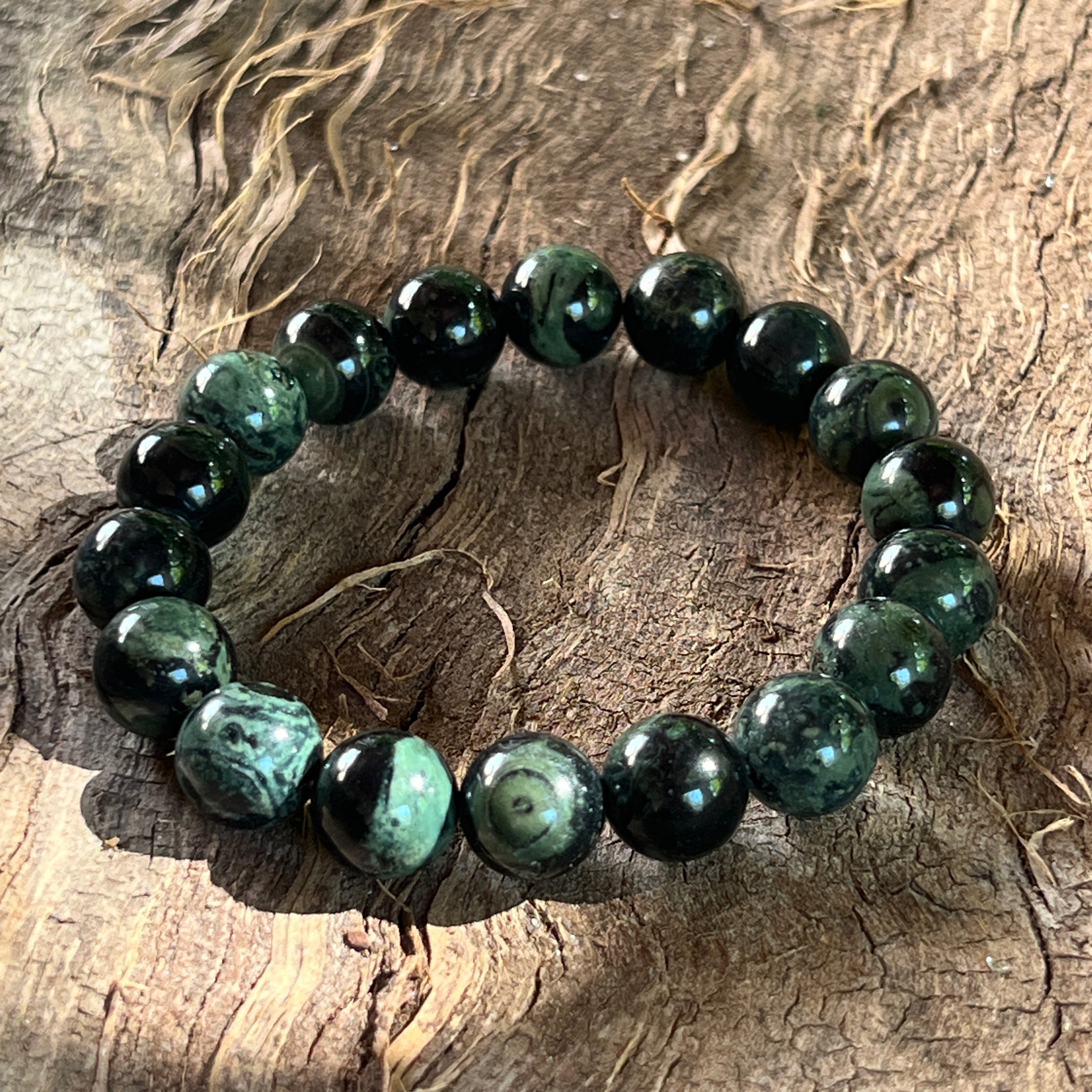 A Kambaba jáspist különösen a szívcsakrával (4. csakra) és a gyökércsakrával (1. csakra) társítják.