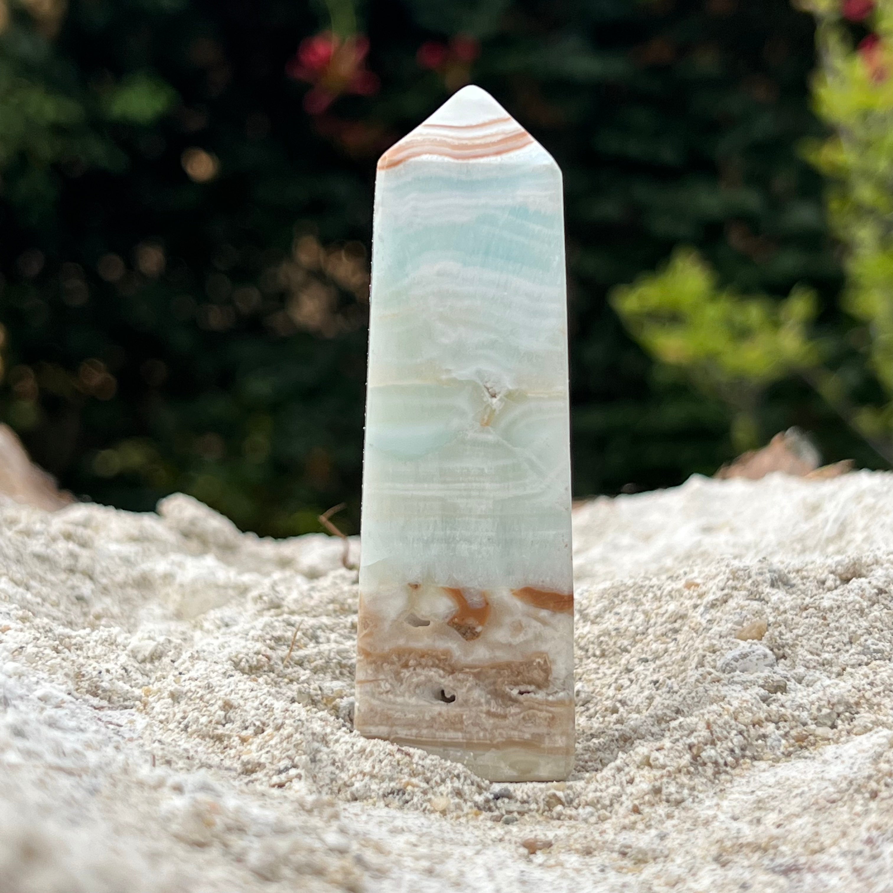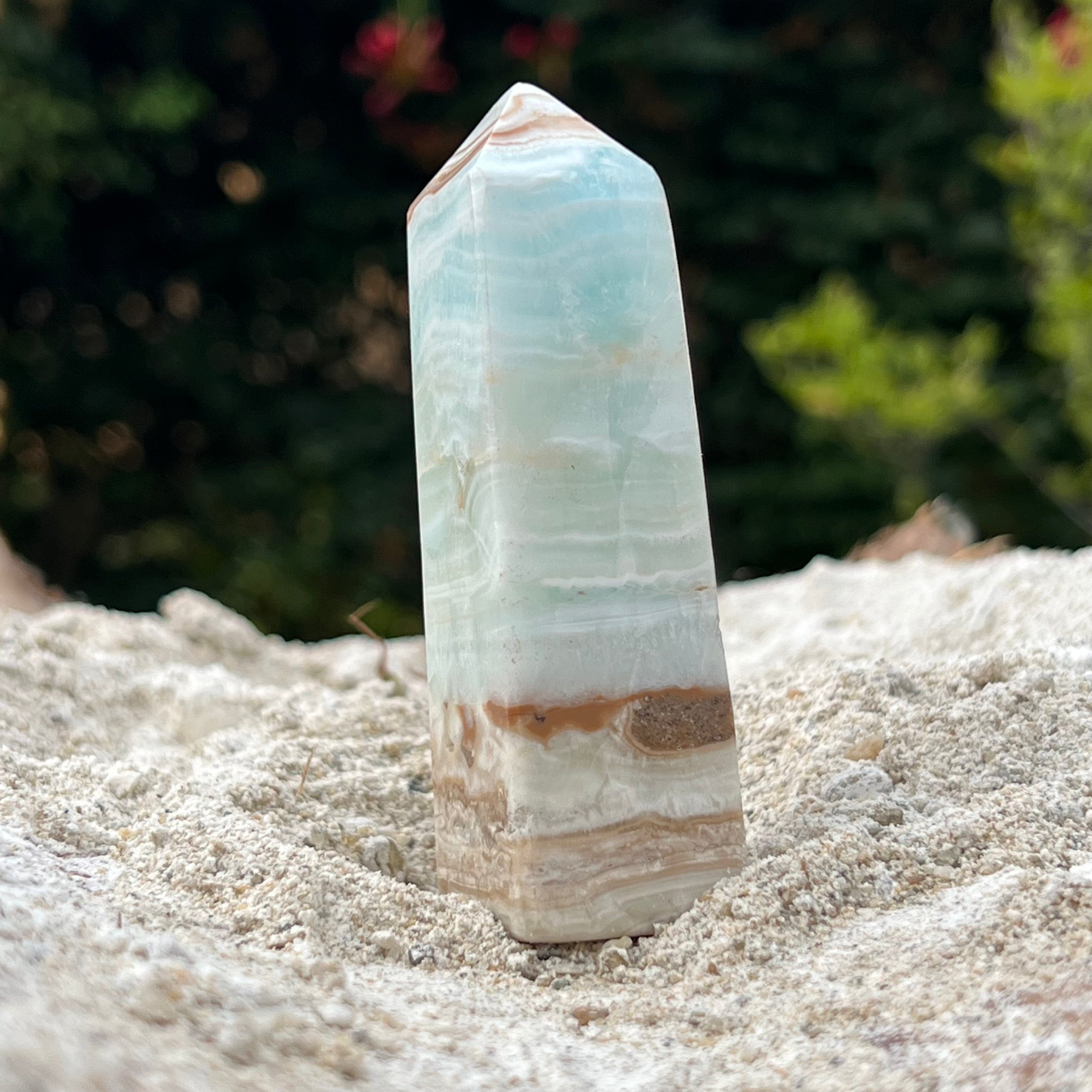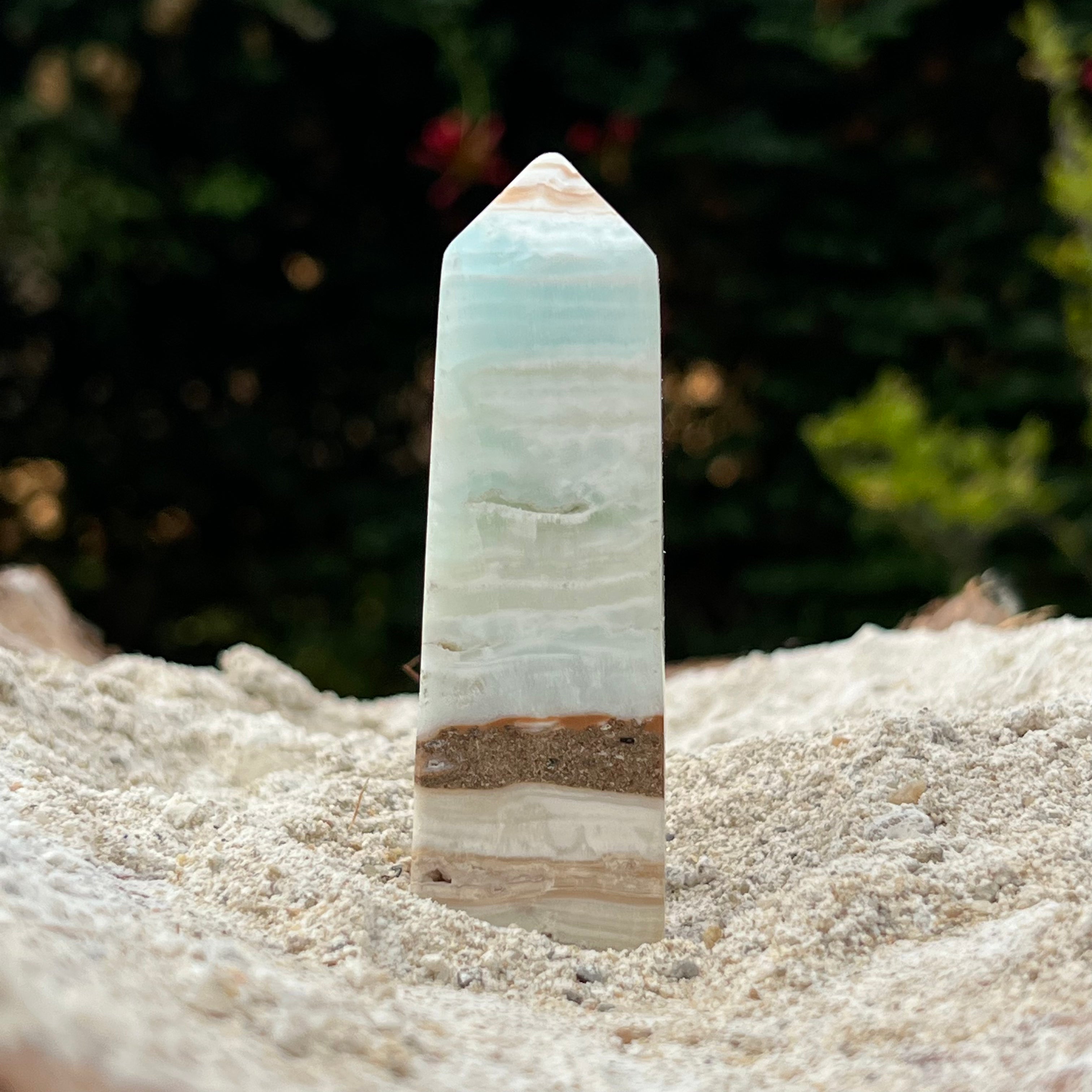 Karib-tengeri kék kalcit torony/obelisz m4, mérete 8,5 cm