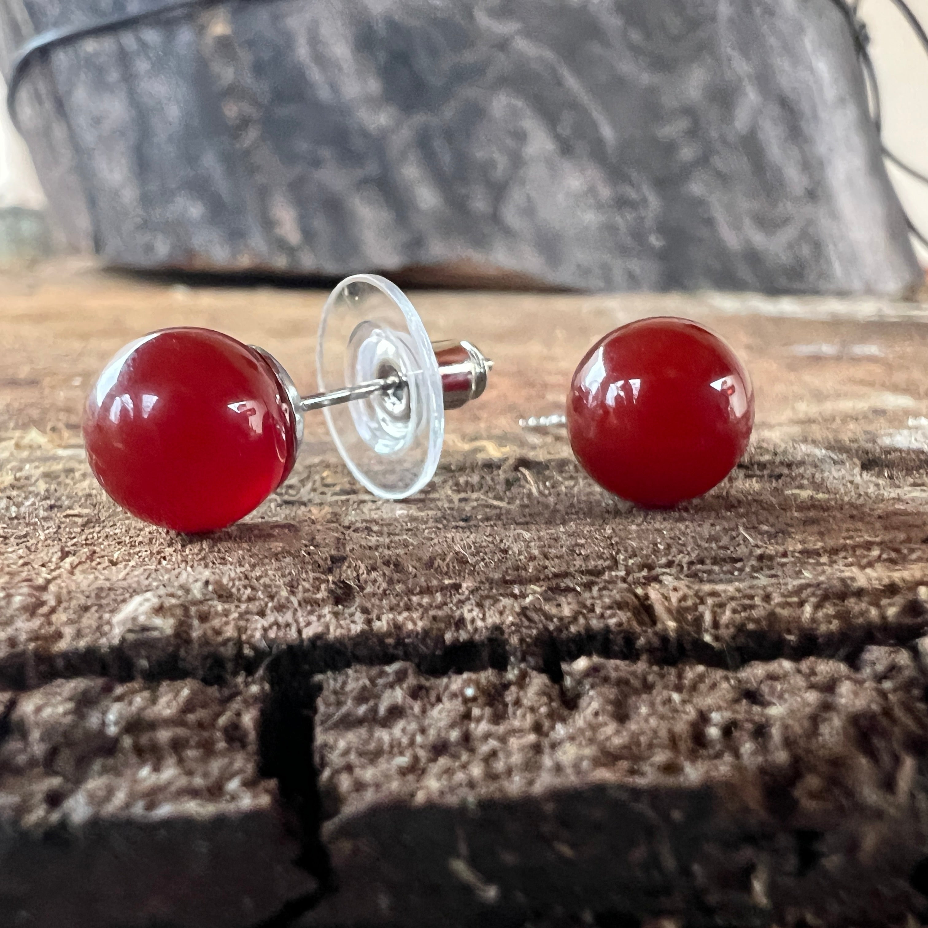 Descriere - Karneol 8 mm gömb fülbevaló stud