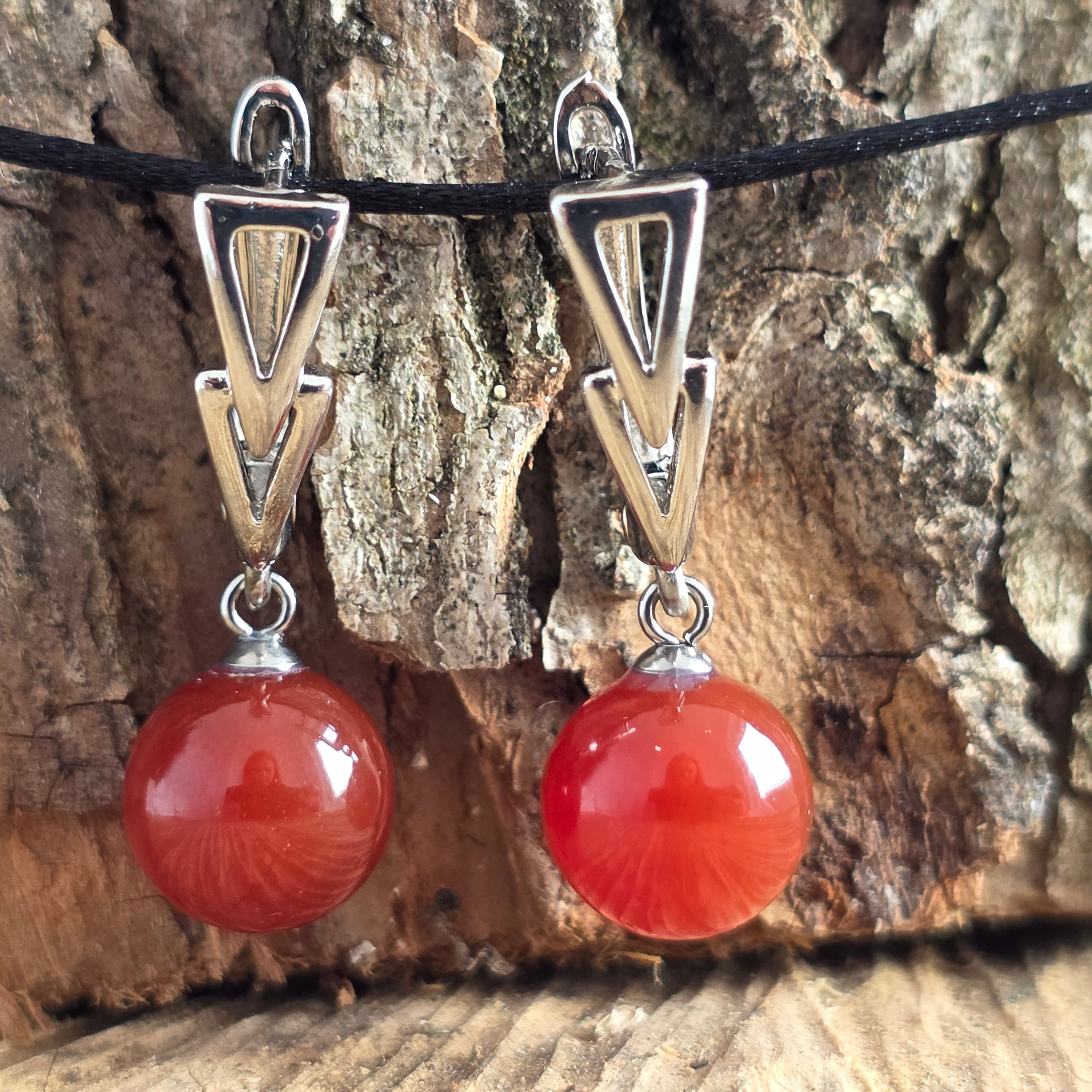 Karneol gömb fülbevaló Arrow Locking