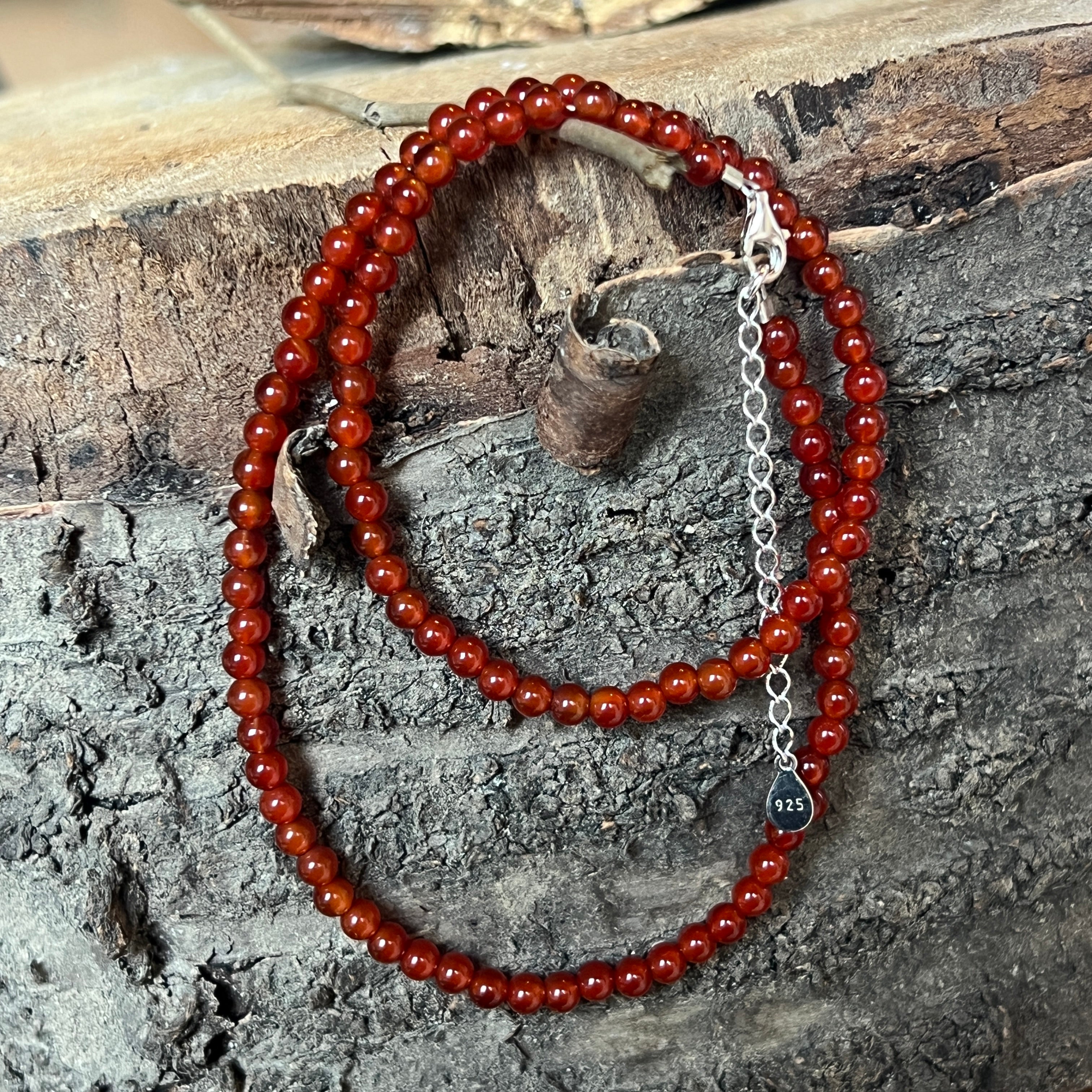 Anyagok: természetes vörös karneol 4 mm, 925 ezüst