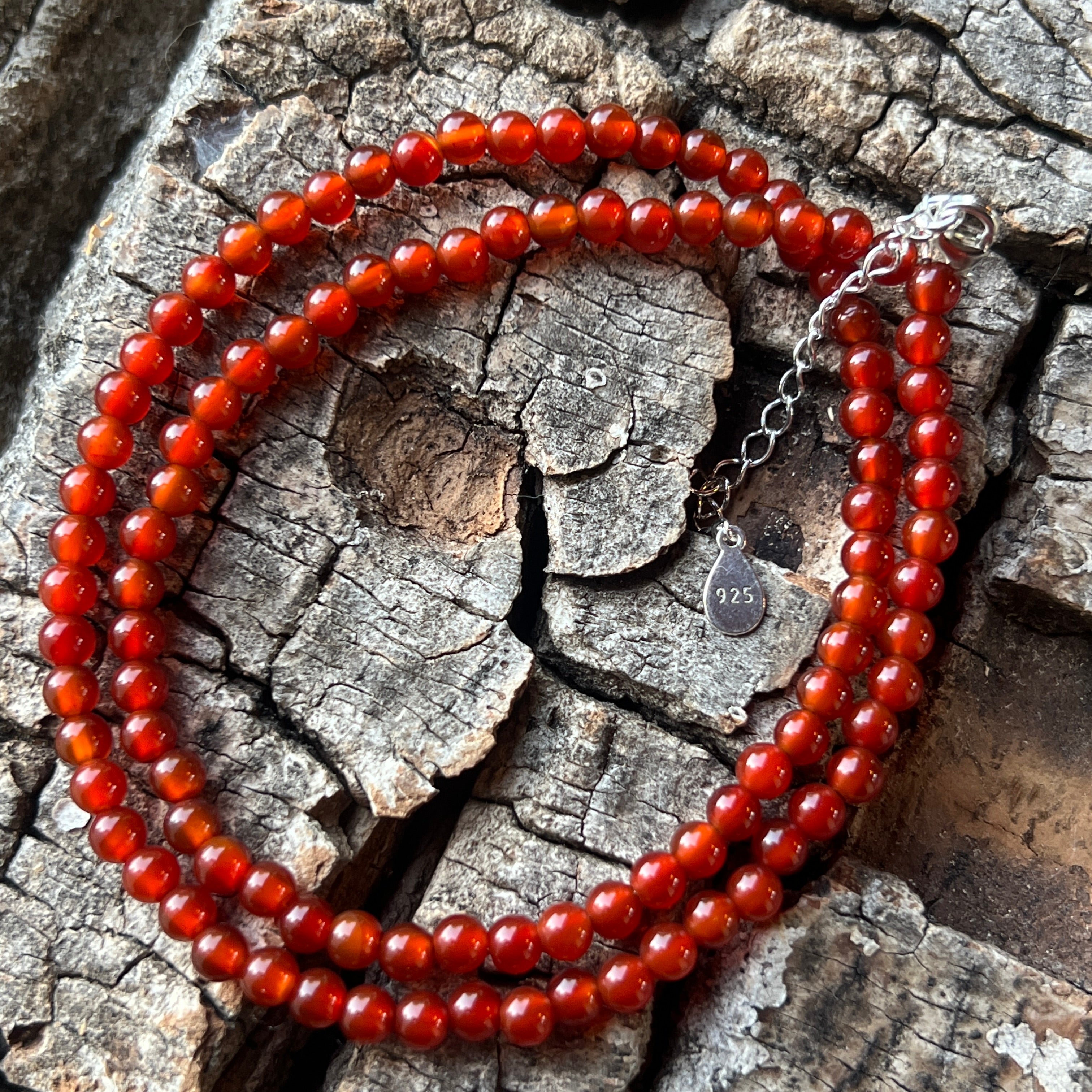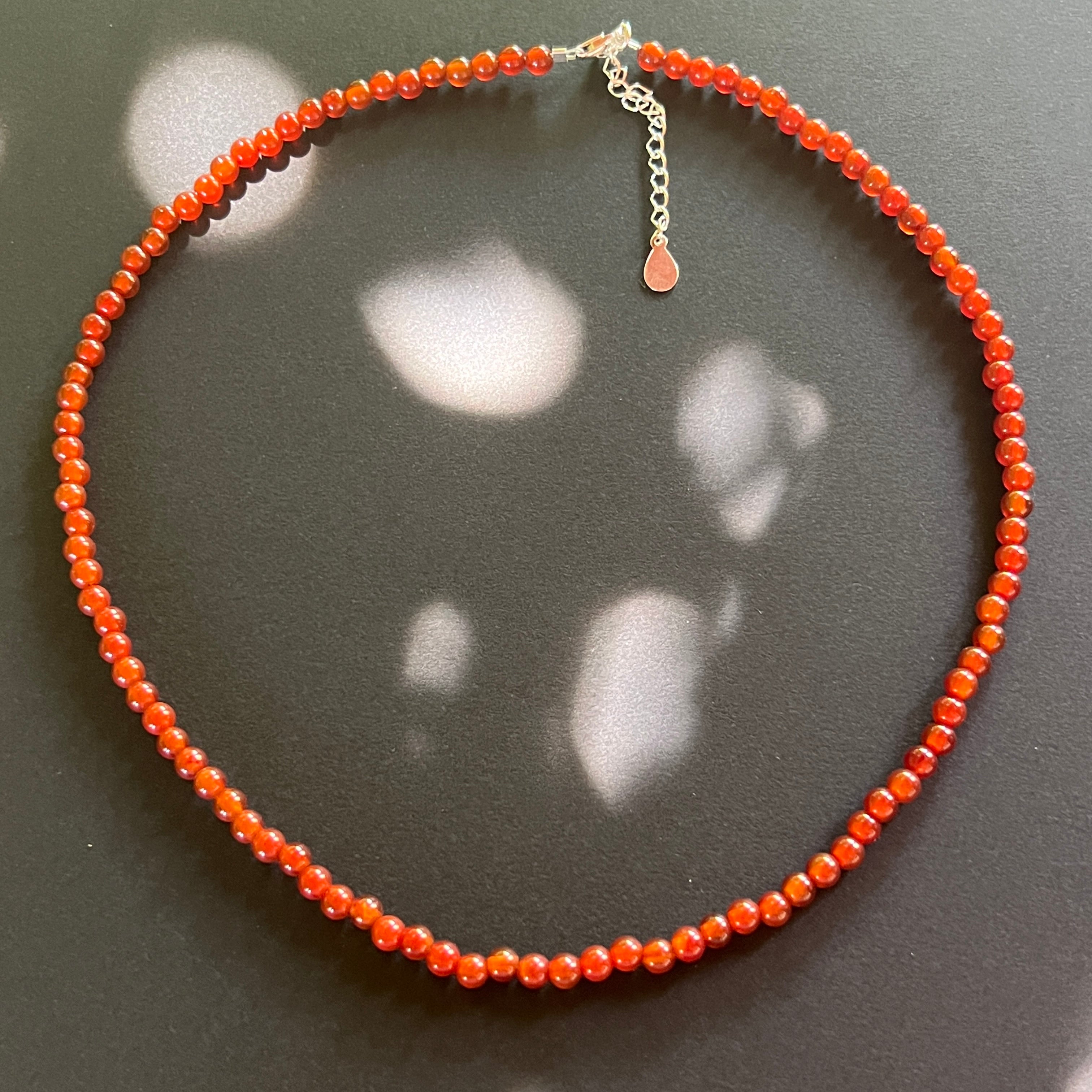Egy finom, mégis hevességgel teli nyaklánc – apró, tökéletesen kerek 4 mm-es vörös karneol gömbökből áll, amelyek olyanok, mint a fénylő szikrák, amelyek diszkréten és hangtalan erővel ölelik körbe a nyakadat.
