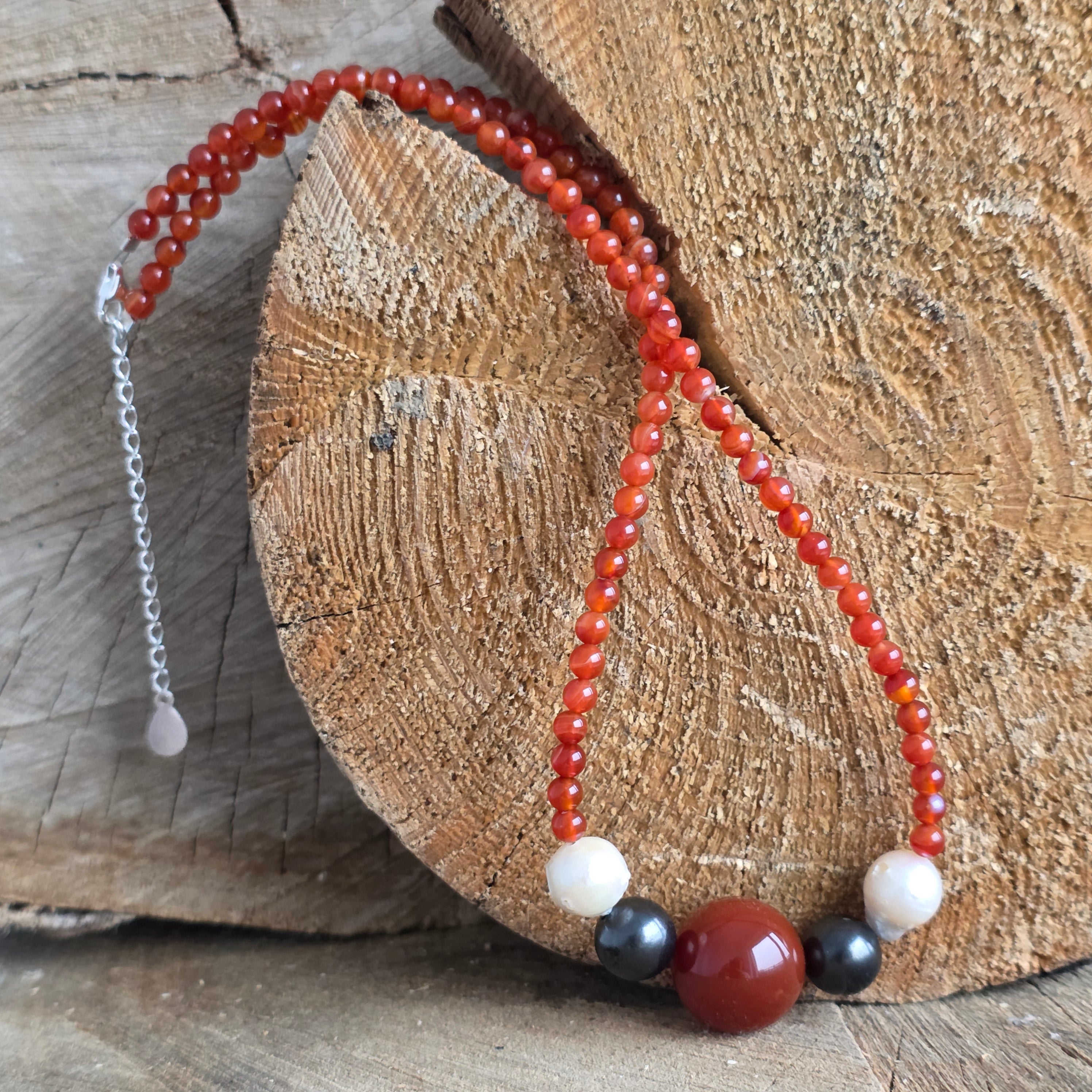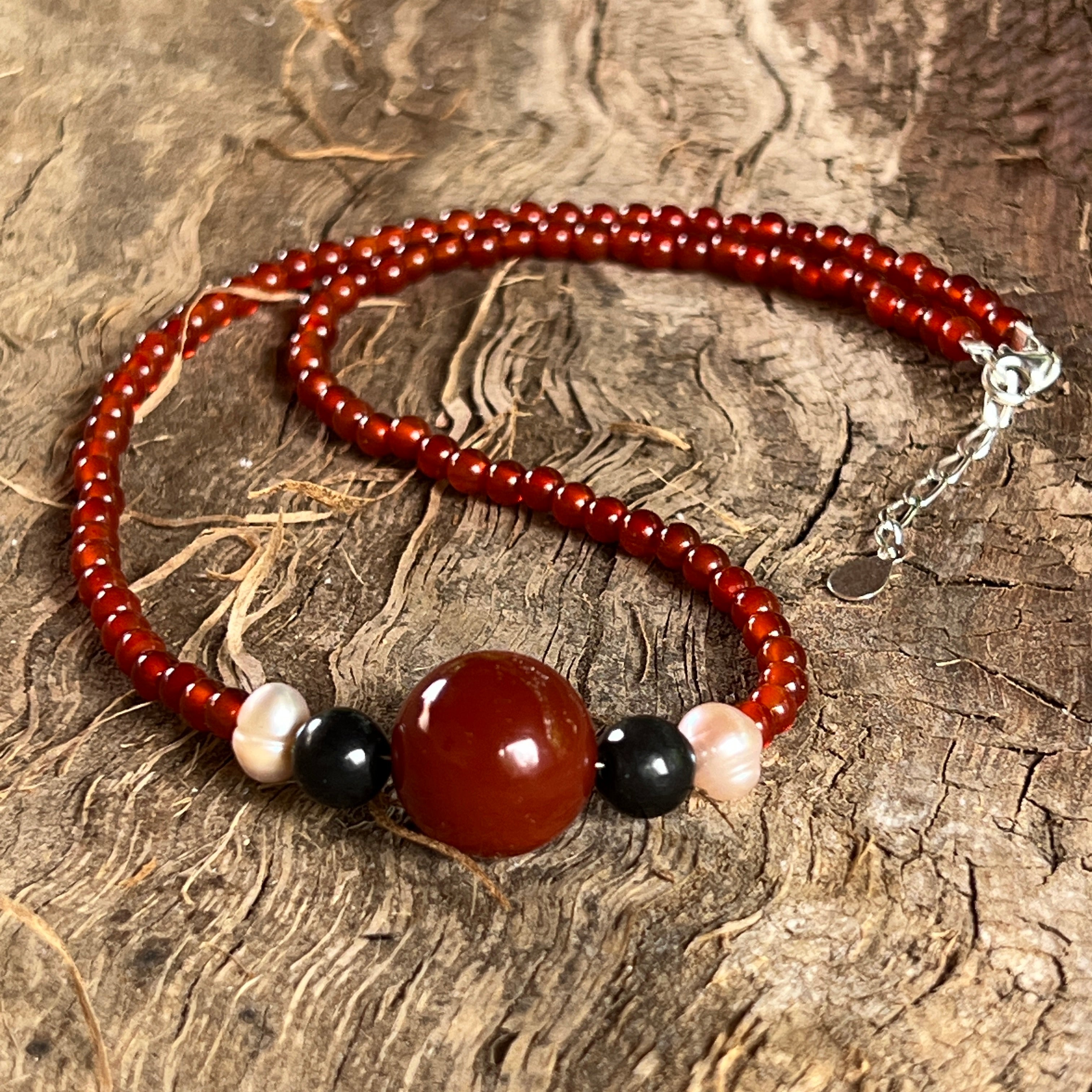 Karneol, shungit és gyöngy nyaklánc Rooted Glow#12