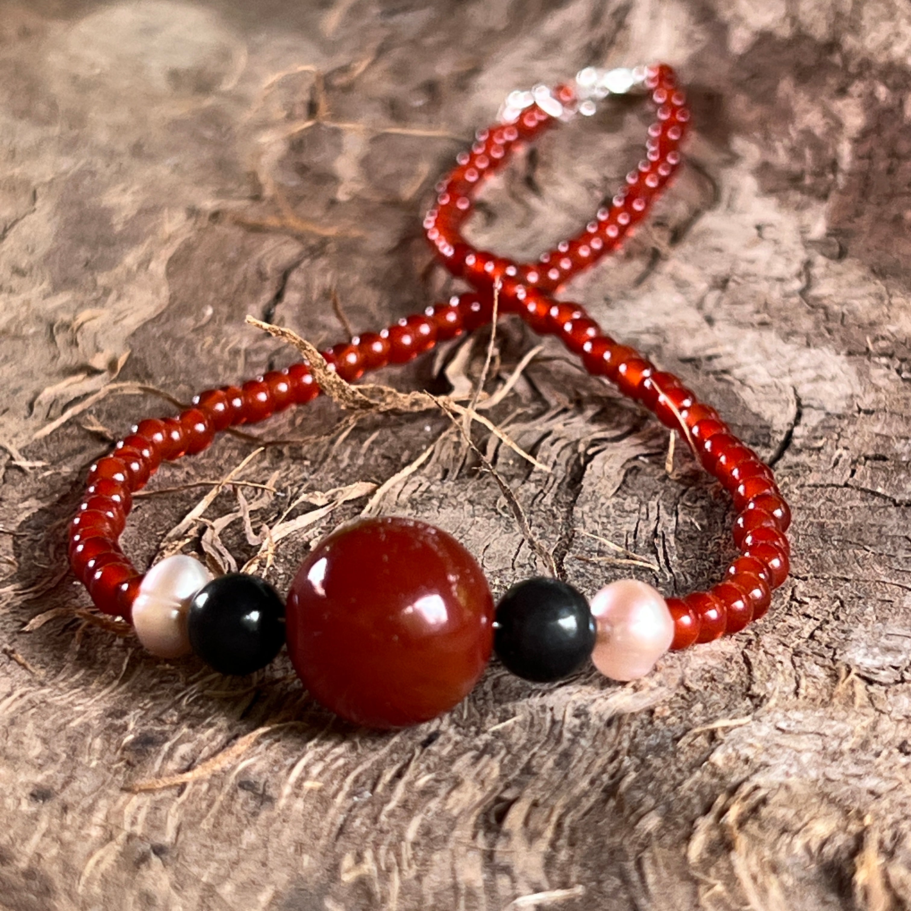Anyagok: természetes 4 mm-es karneol, shungit, természetes gyöngyök, 925-ös ezüst