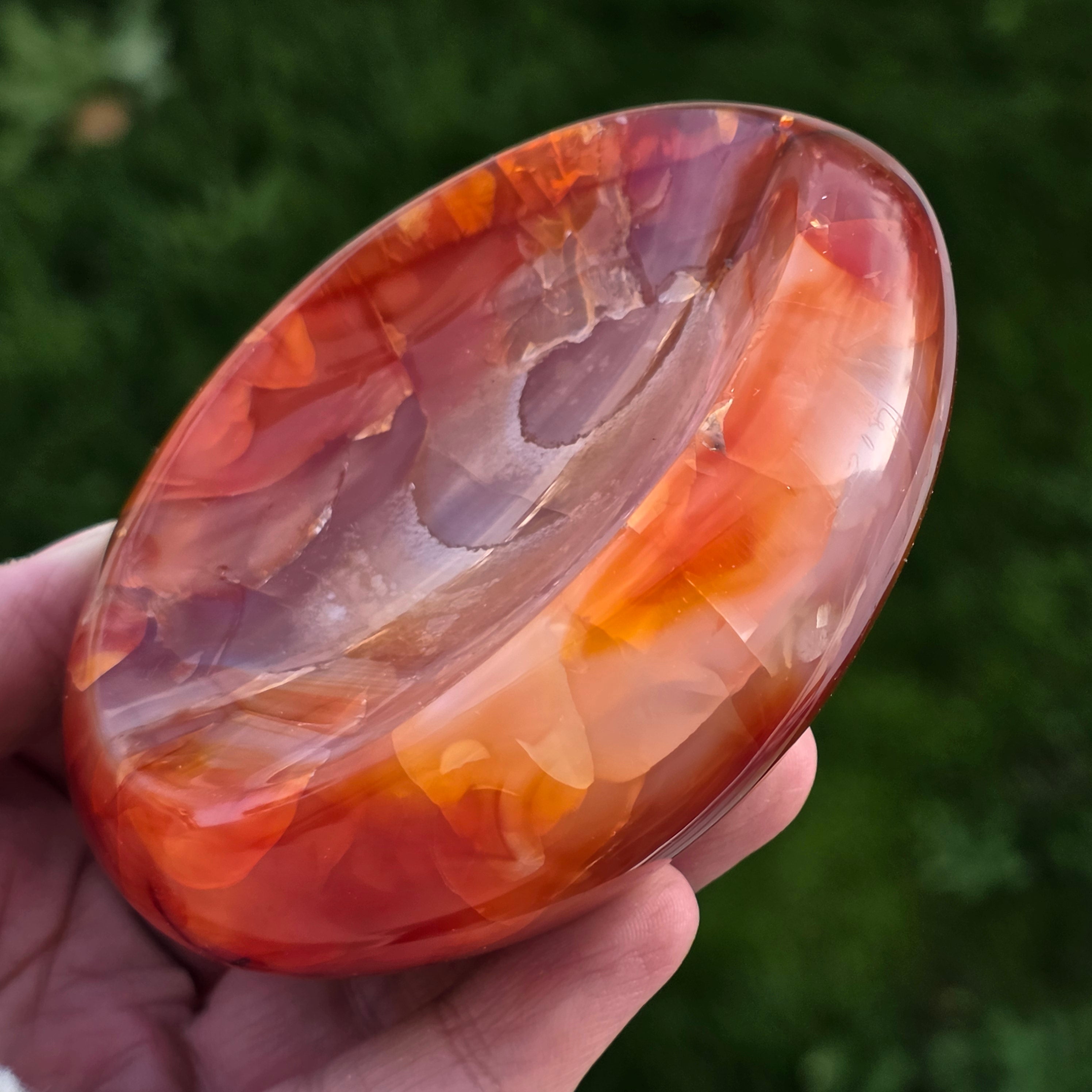 Tál egyedülálló természetes karneol, Madagaszkárról származik, gondosan faragott, hogy kiemelje a kő természetes szépségét.