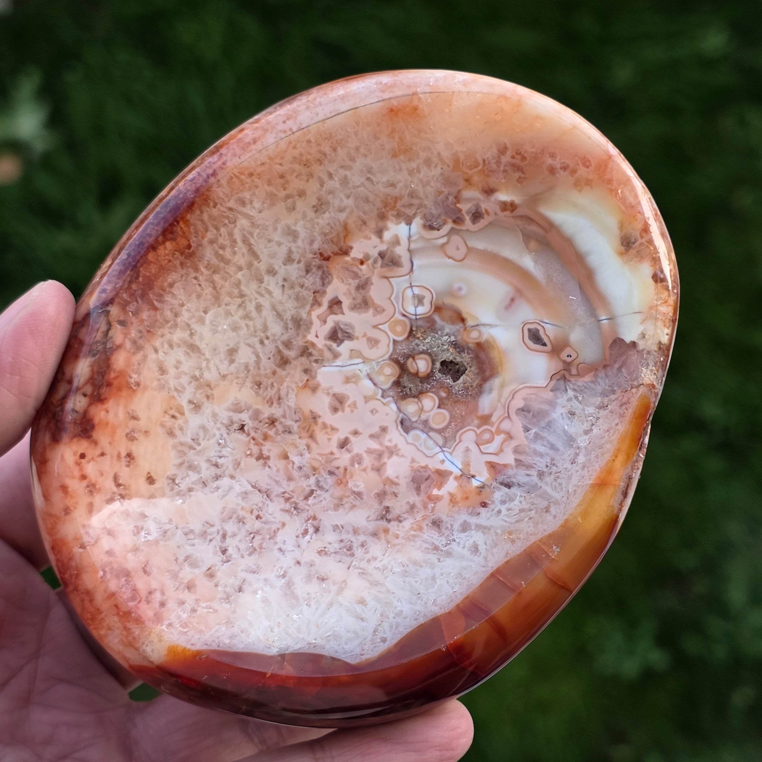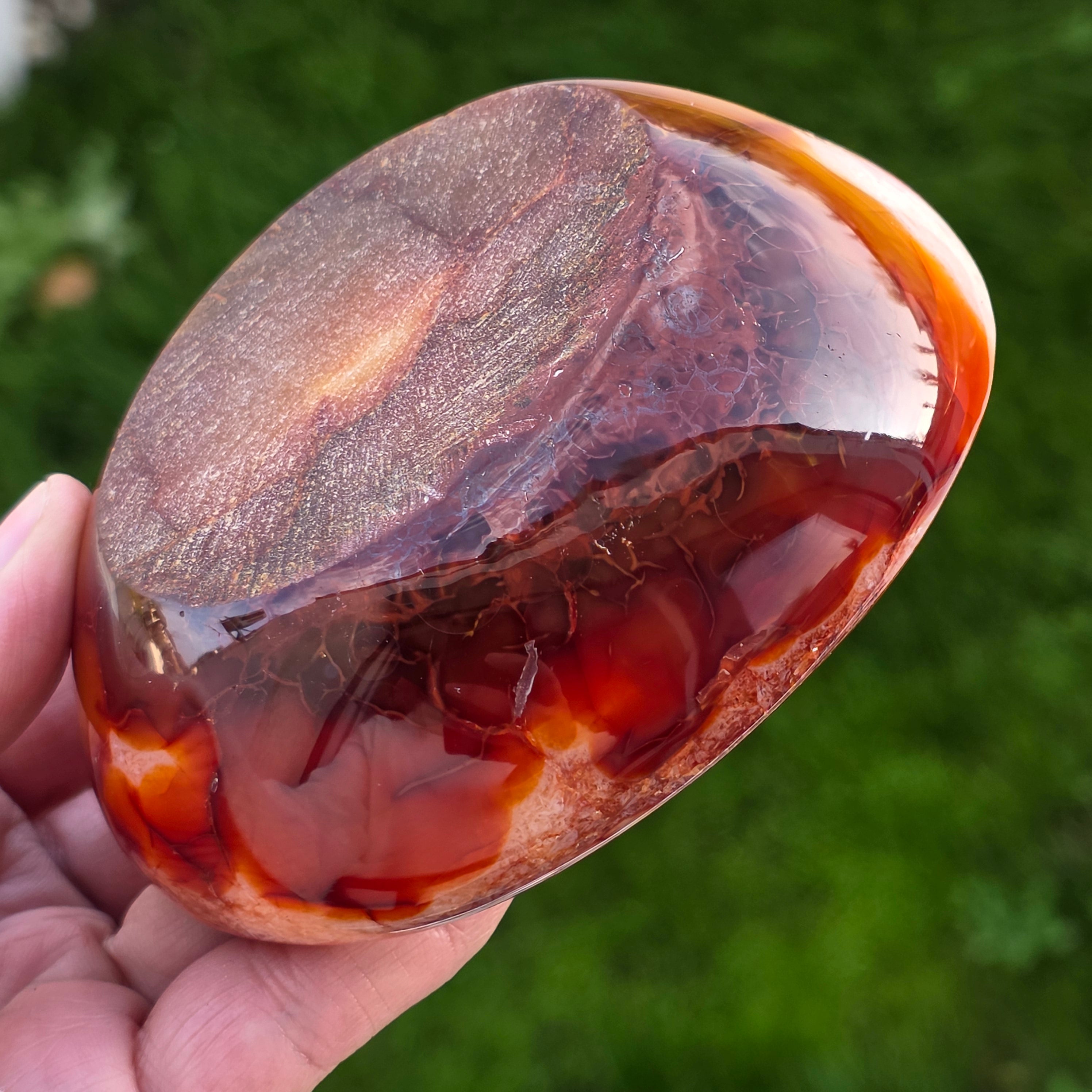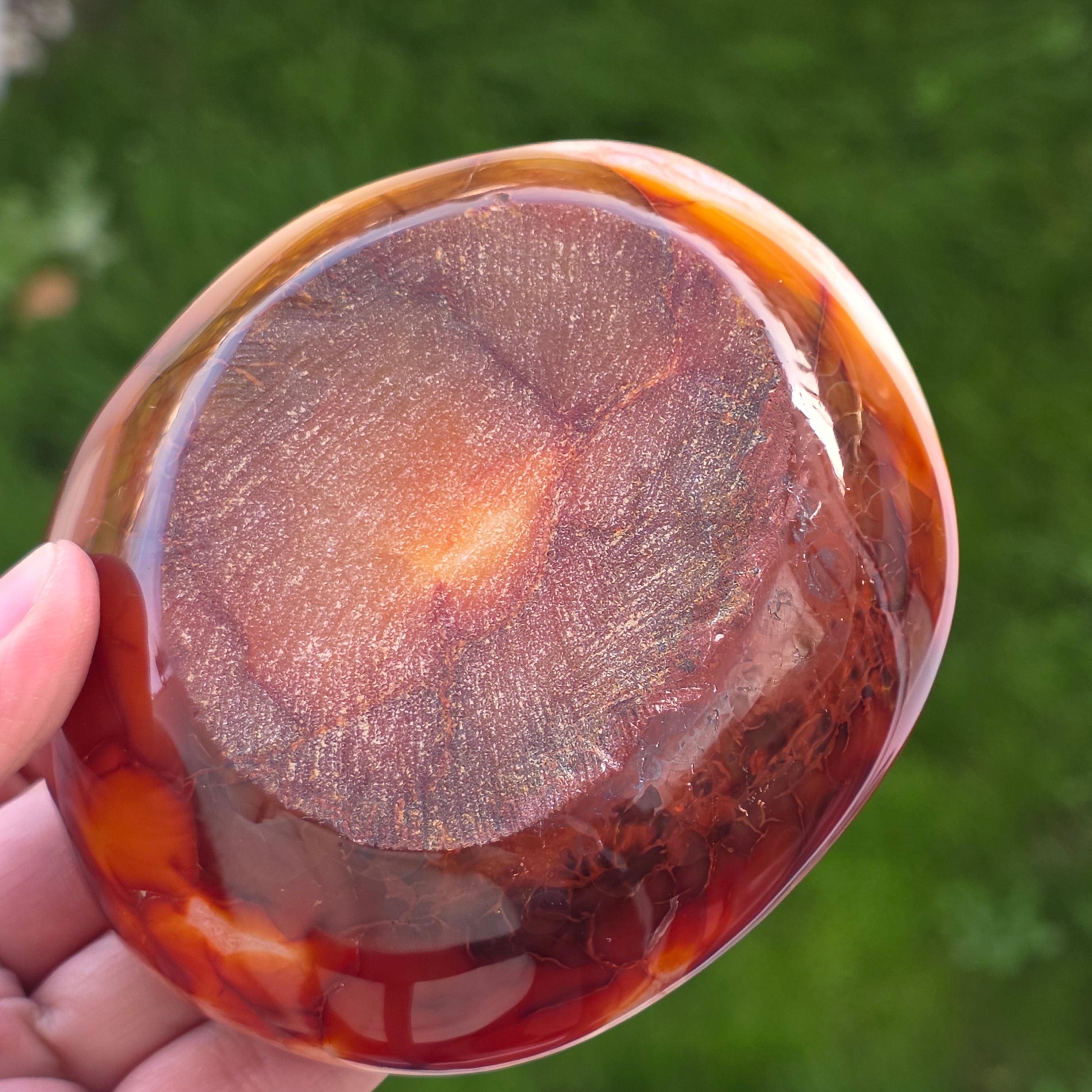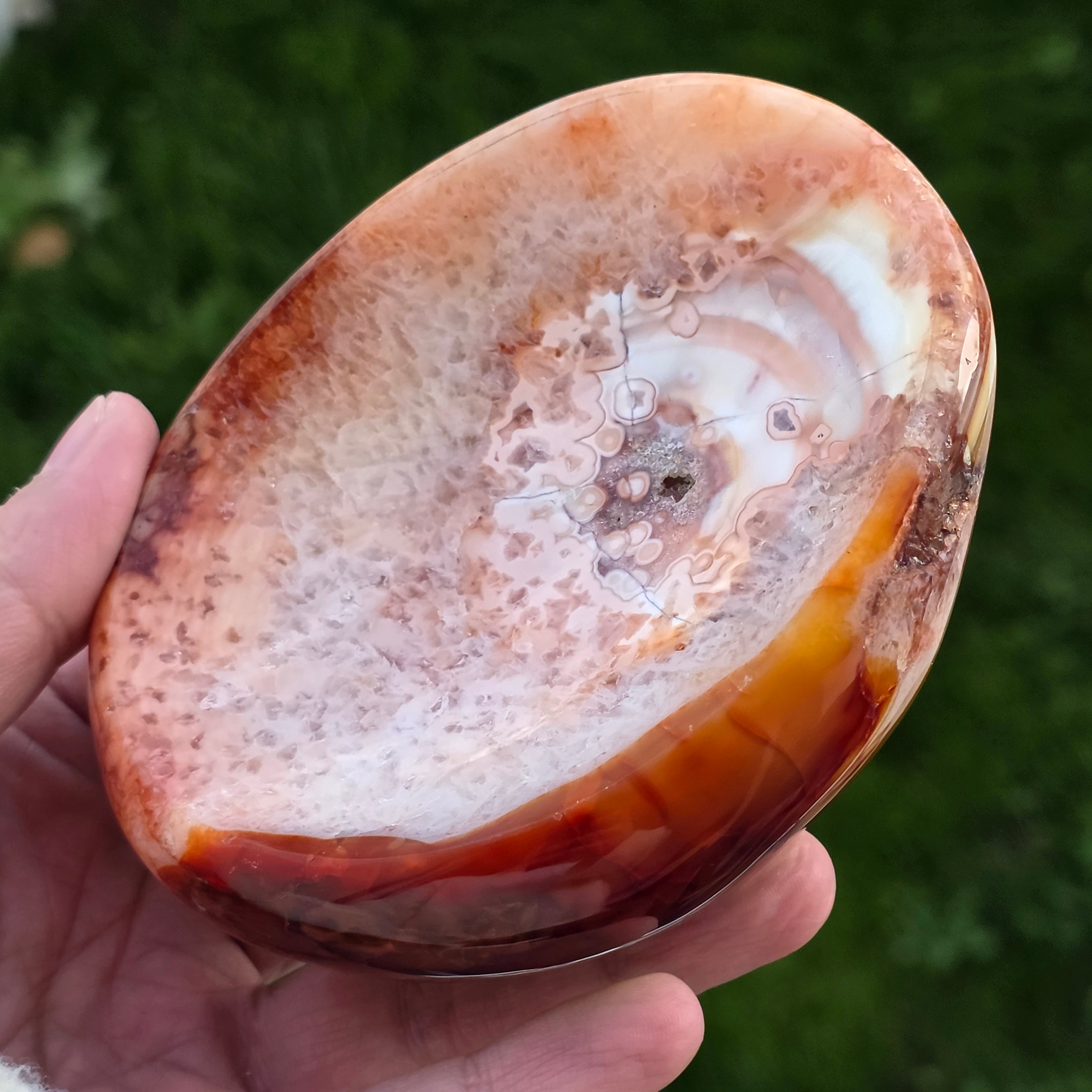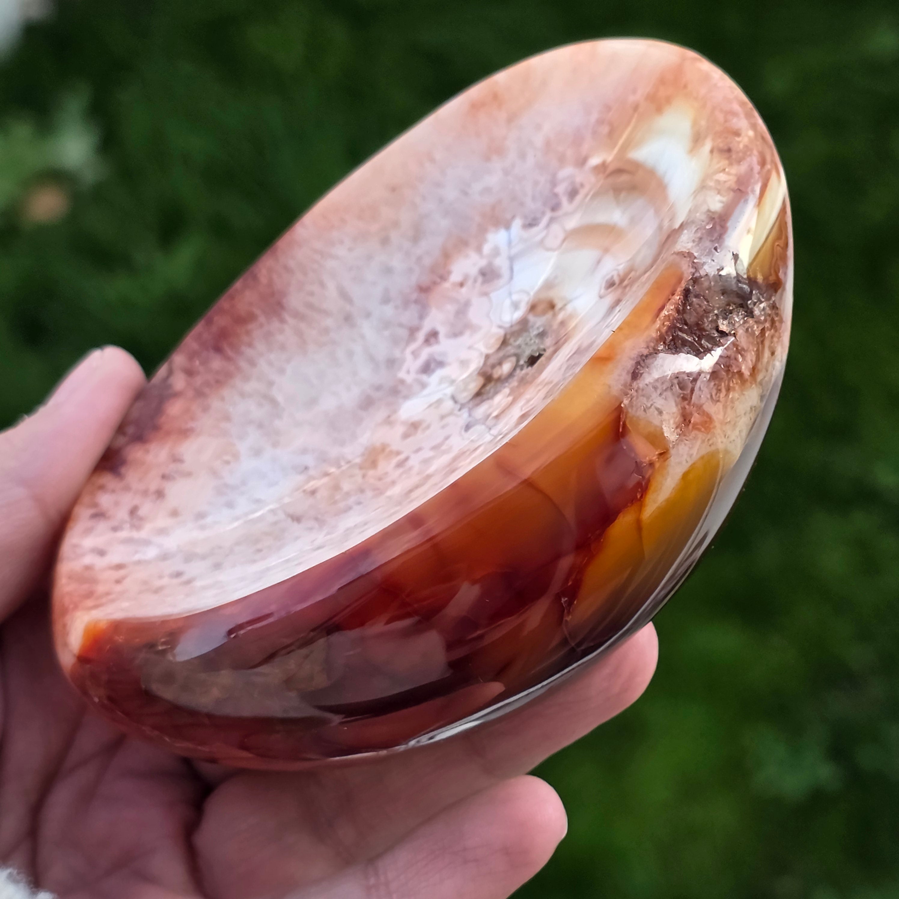 Tál egyedülálló természetes karneol, Madagaszkárról származik, gondosan faragott, hogy kiemelje a kő természetes szépségét.