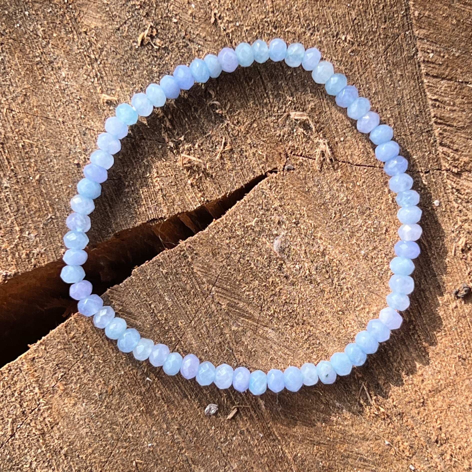 Kék achát csiszolt korongokból készült karkötő 4 mm