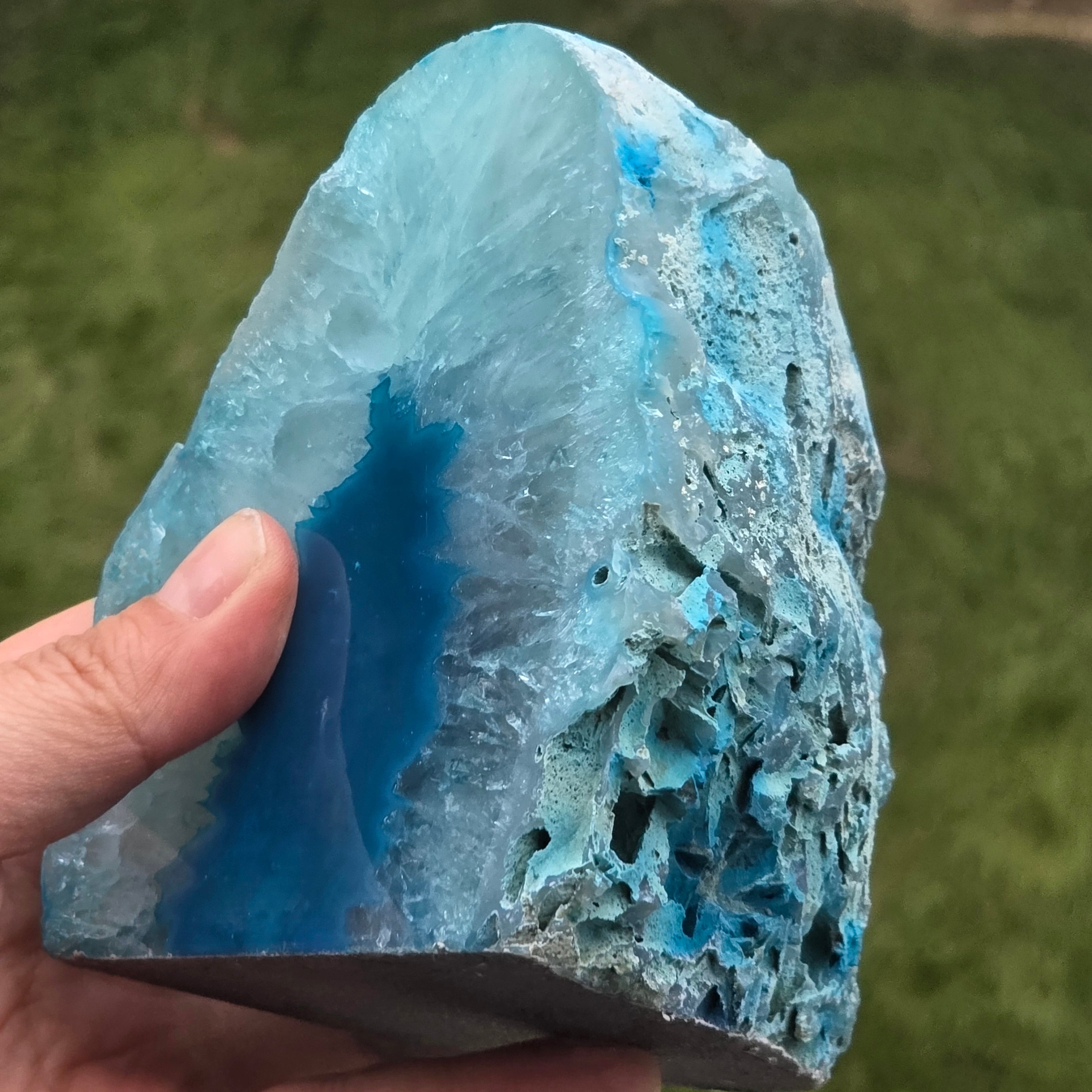 Kék achát gyertyatartó, könyvtámasz, könyvtartó, kb. mérete: 11 * 8,5 cm * 7,5 cm