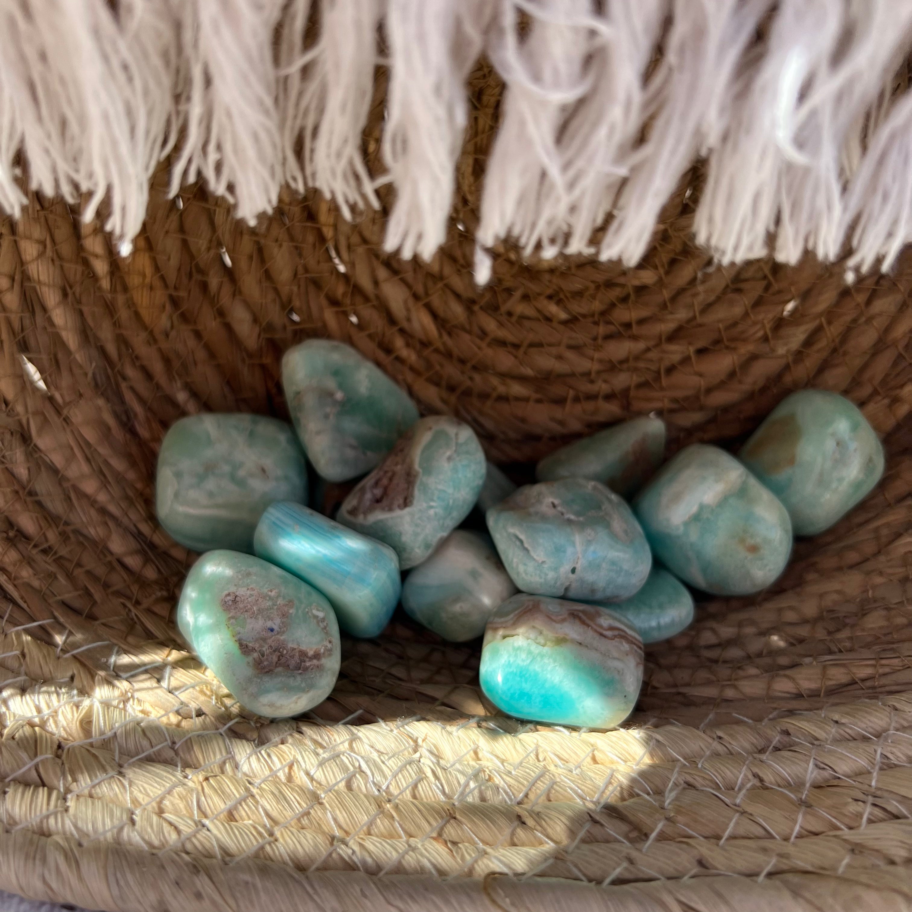 Kék aragonit hengerelt kő m11