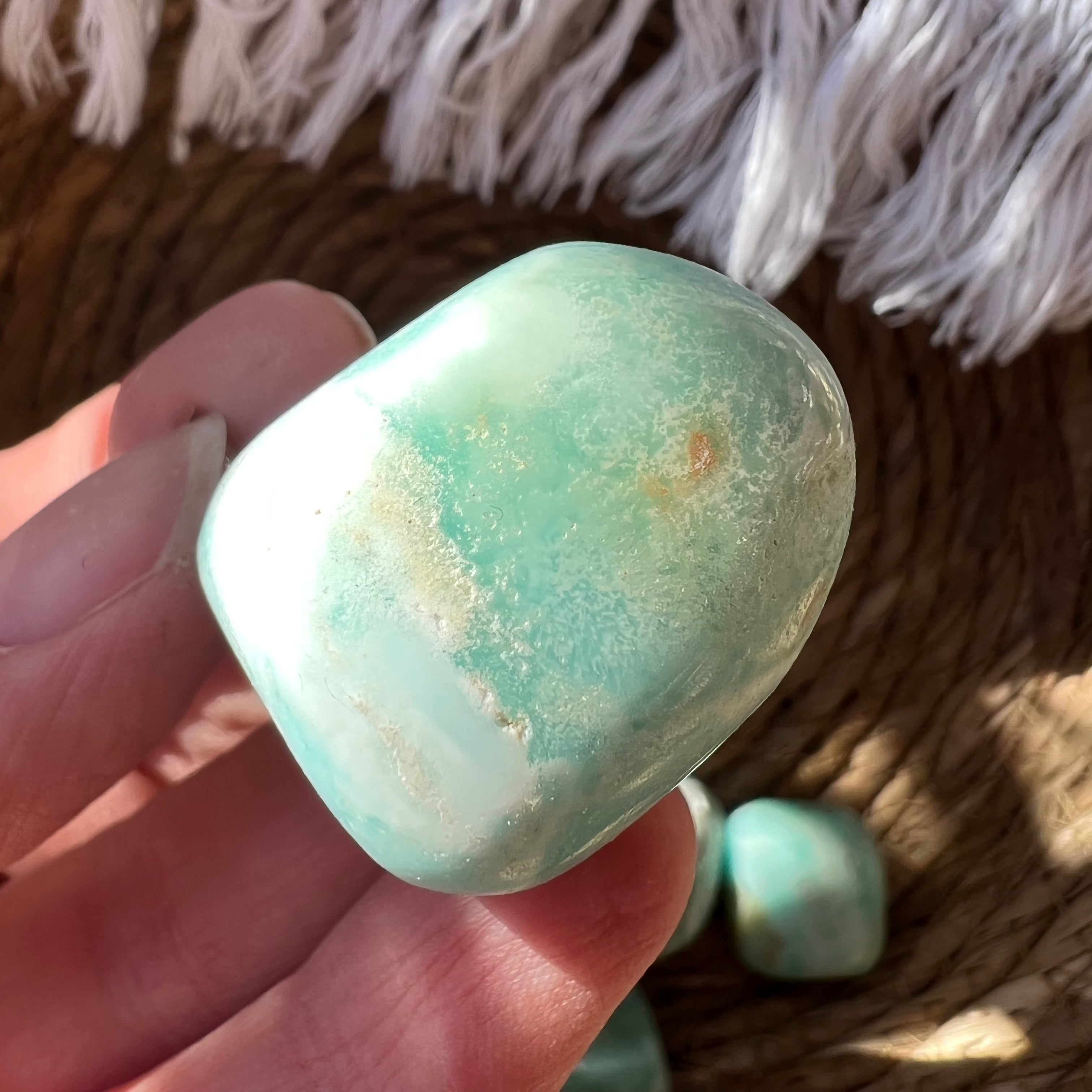 Kék aragonit hengerelt kő m11, mérete 2,5 - 3 cm
