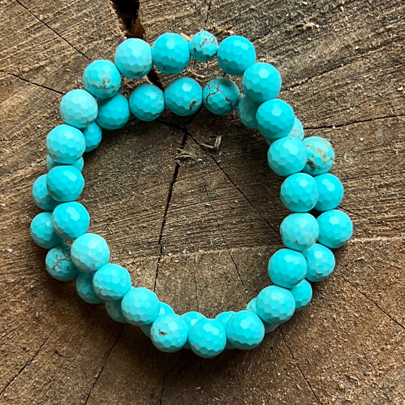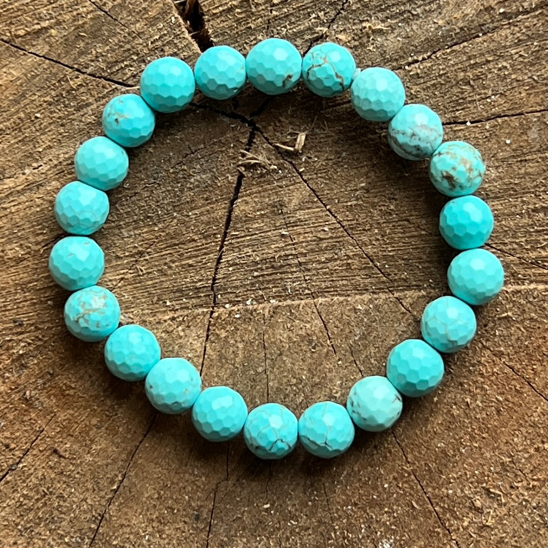 Kék howlit facettált gyöngyös karkötő, 8 mm-es golyók