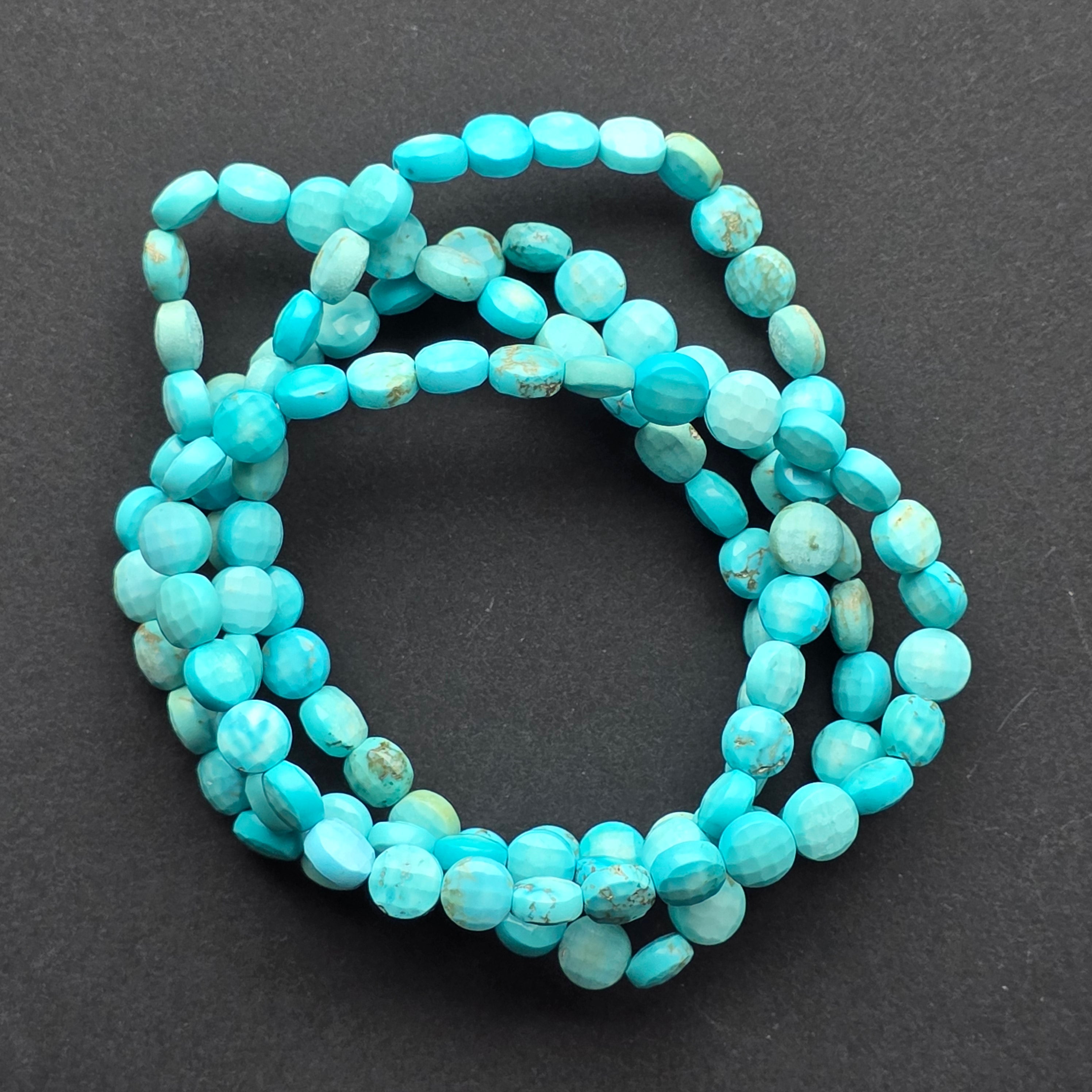 Vélemények - Kék howlit fényes csiszolt karkötő, kerek korongok 6x4 mm