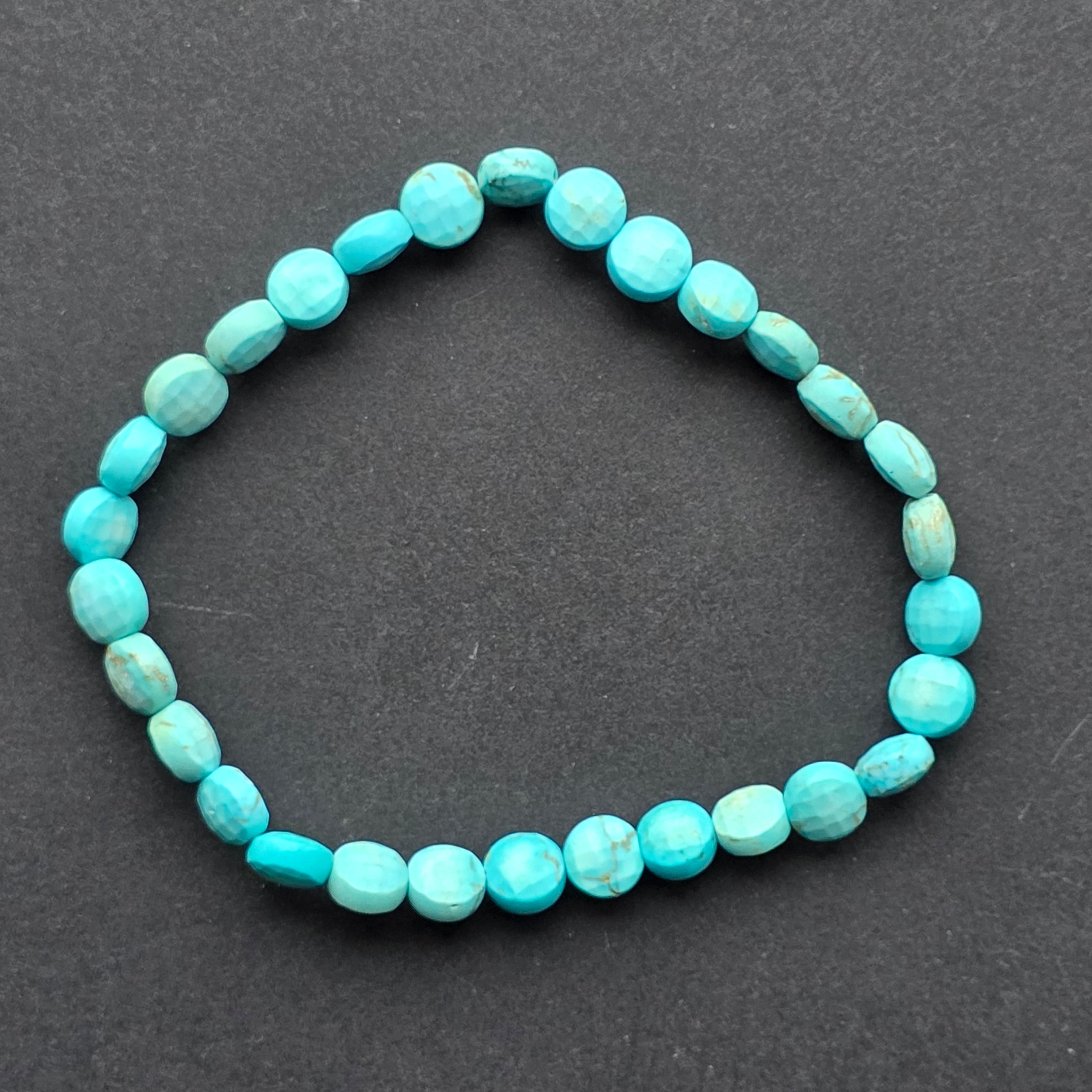 Kék howlit fényes csiszolt karkötő, kerek korongok 6x4 mm