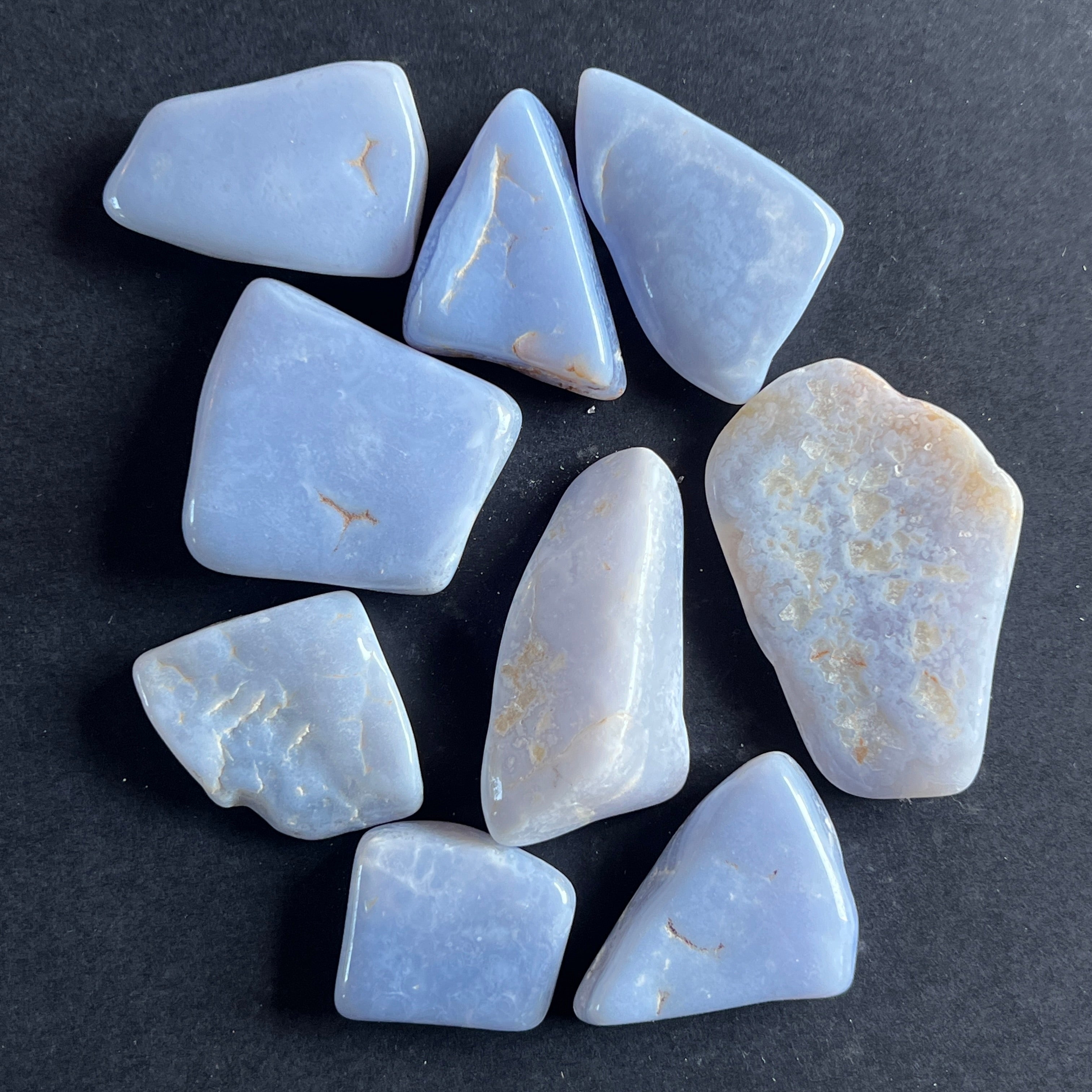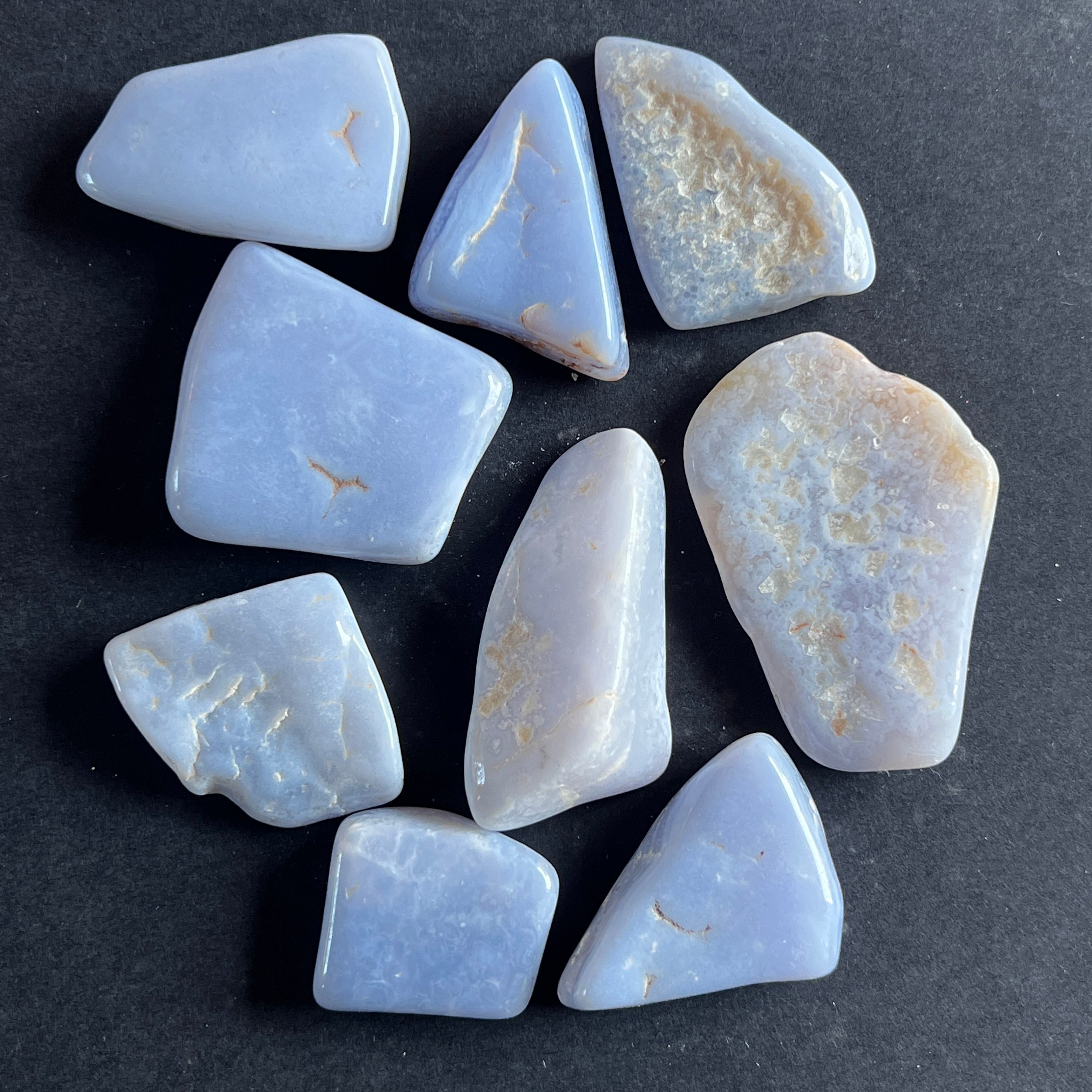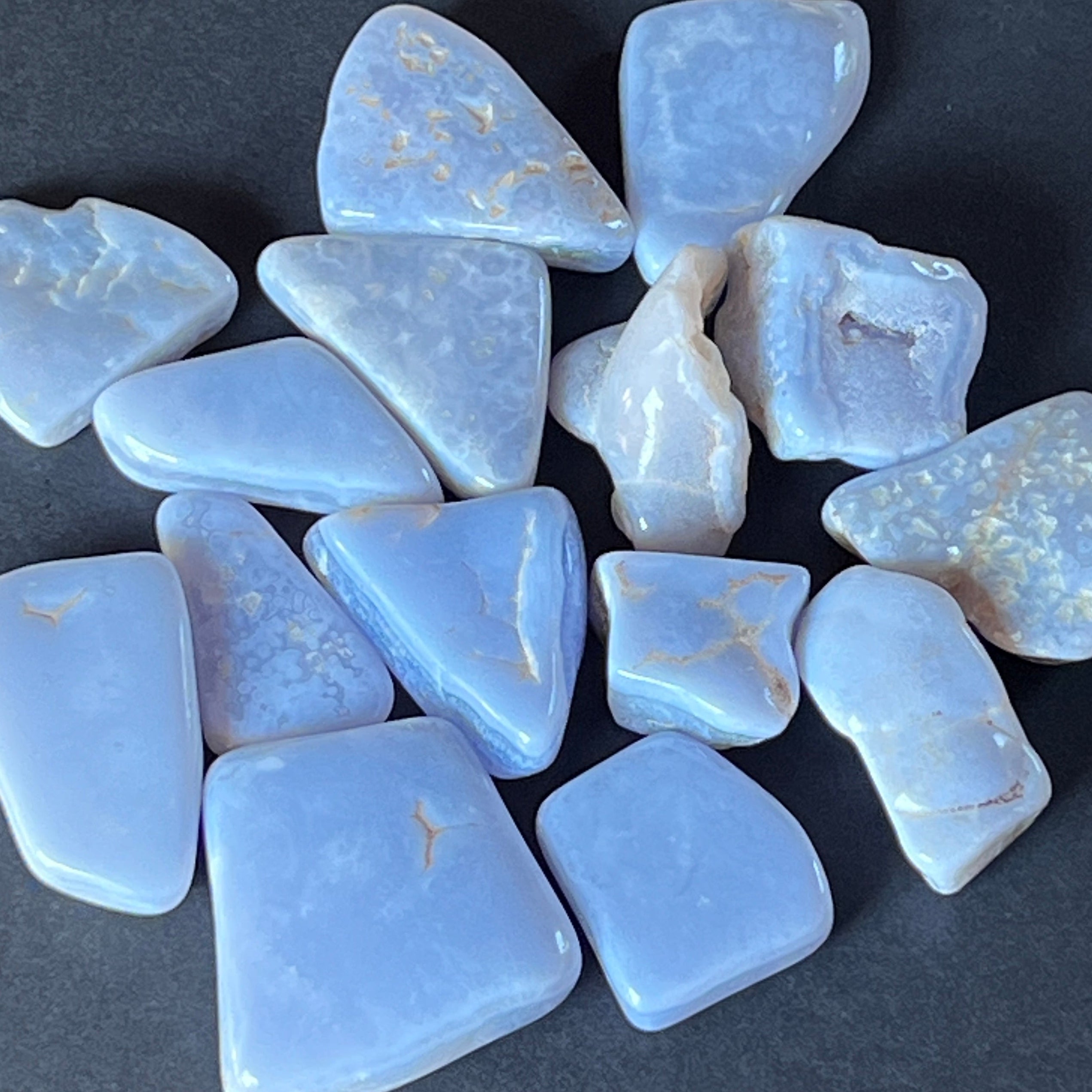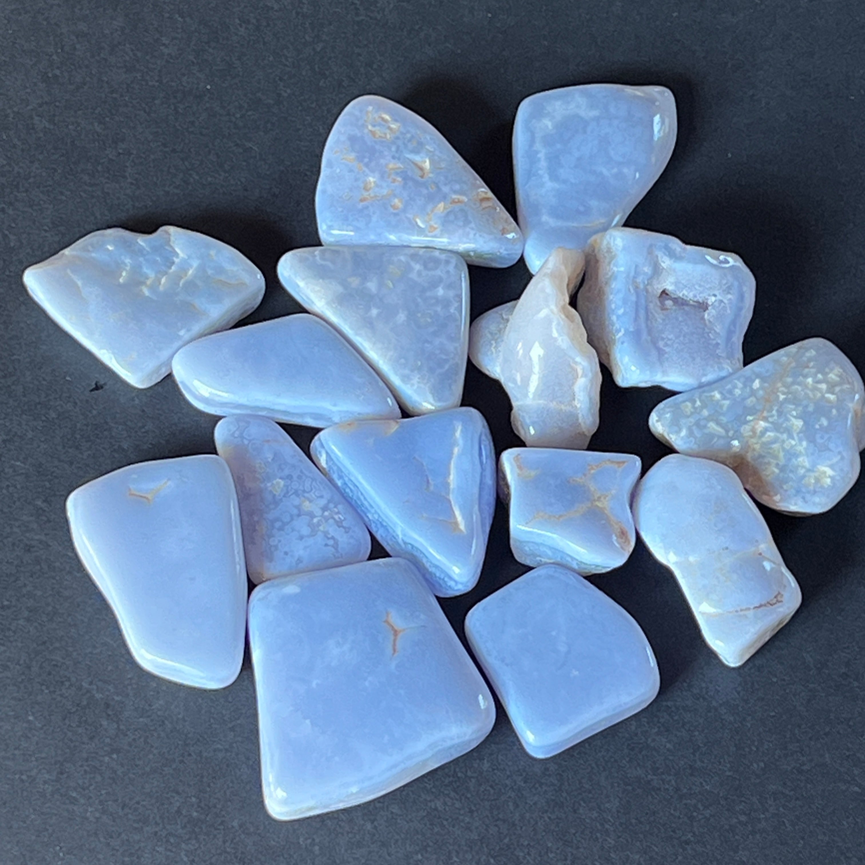 Kék kalcedon / blue lace görgetett kő, kérjük, válassza ki a kívánt méretet. Az ár egy darabra vonatkozik.