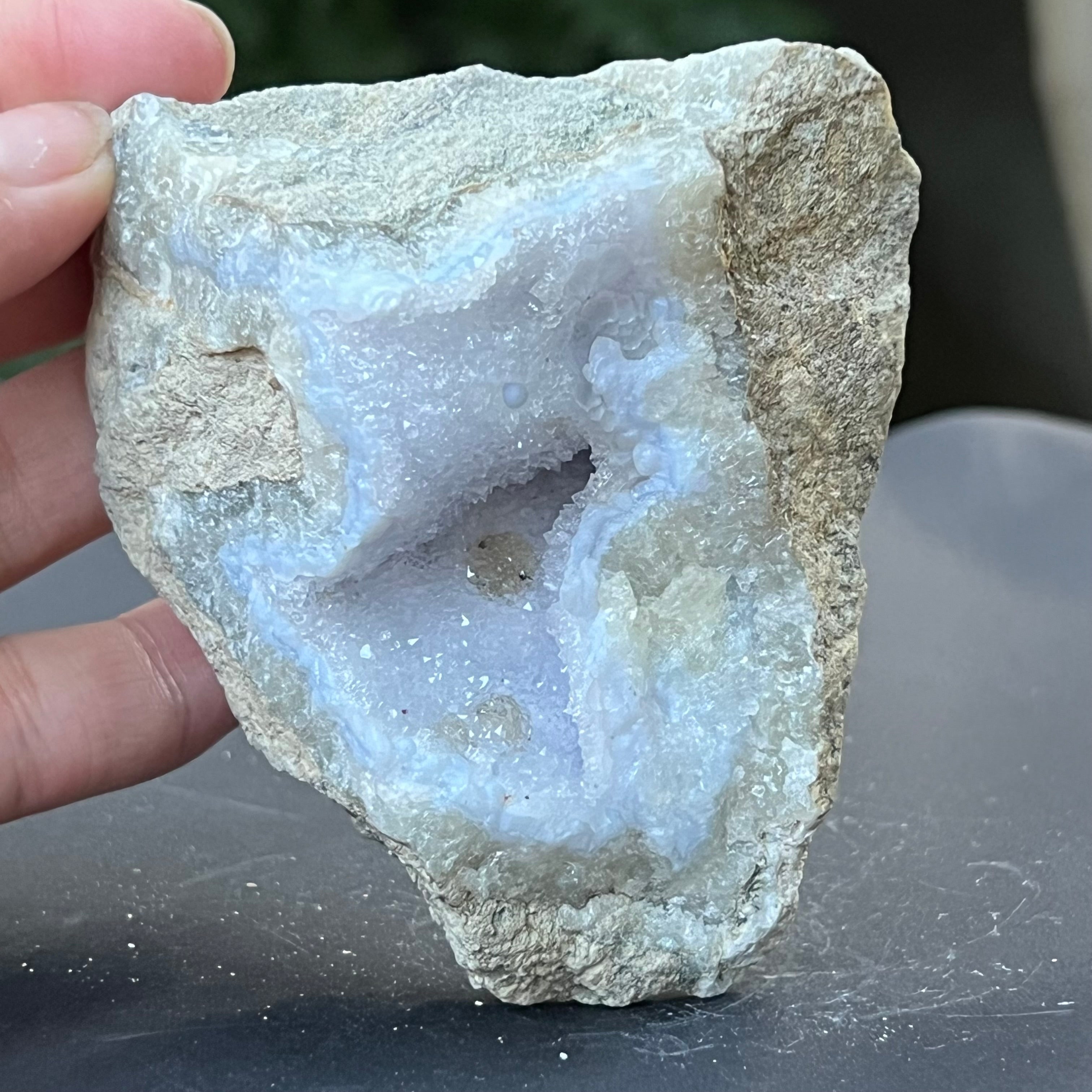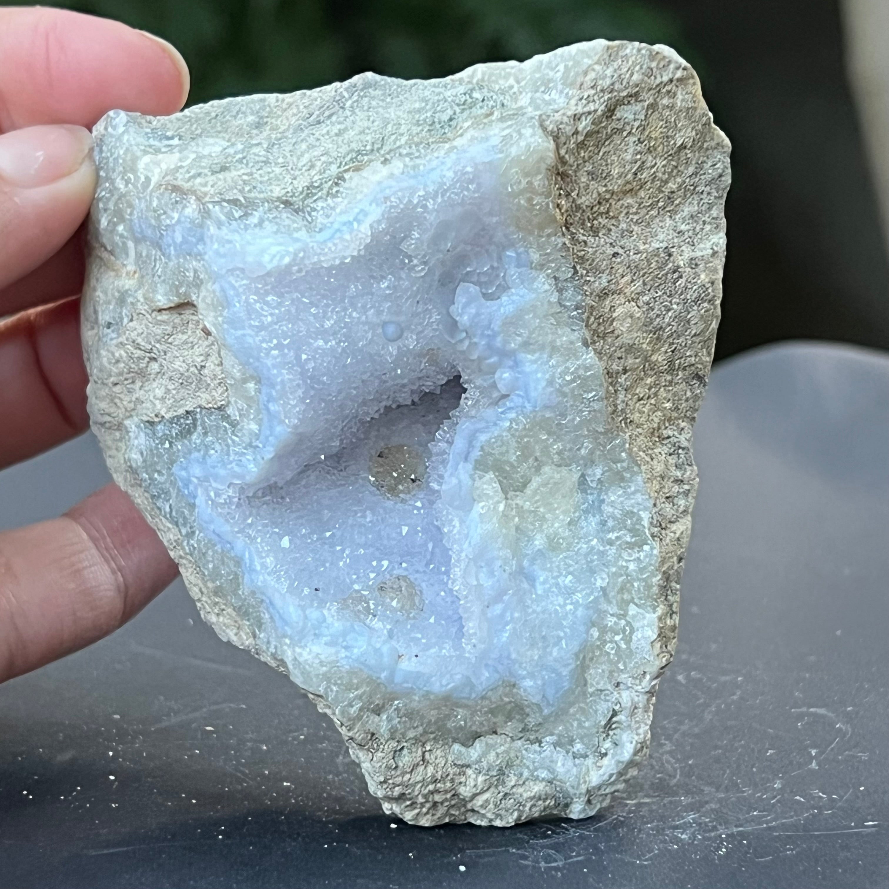 A kék kalcedont általában a kommunikációval, az önkifejezéssel és az igazsággal társítják, segíthet az autentikus kommunikáció ösztönzésében.