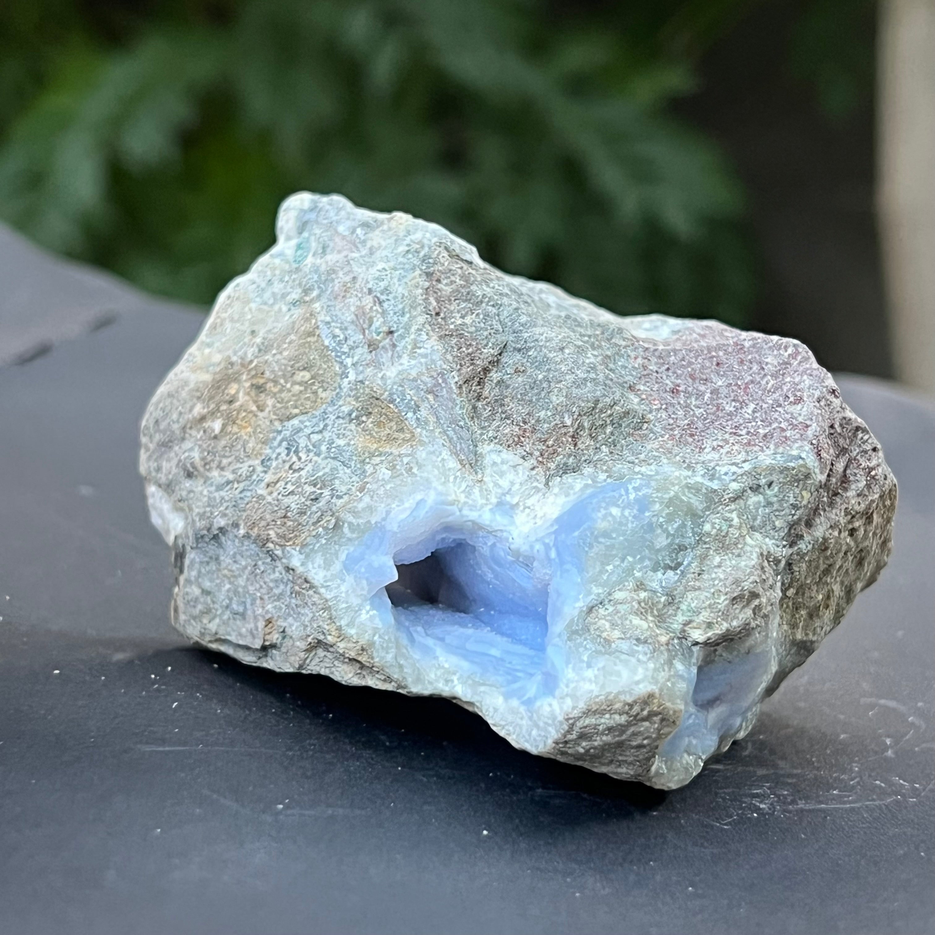 Kék kalcedon / blue lace / kék achát nyers kő m4, méret: 8,5 * 6 * 6 cm
