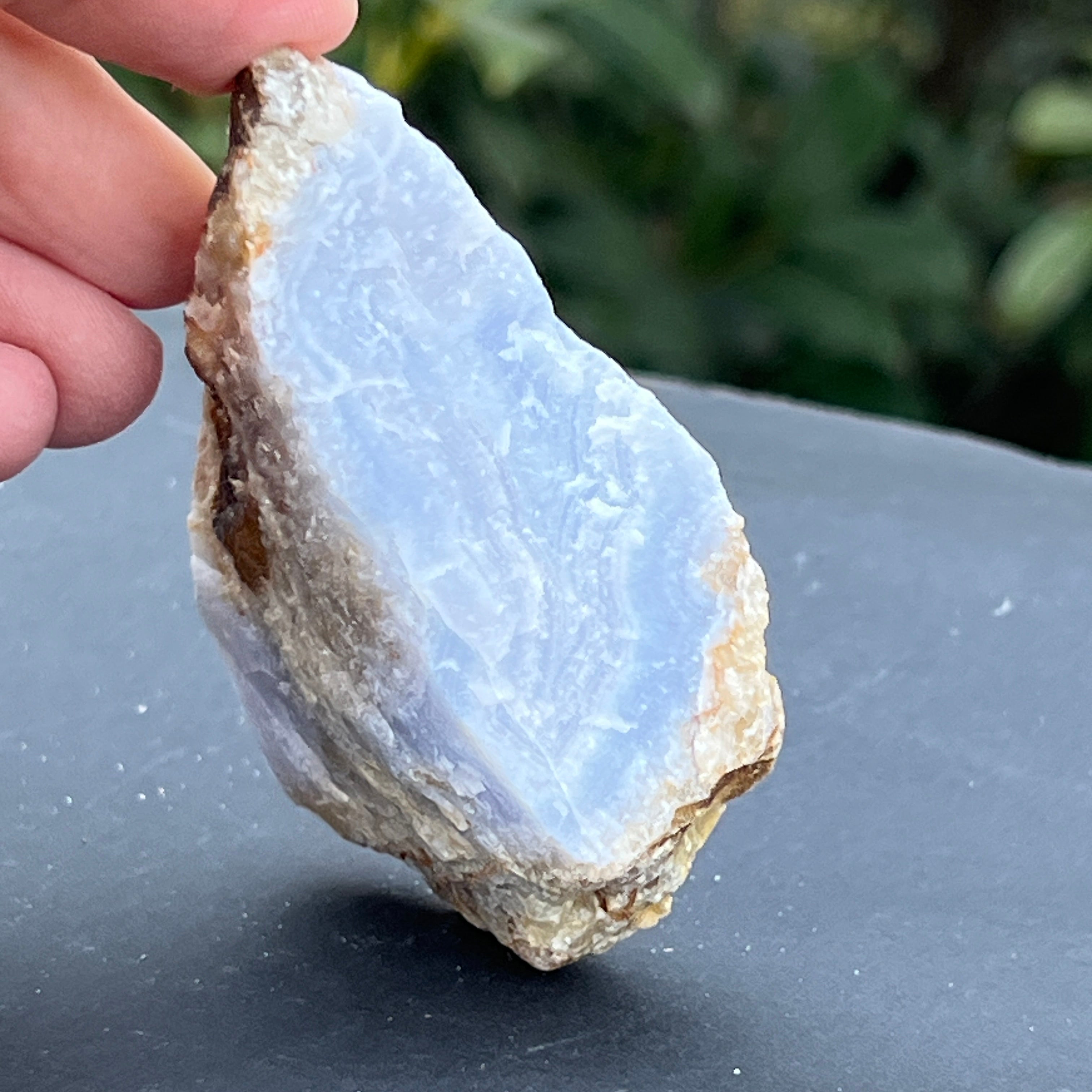 Kék kalcedon /blue lace/ kék jáspis nyers kő, méret 7 * 4,2 * 2 cm