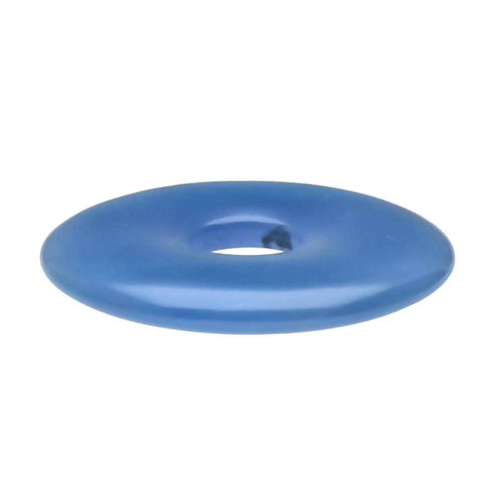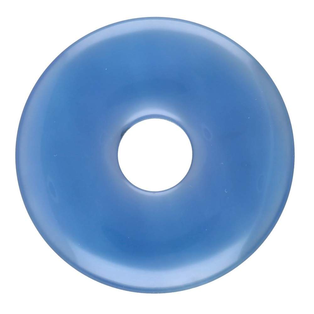 A kék kalcedon L méretű donut medál elbűvöl a nyugodt árnyalataival, amelyek az ég nyugalmát és a víz áramlását idézik.