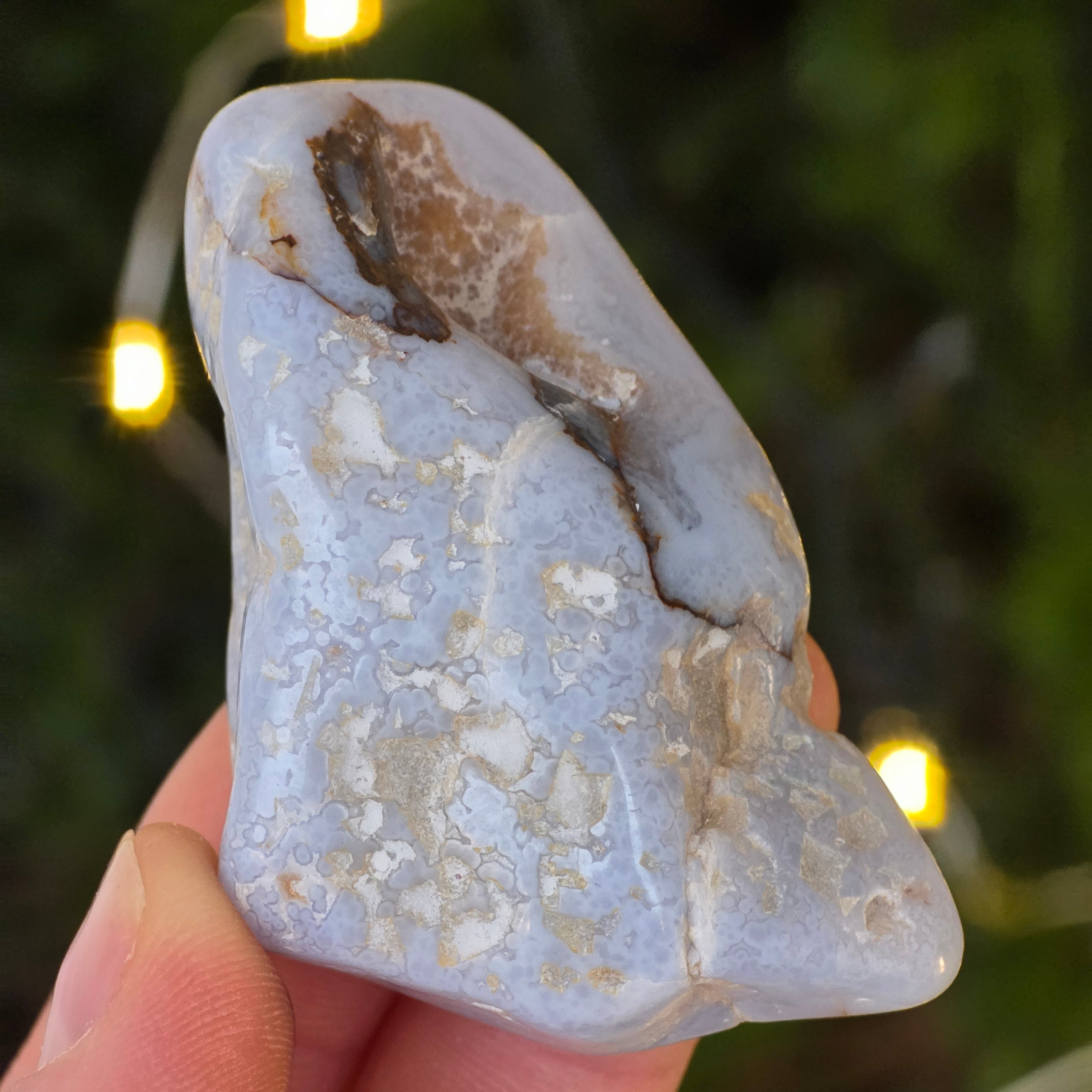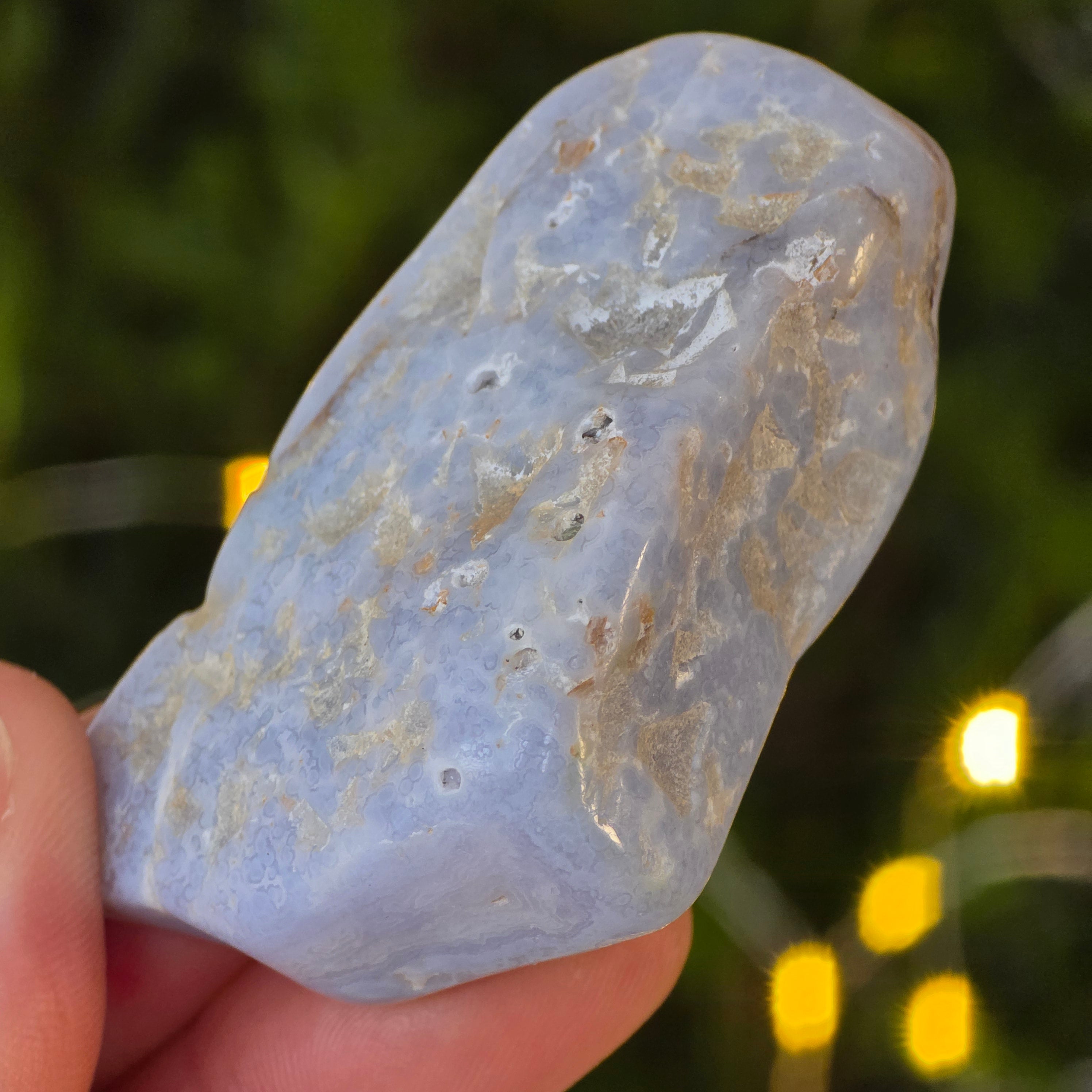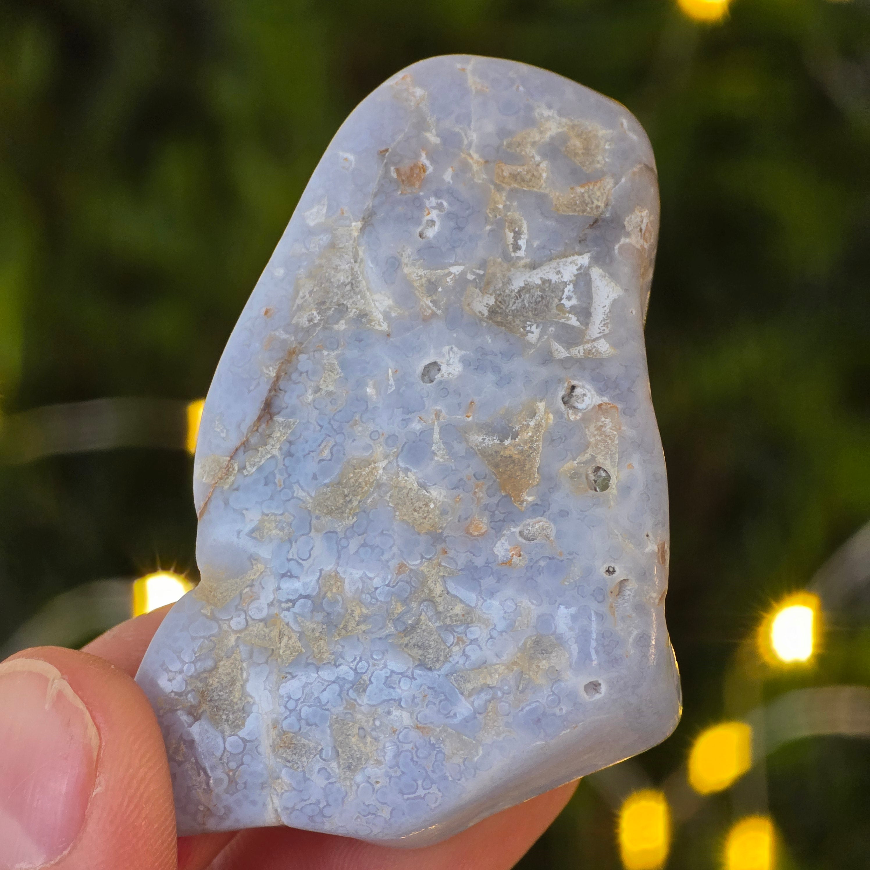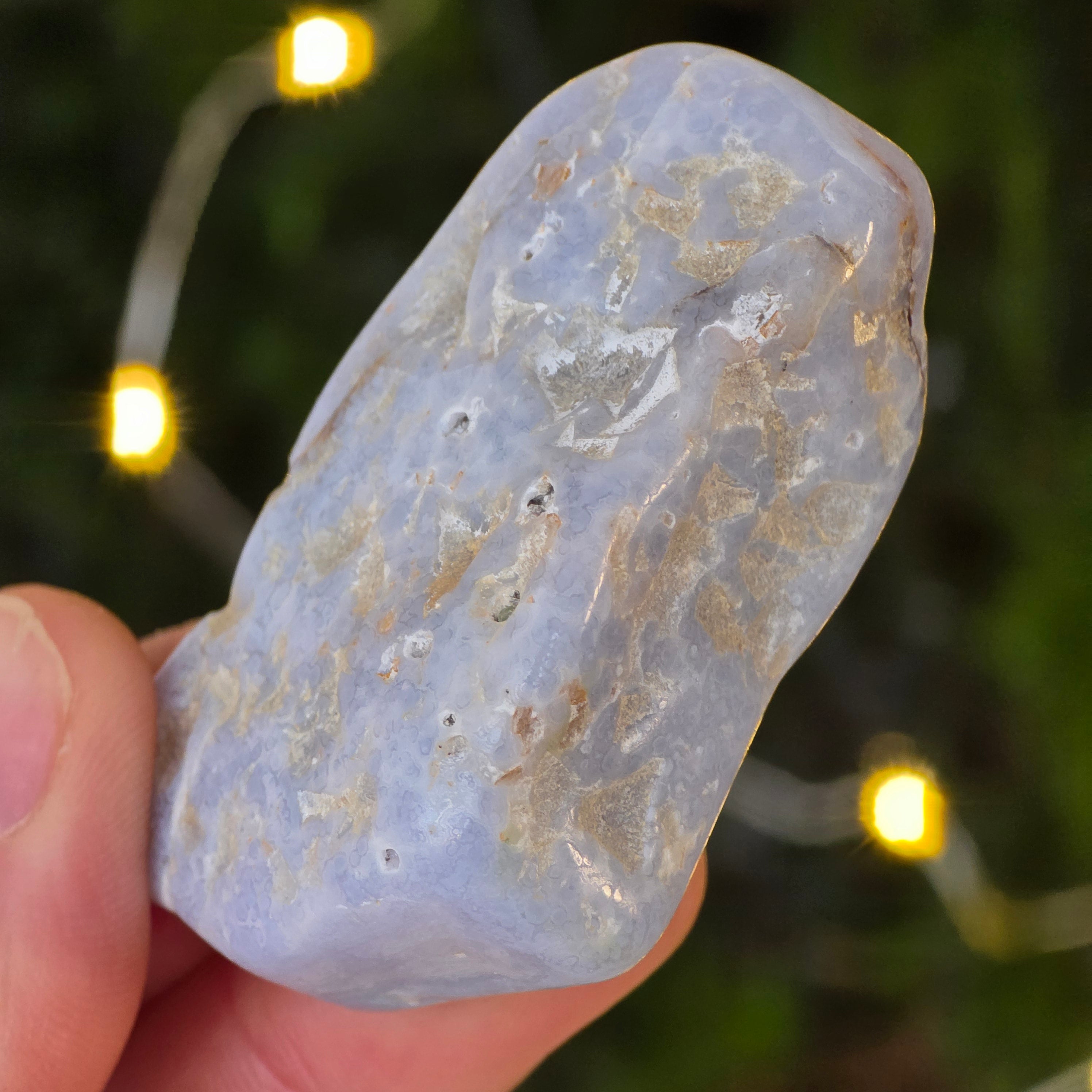 A kék kalcedon általában a kommunikációval, önkifejezéssel és az igazság képviseletével társul, segíthet az őszinte kommunikáció serkentésében.