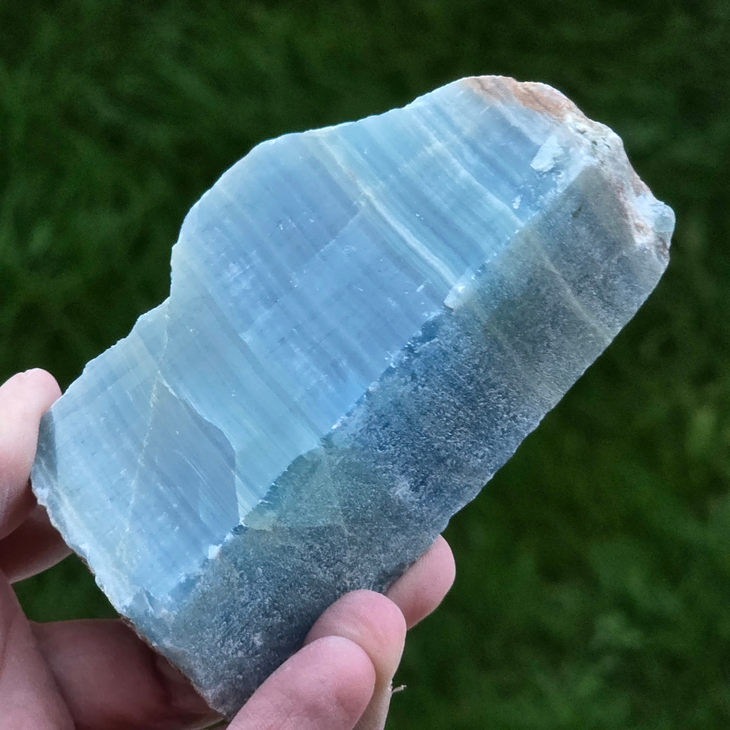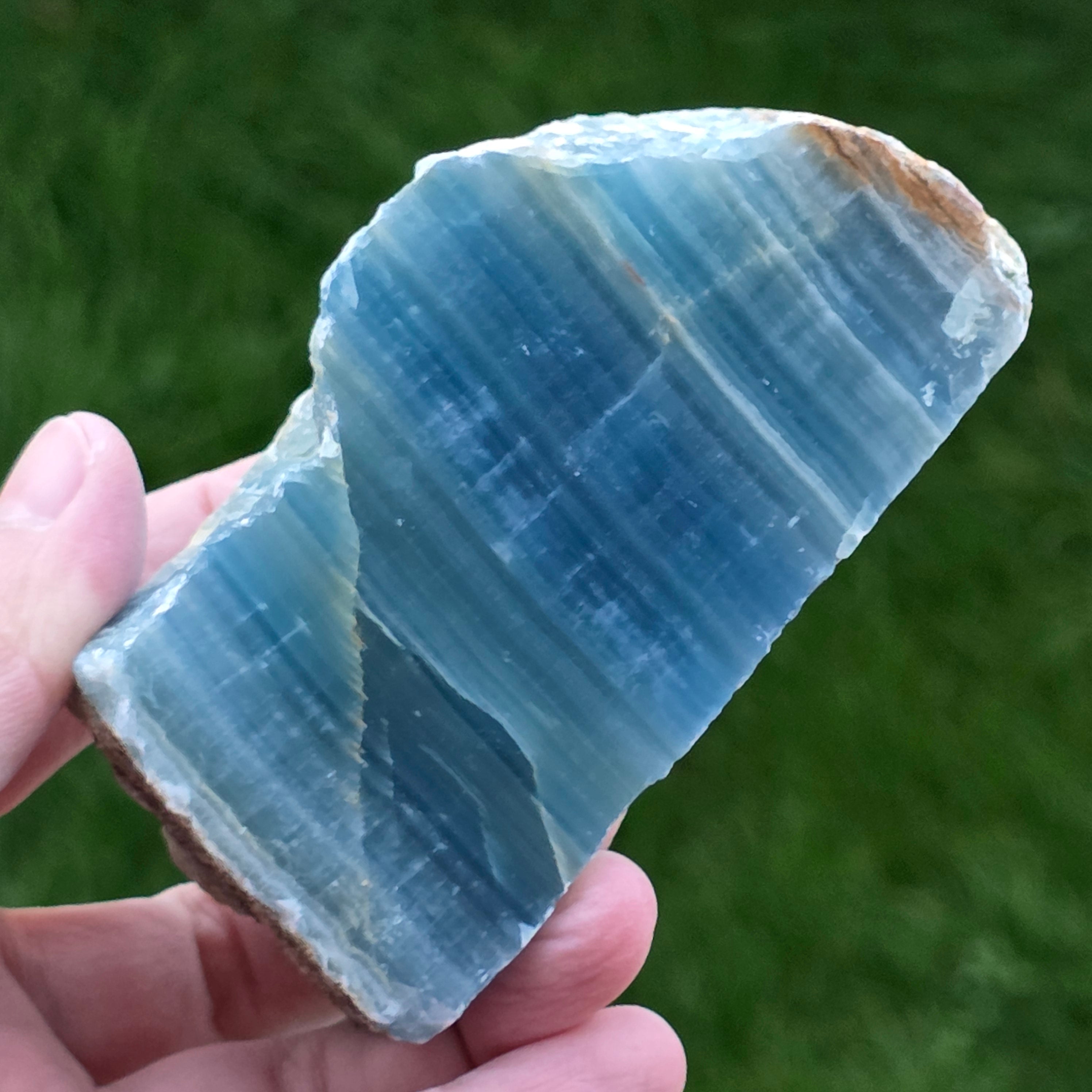 Vélemények - Kék onyx polírozott durva kő az egyik oldalon | Model 3