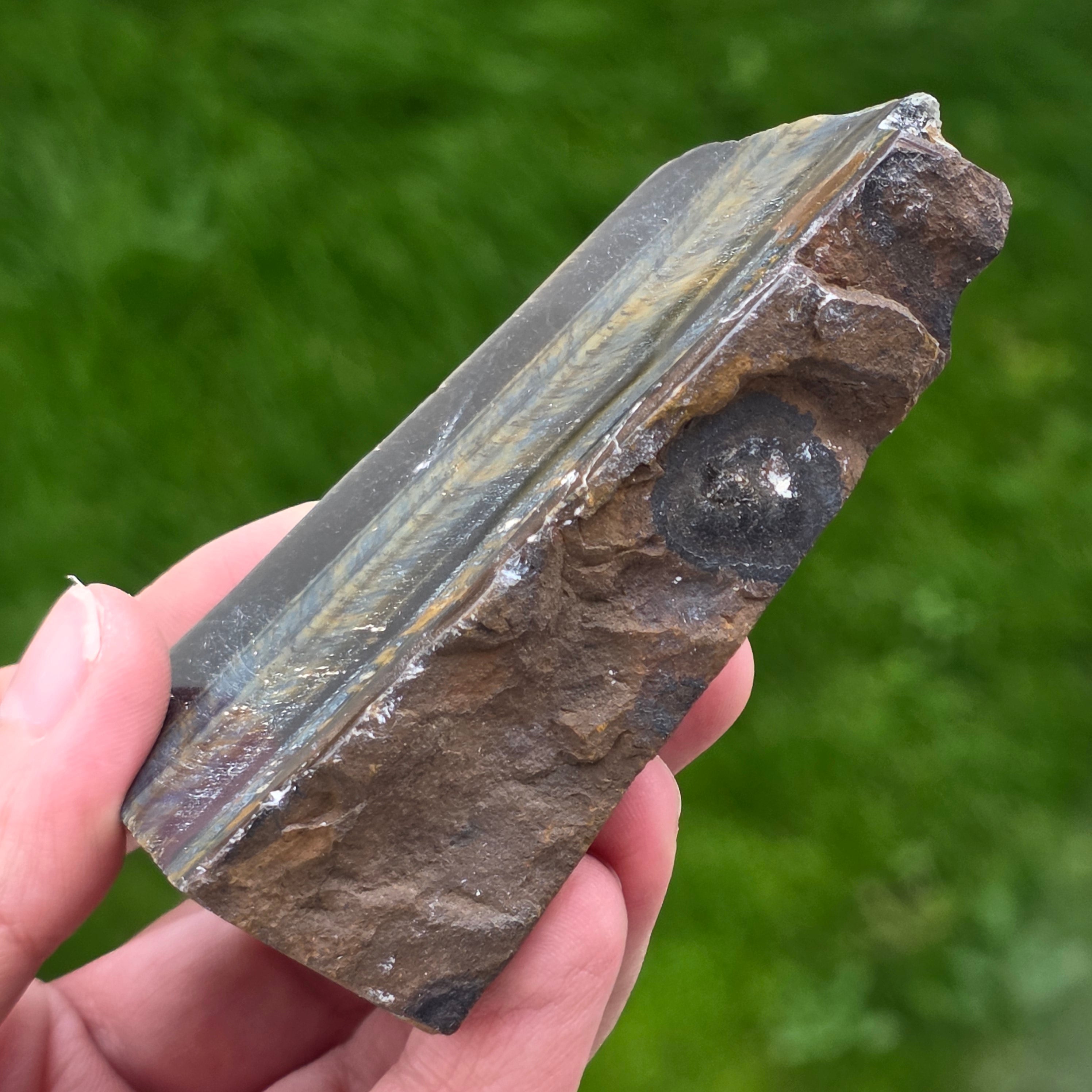 Descriere - Kék tigrisszem nyers kő (sólyomszem) mintázat 1