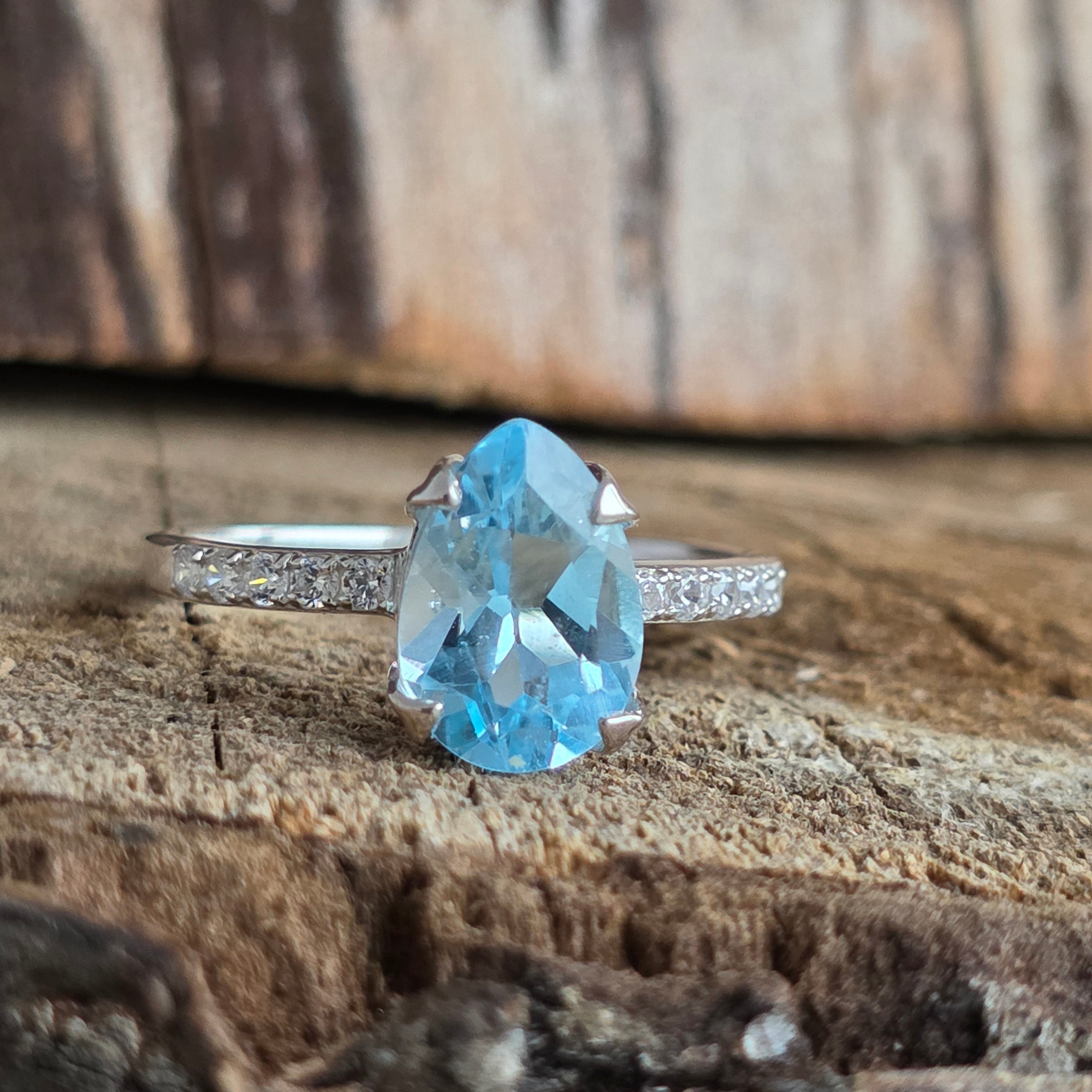 Kék topáz ezüst gyűrű Pear 10 mm, kérjük válassza ki a kívánt méretet.