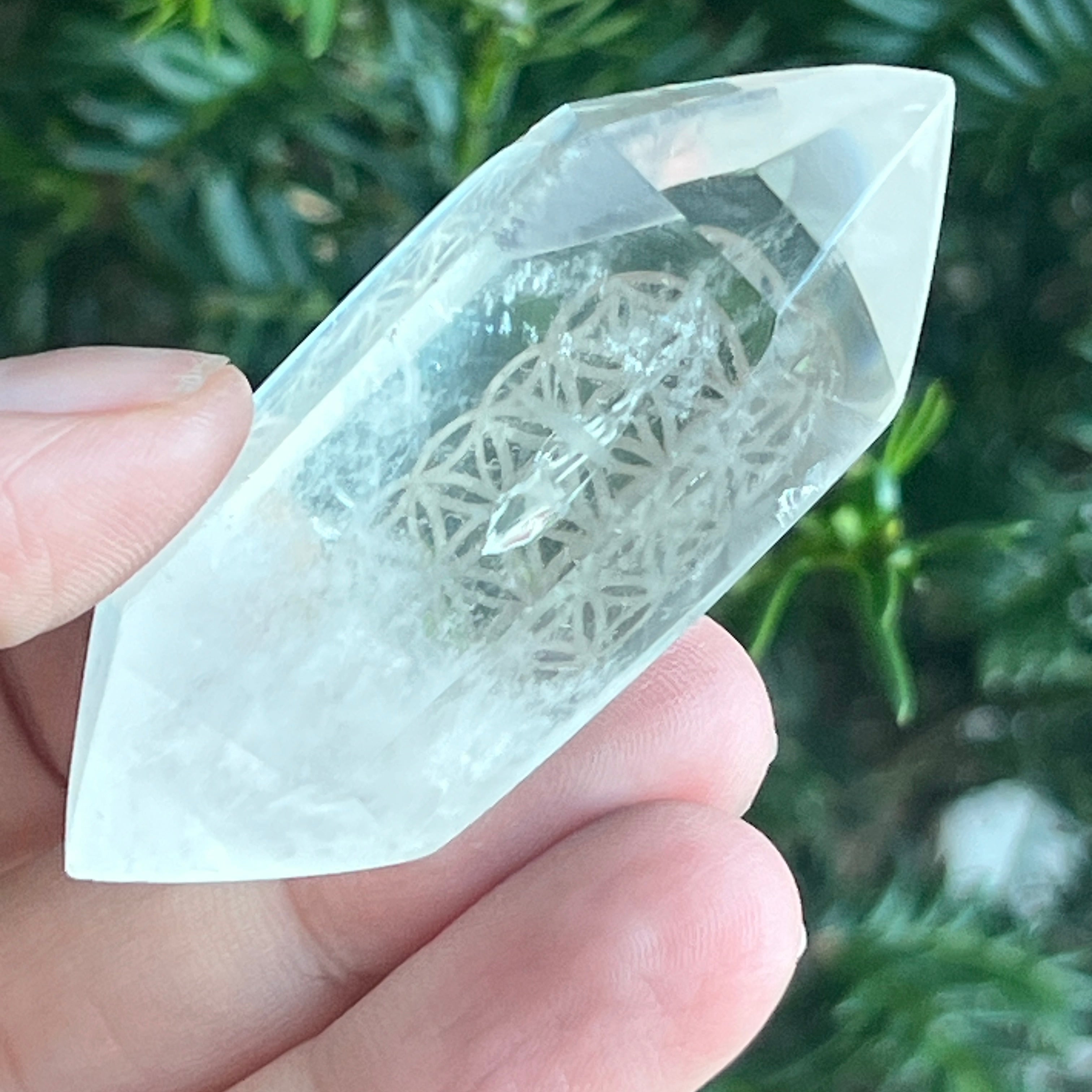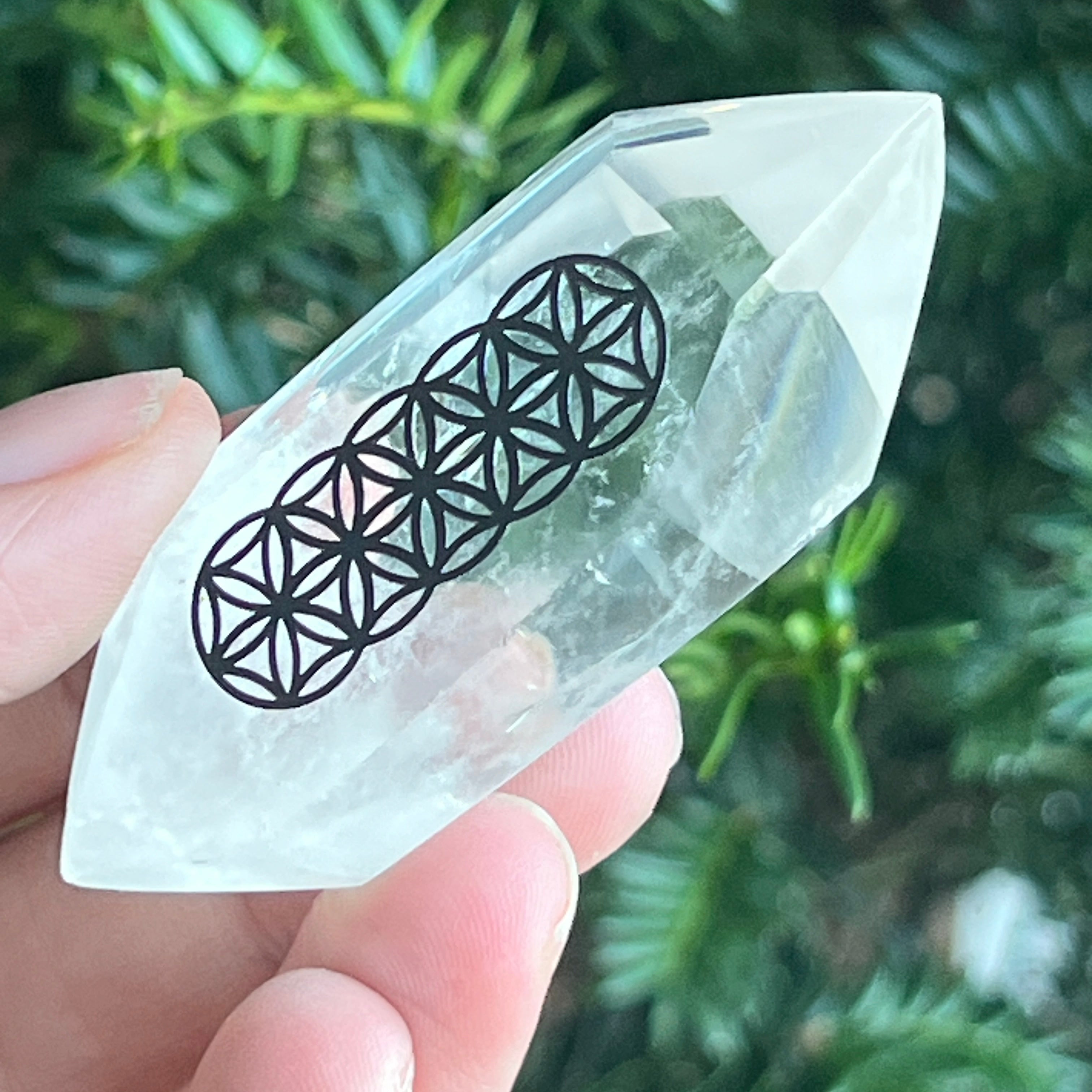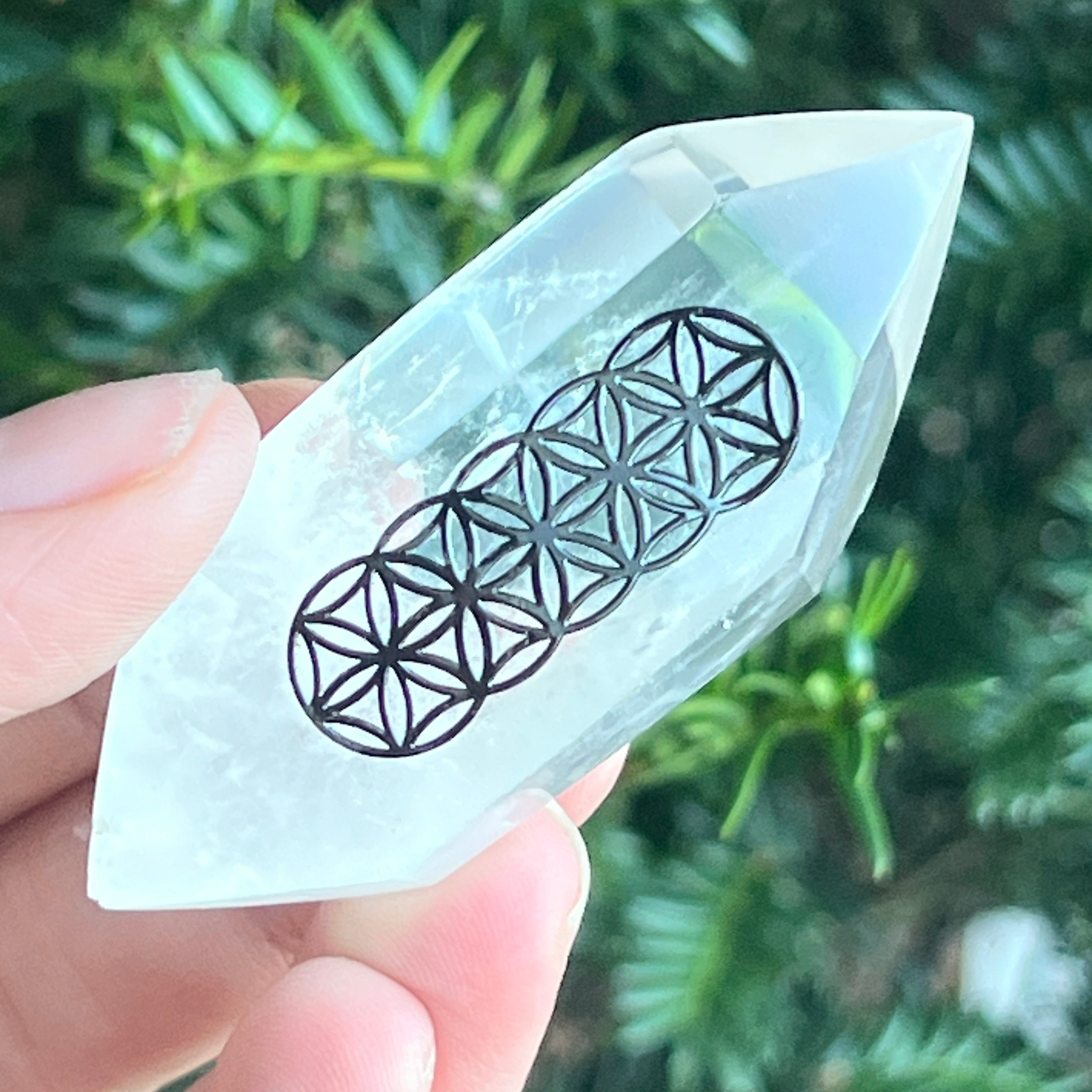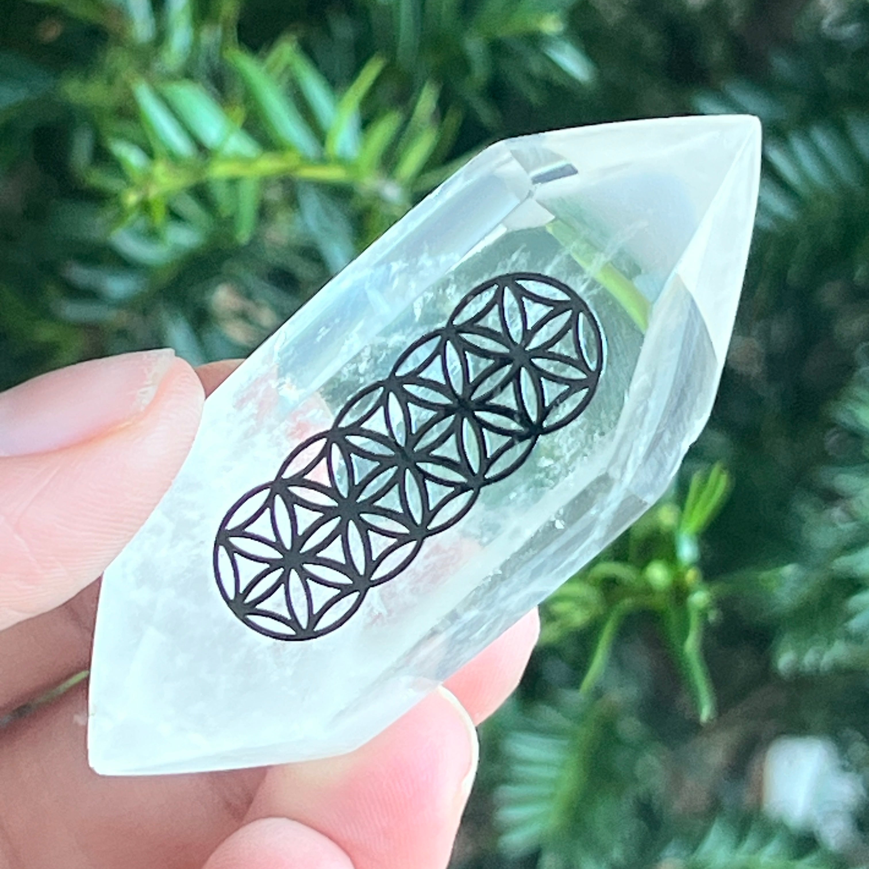 Dupla hegyes átlátszó kvarc kő vésett Az élet virága / Az élet virága ideális: