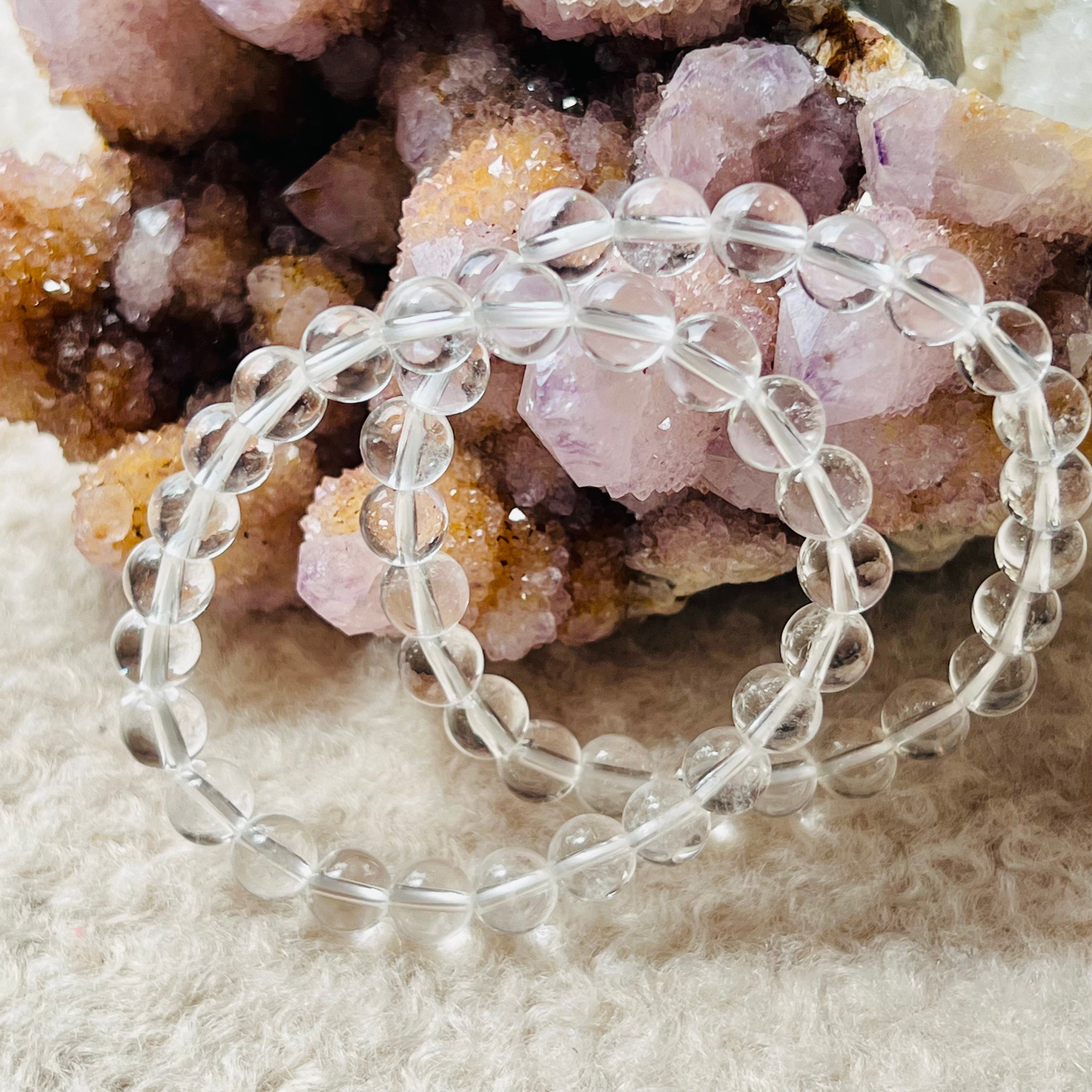 Kőkvarc/színtelen kristály karkötő 8 mm