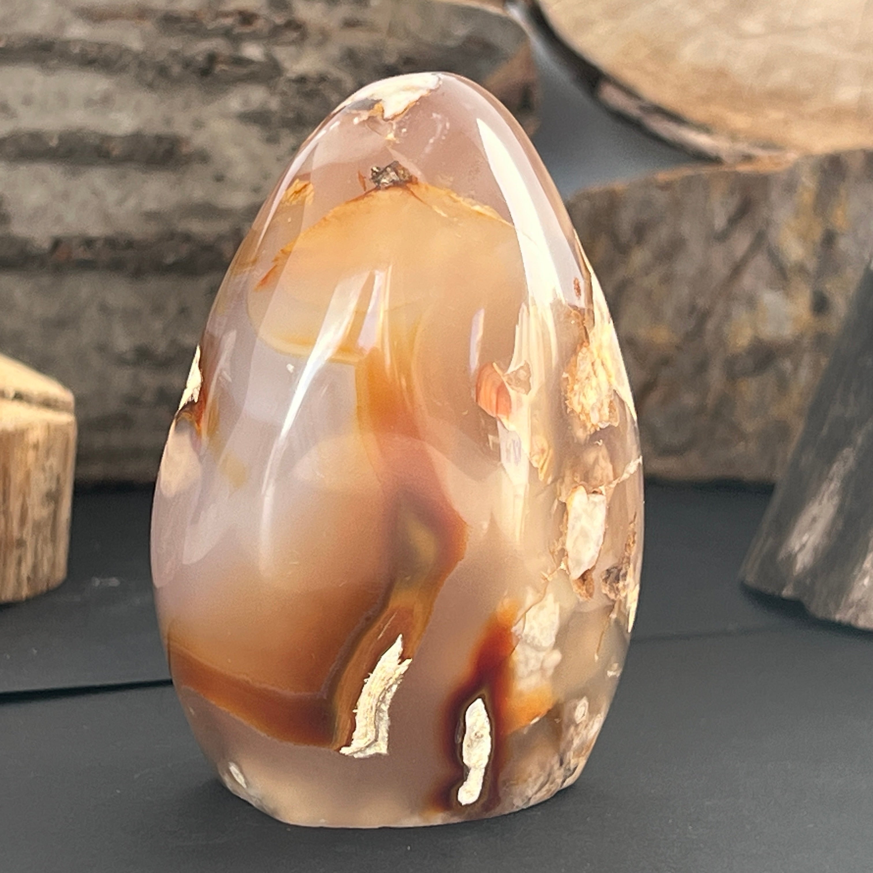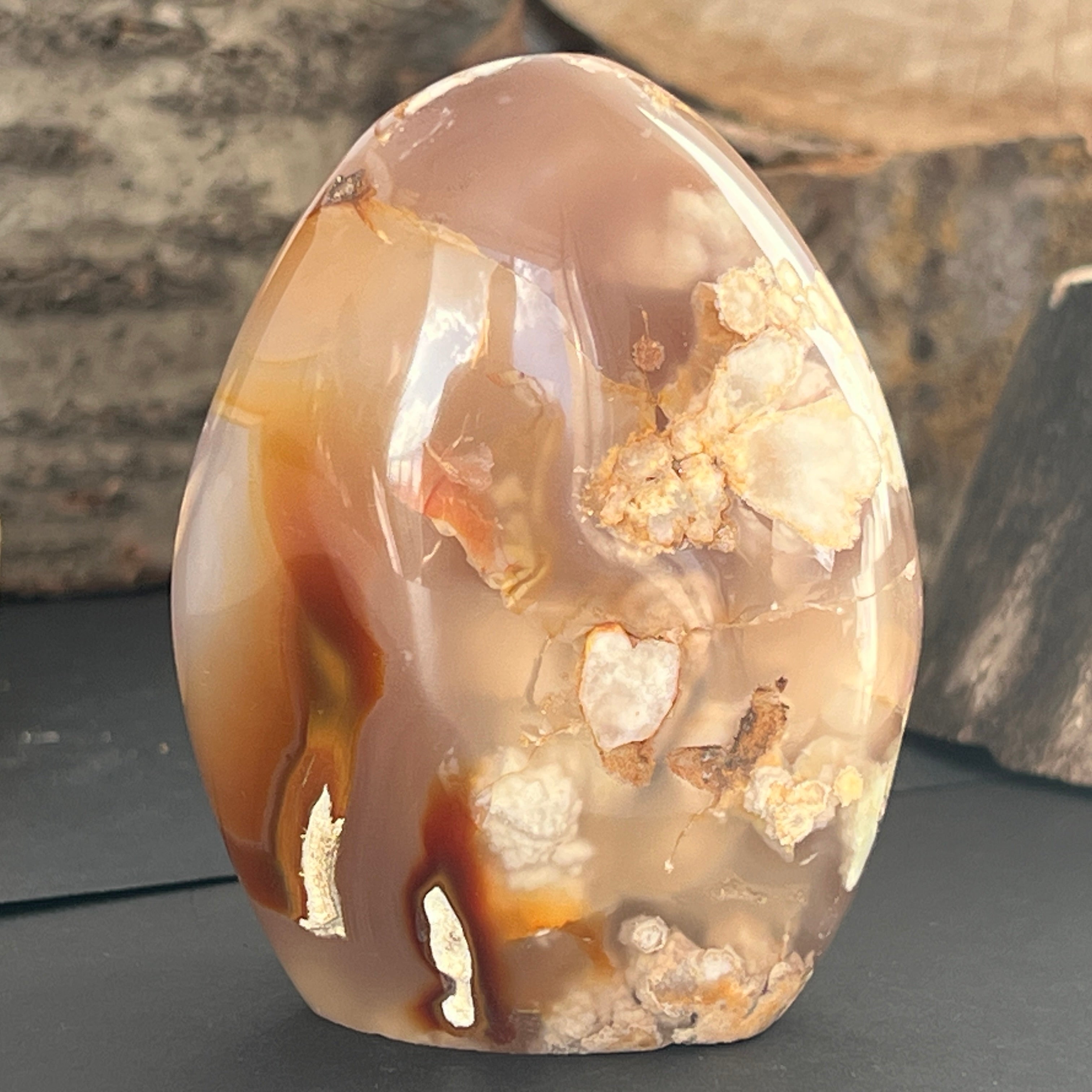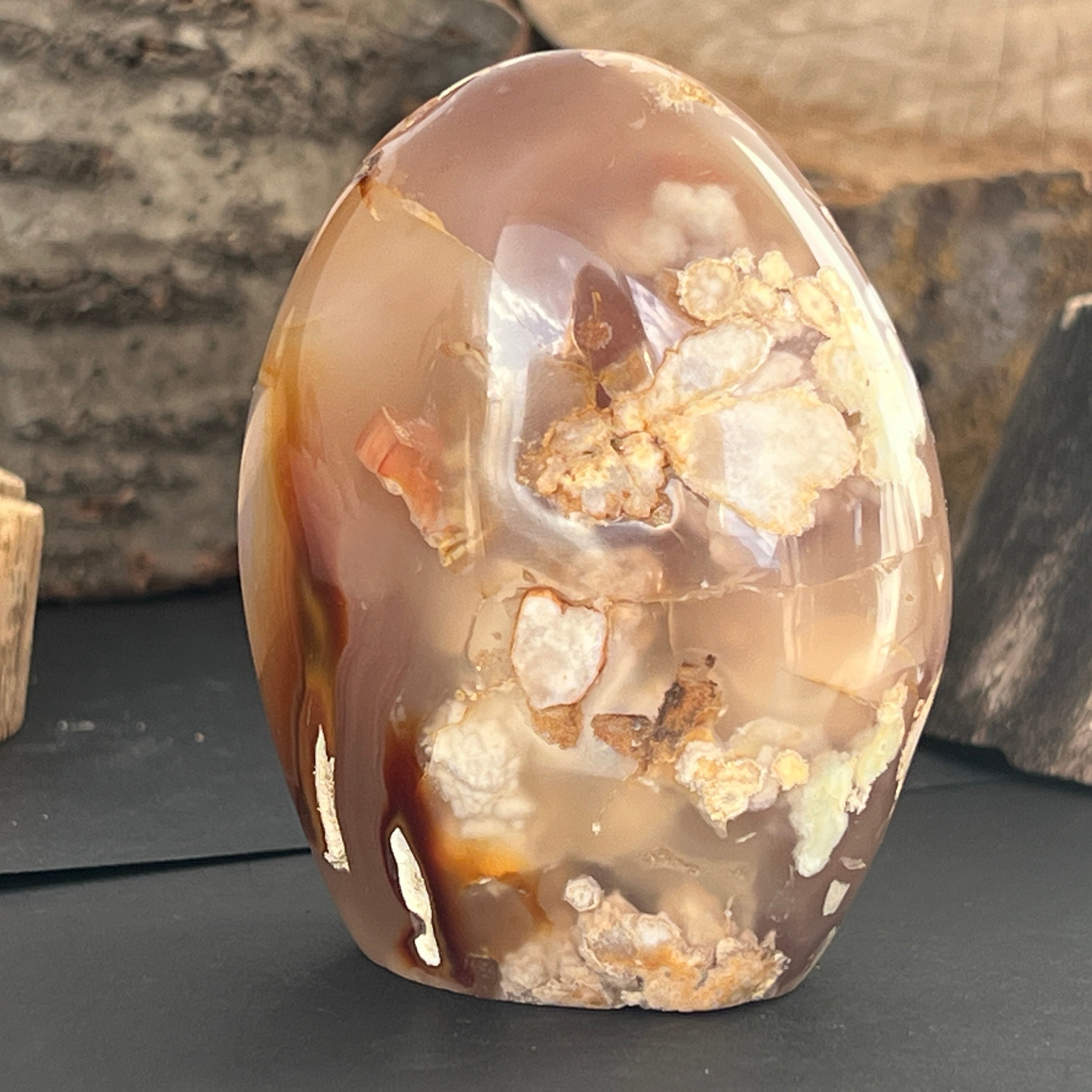 A virág achát használható meditációhoz, ékszerként vagy természetes megjelenést kölcsönözhet annak a térnek, amelyben elhelyezik.