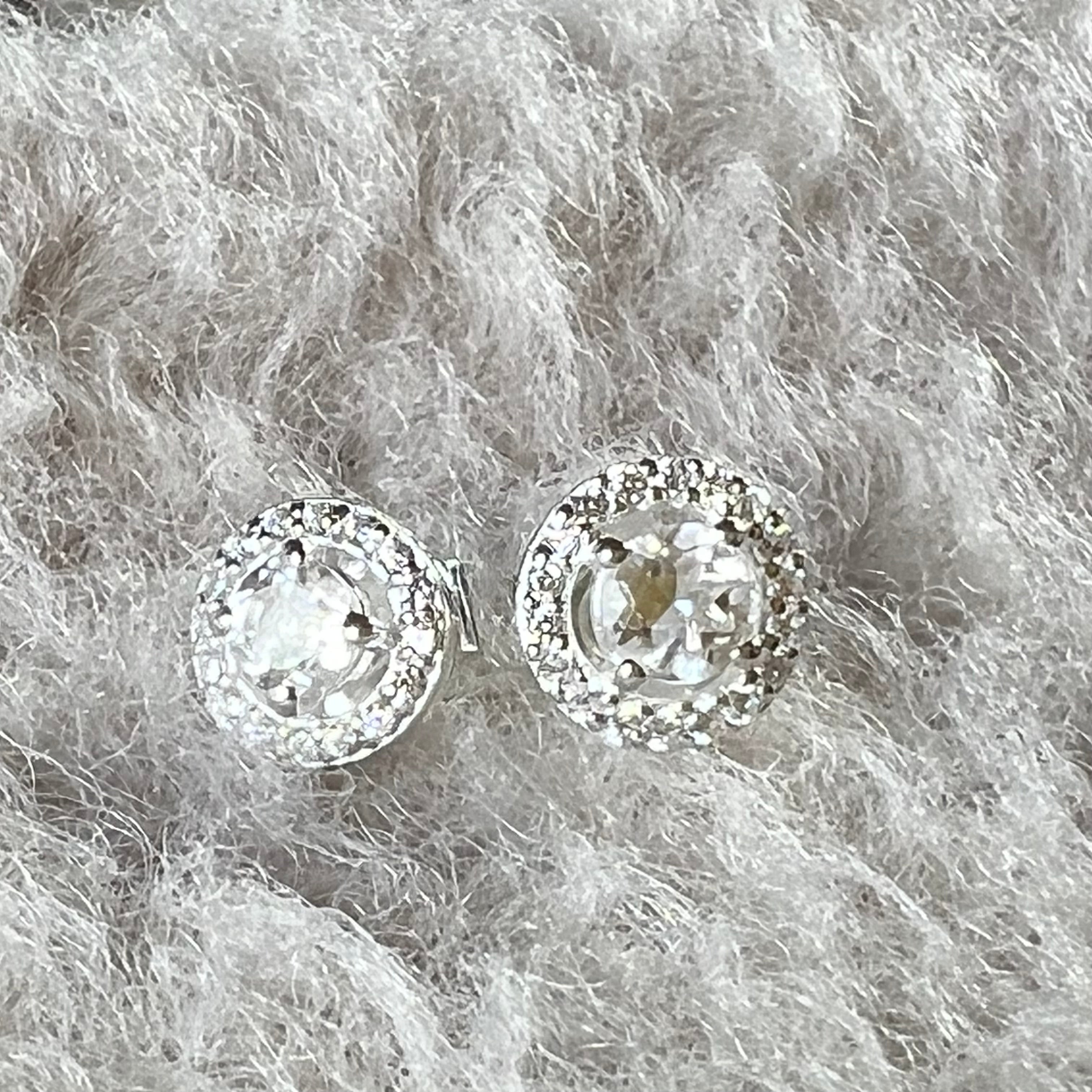 Kristály, fehér topáz fülbevaló, 6 mm-es bedugós fülbevaló