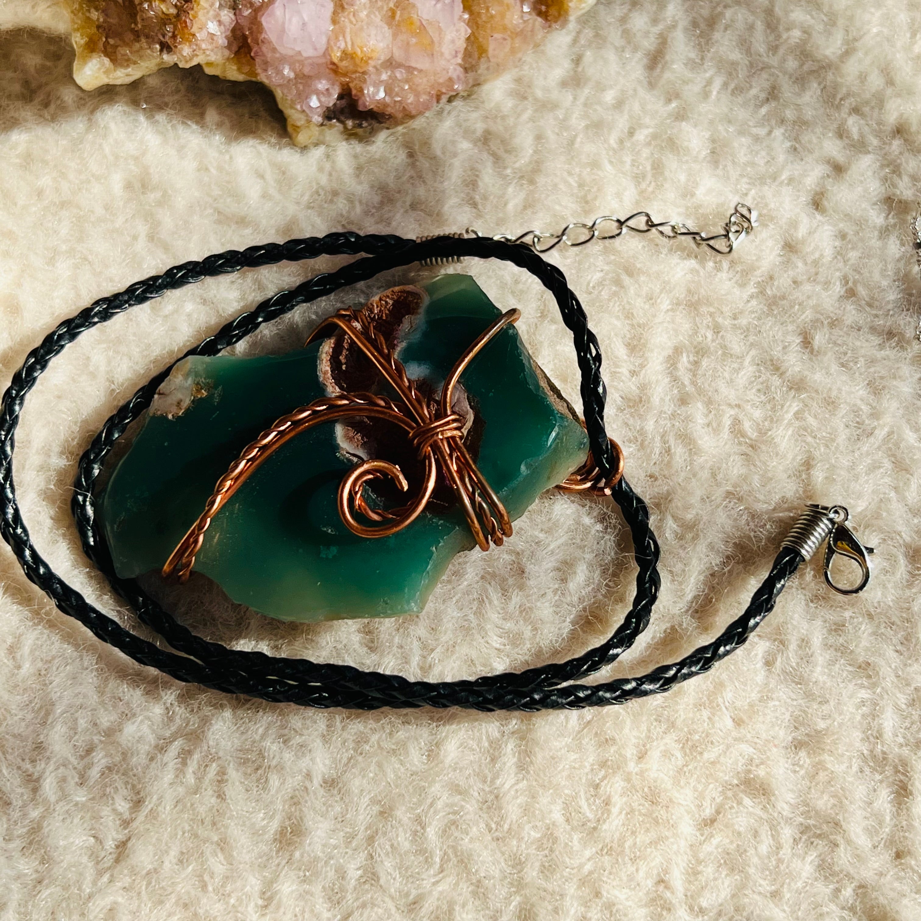 Kriszopráz medálos nyaklánc rézben/művészi dróttal, 3. modell