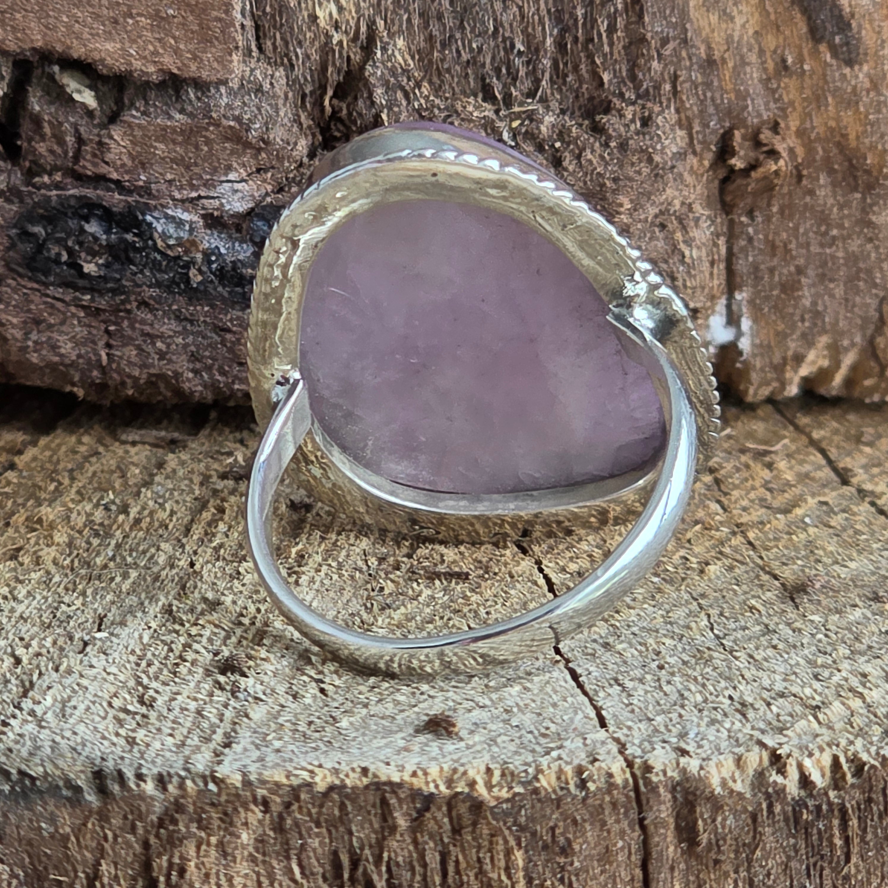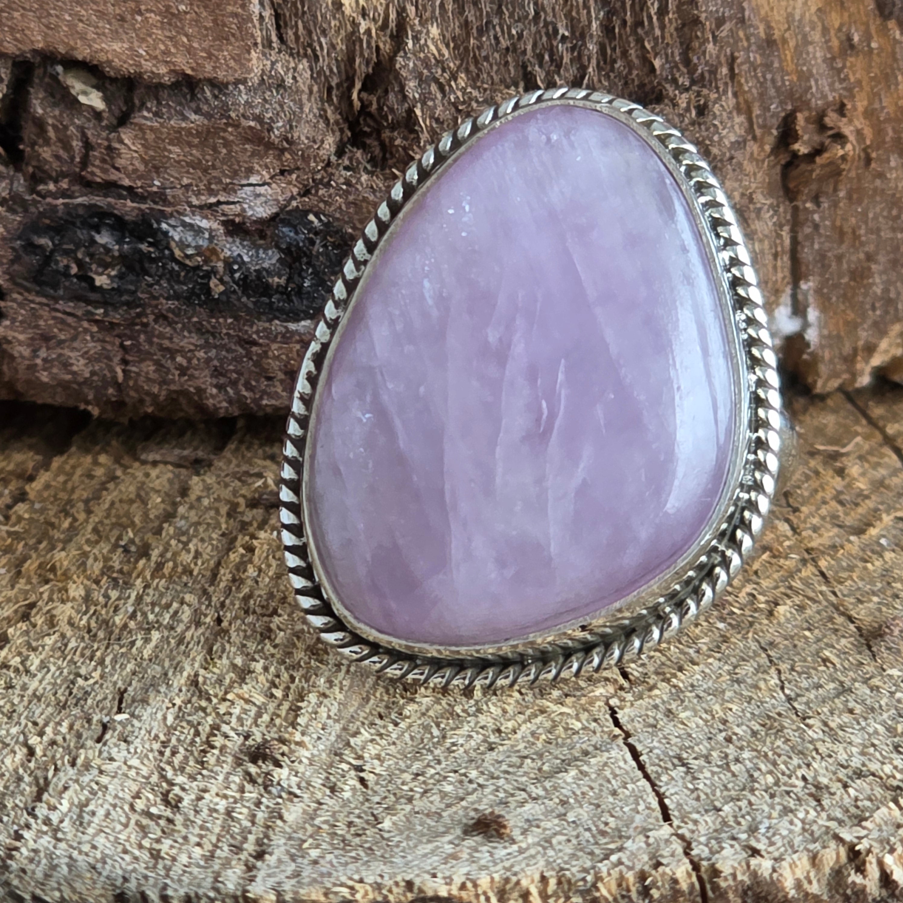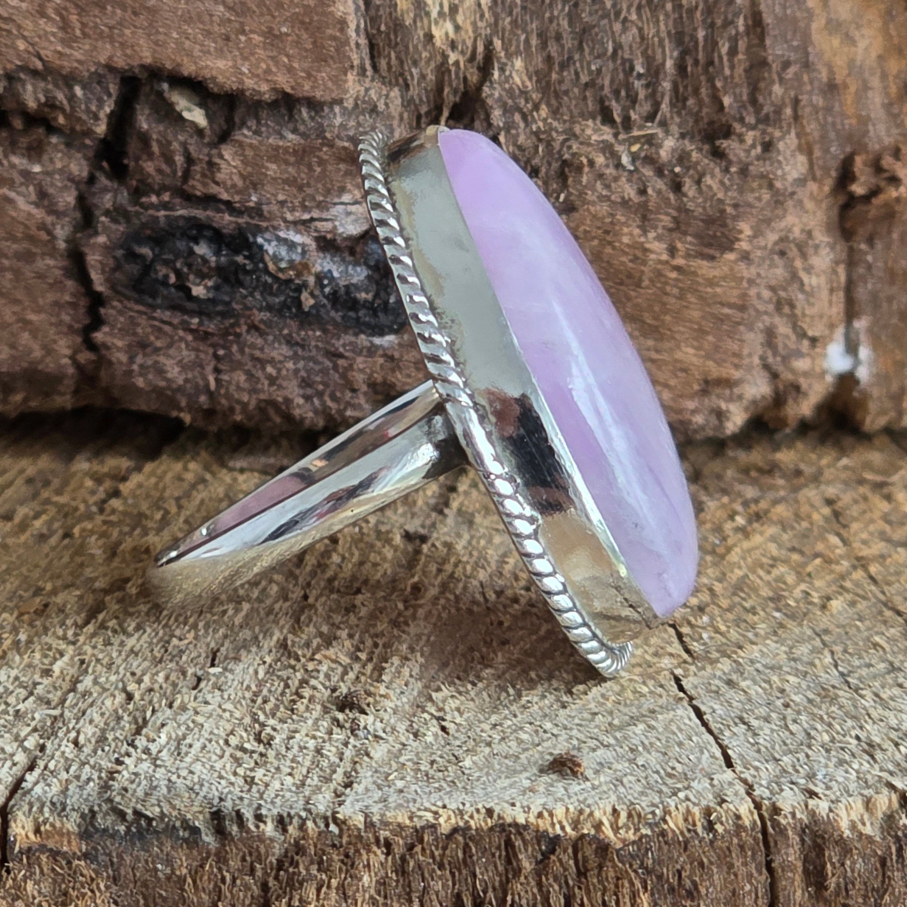 Csodálatos 925-ös ezüst gyűrű, mely középpontjában egy drágakő finomságát hordozza természetes kunzit – finom halvány rózsaszín tónusokkal és áttetsző tükröződésekkel, amelyek mintha fényt lehelnének.