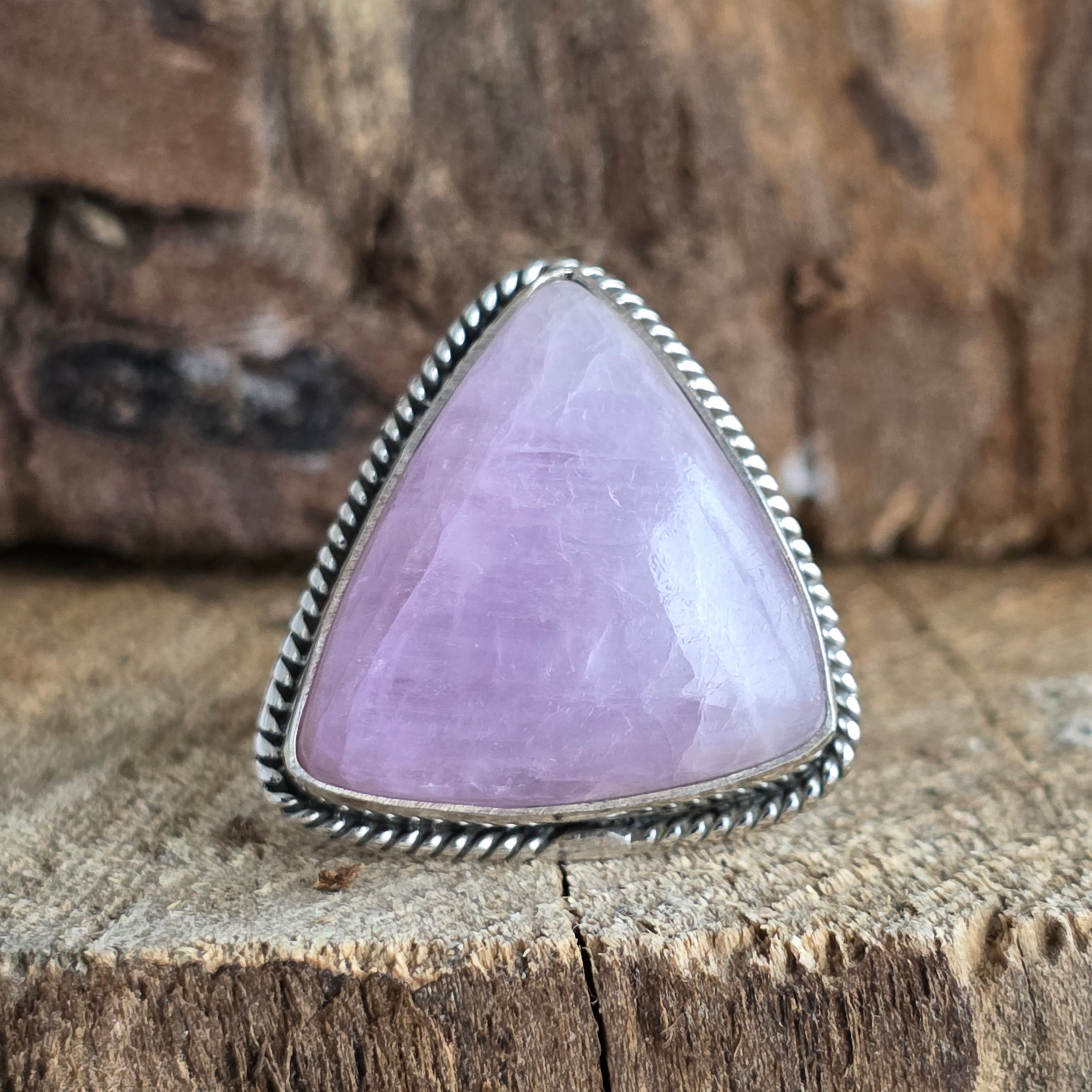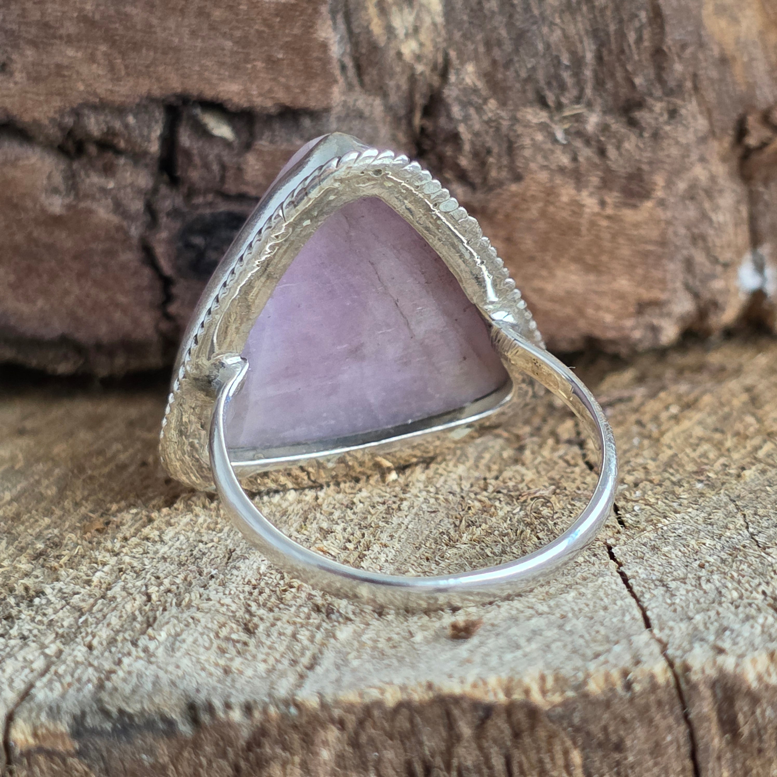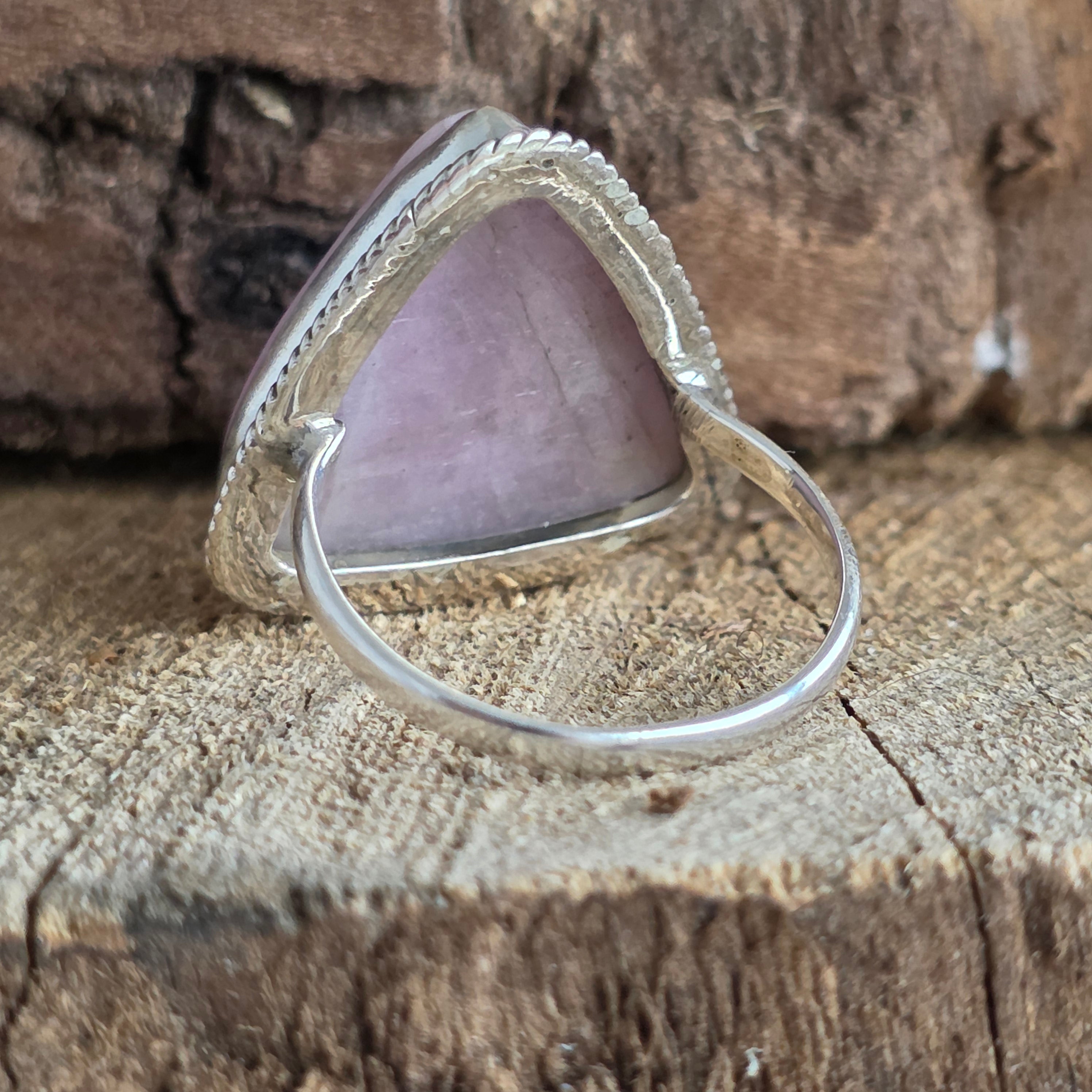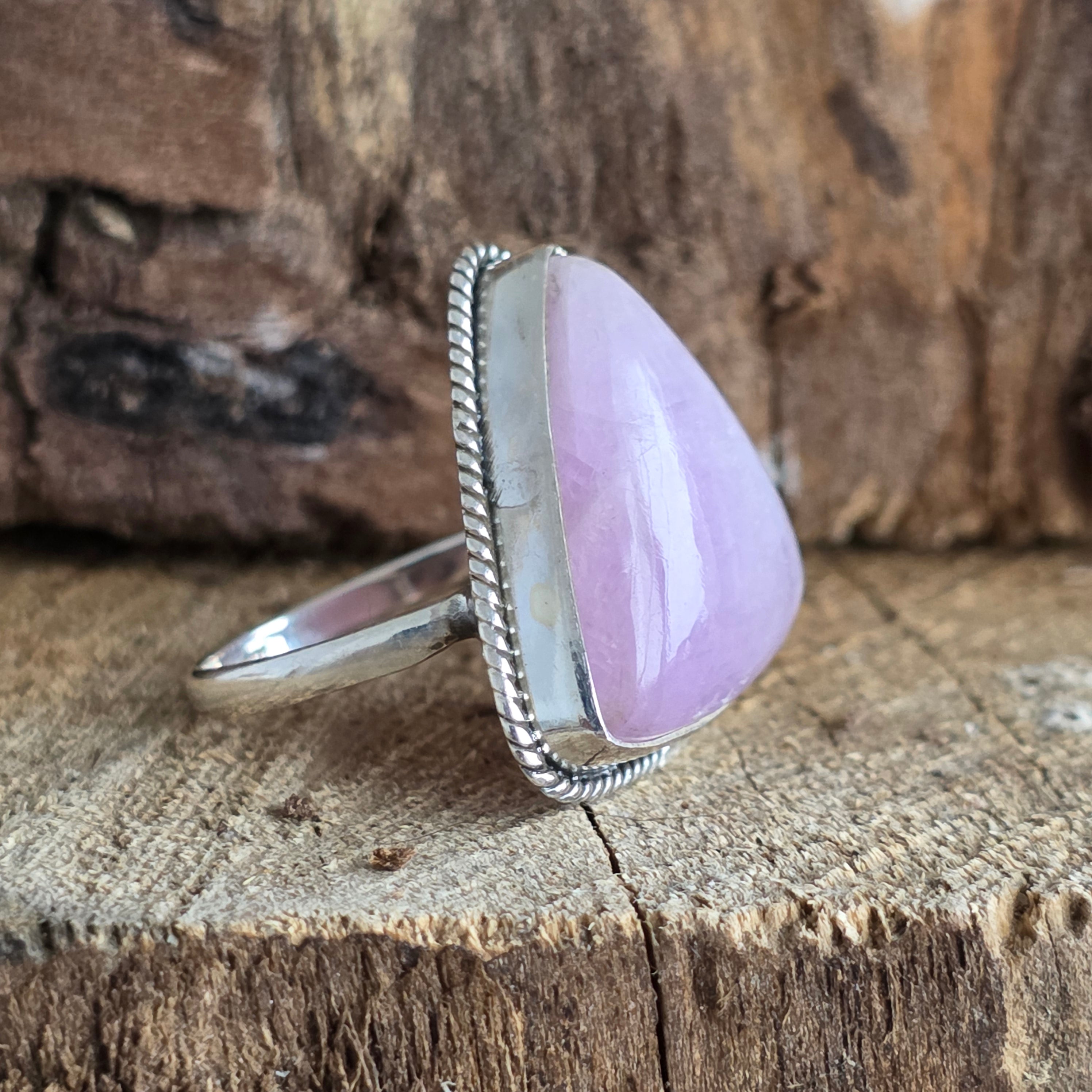 Csodálatos 925-ös ezüst gyűrű, mely középpontjában egy drágakő finomságát hordozza természetes kunzit – finom halvány rózsaszín tónusokkal és áttetsző tükröződésekkel, amelyek mintha fényt lehelnének.