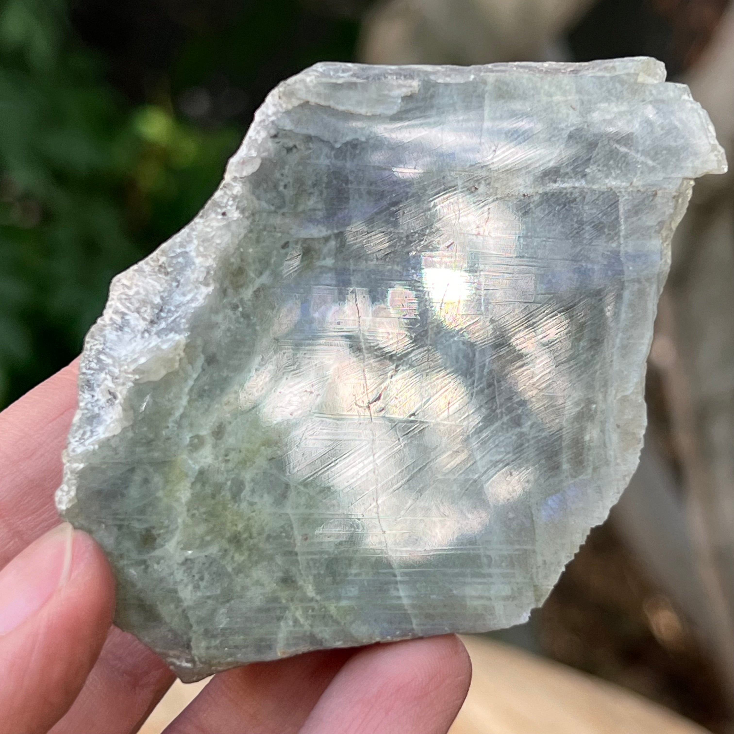 Labradorit durva csiszolt kő Madagaszkár 4-es modelljéről, mérete 8,5 * 6 * 2,5 cm