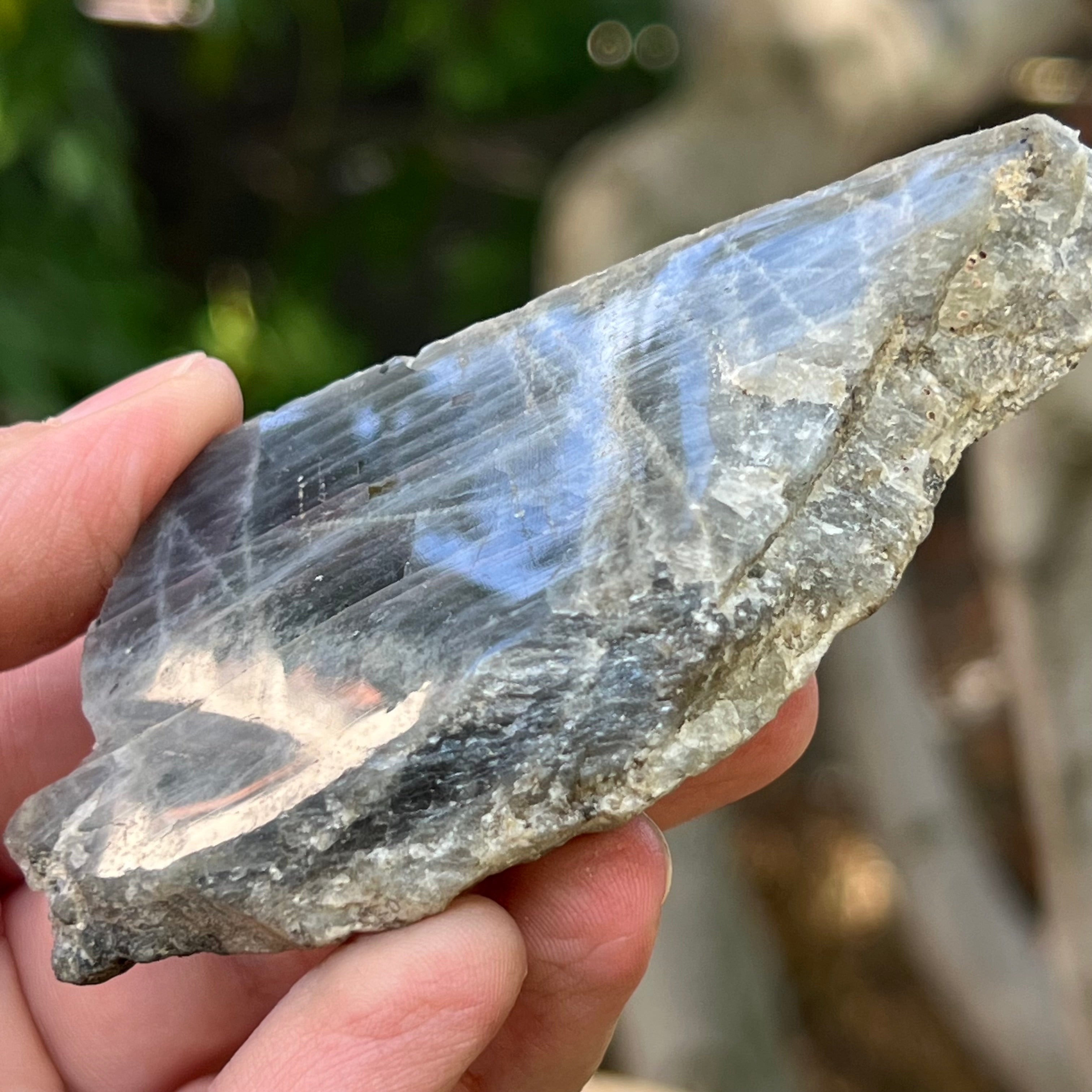 Labradorit durva csiszolt kő Madagaszkár 6-os modelljéről, mérete 8,5 * 4,5 * 2,5 cm