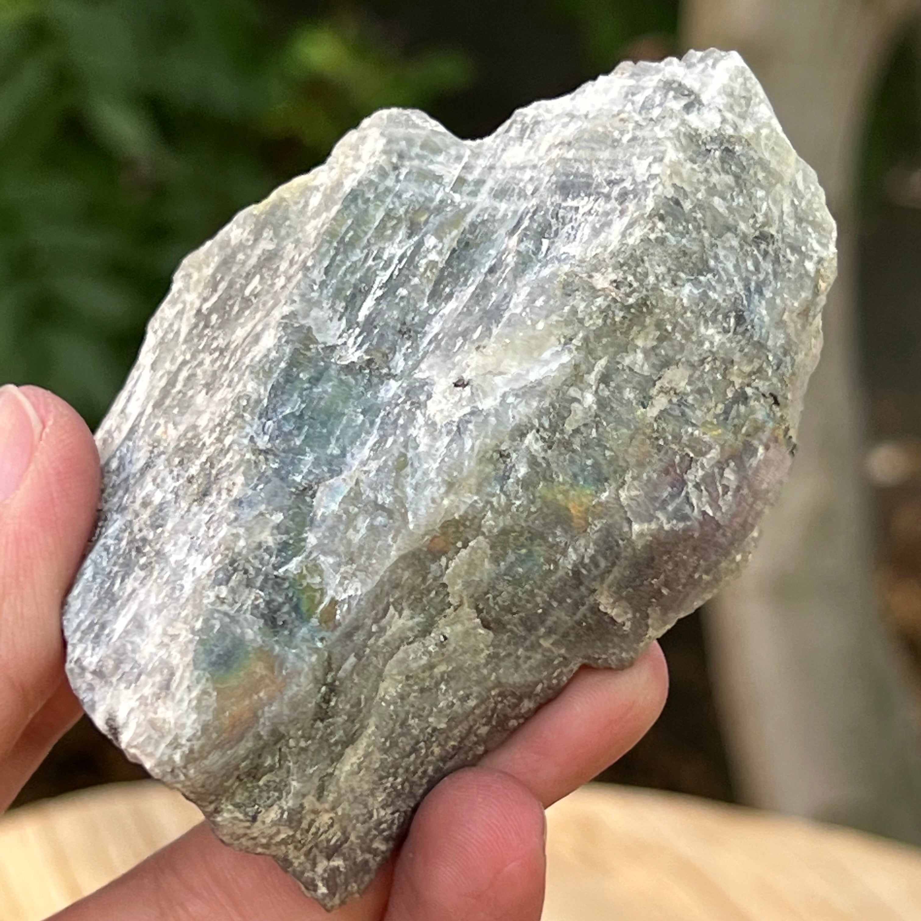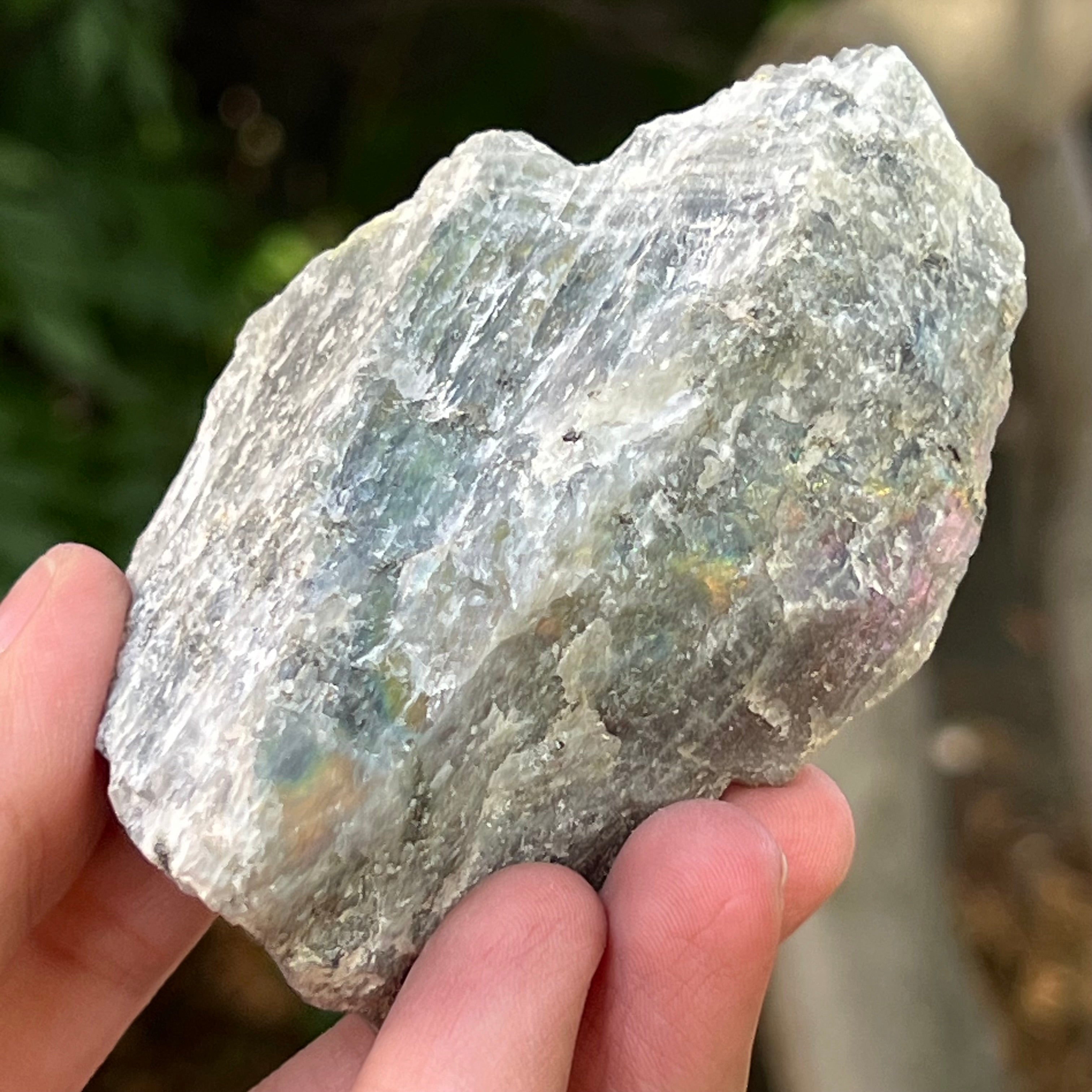 Labradorit durva csiszolt kő Madagaszkár 1-es modelljéről, mérete 8,6 * 5,5 * 3 cm