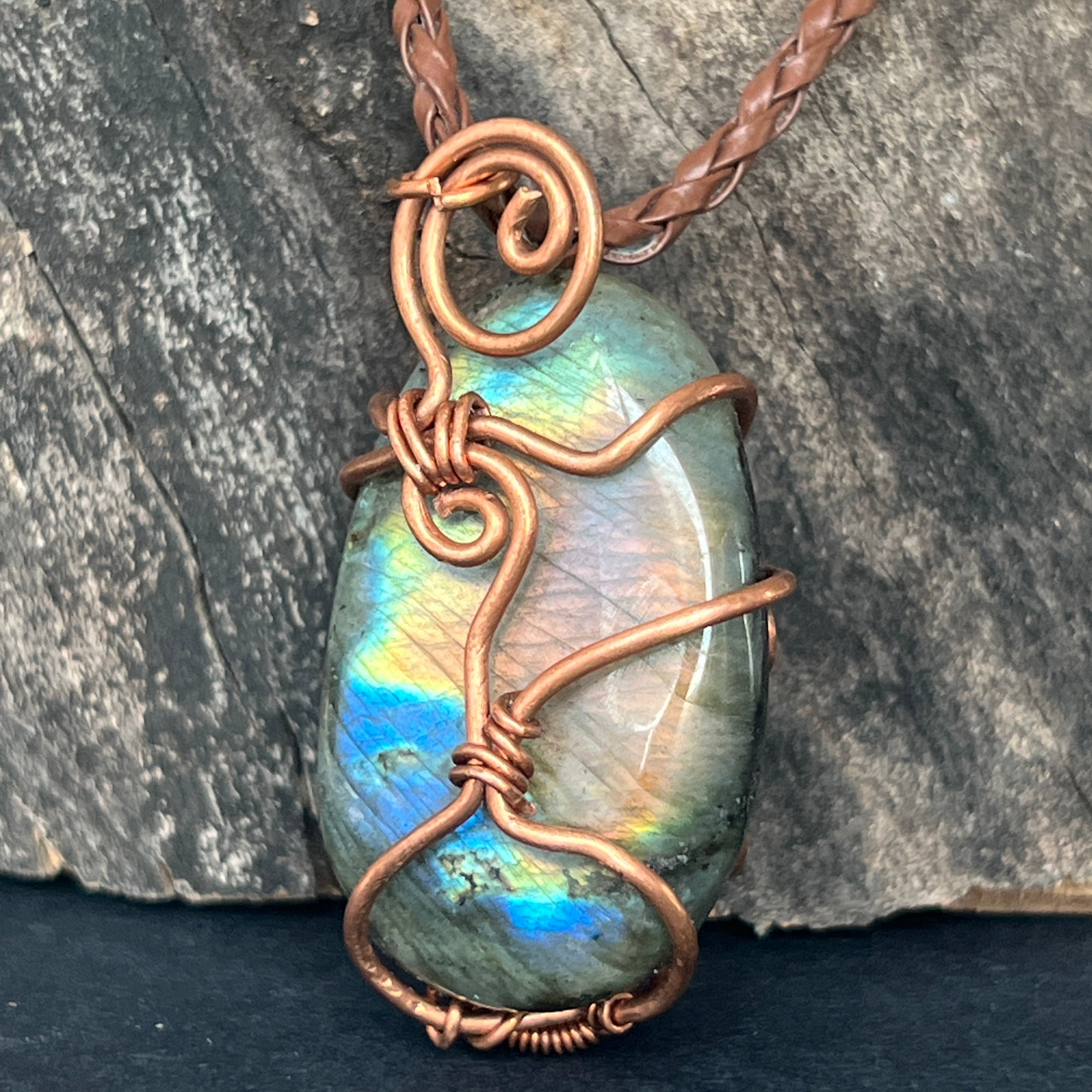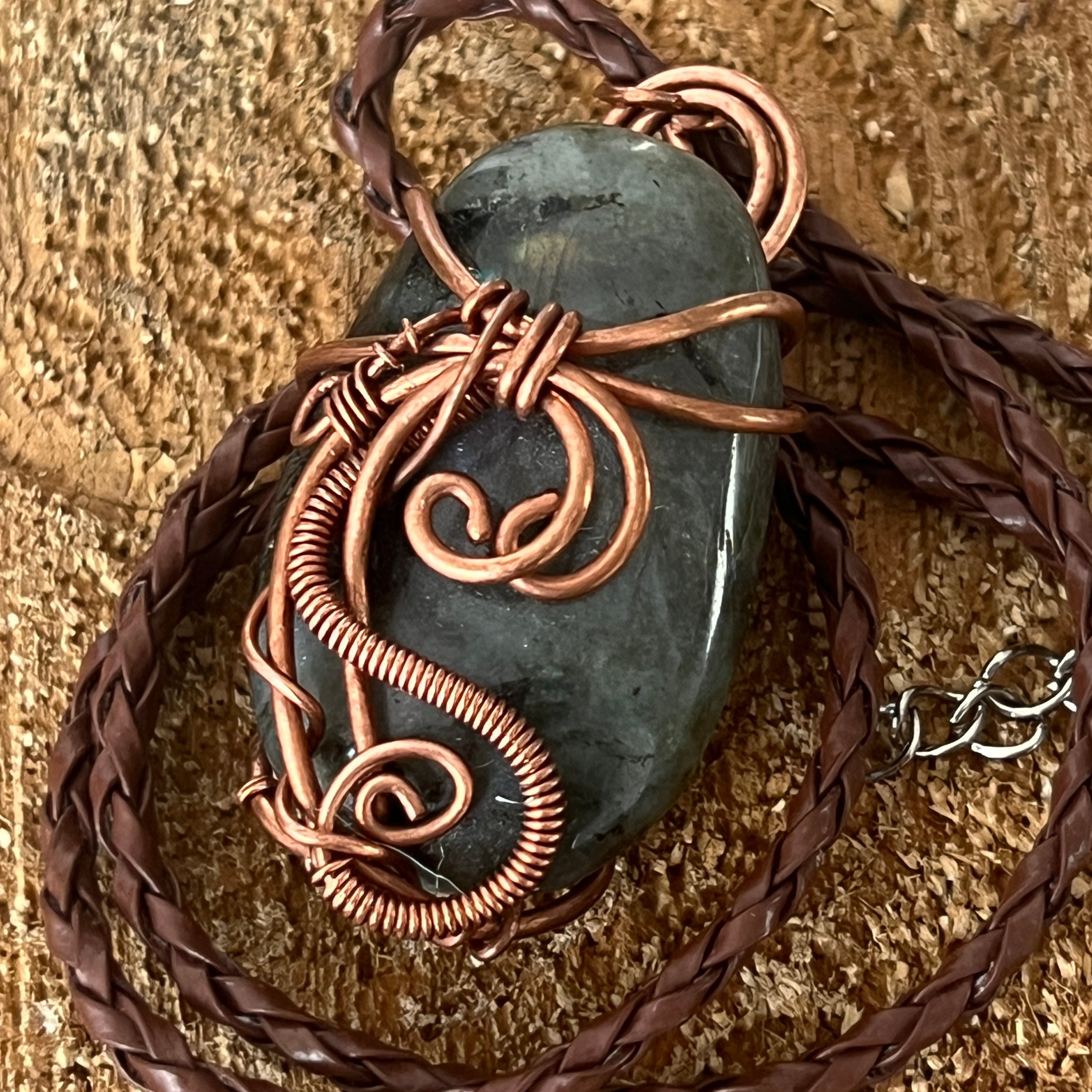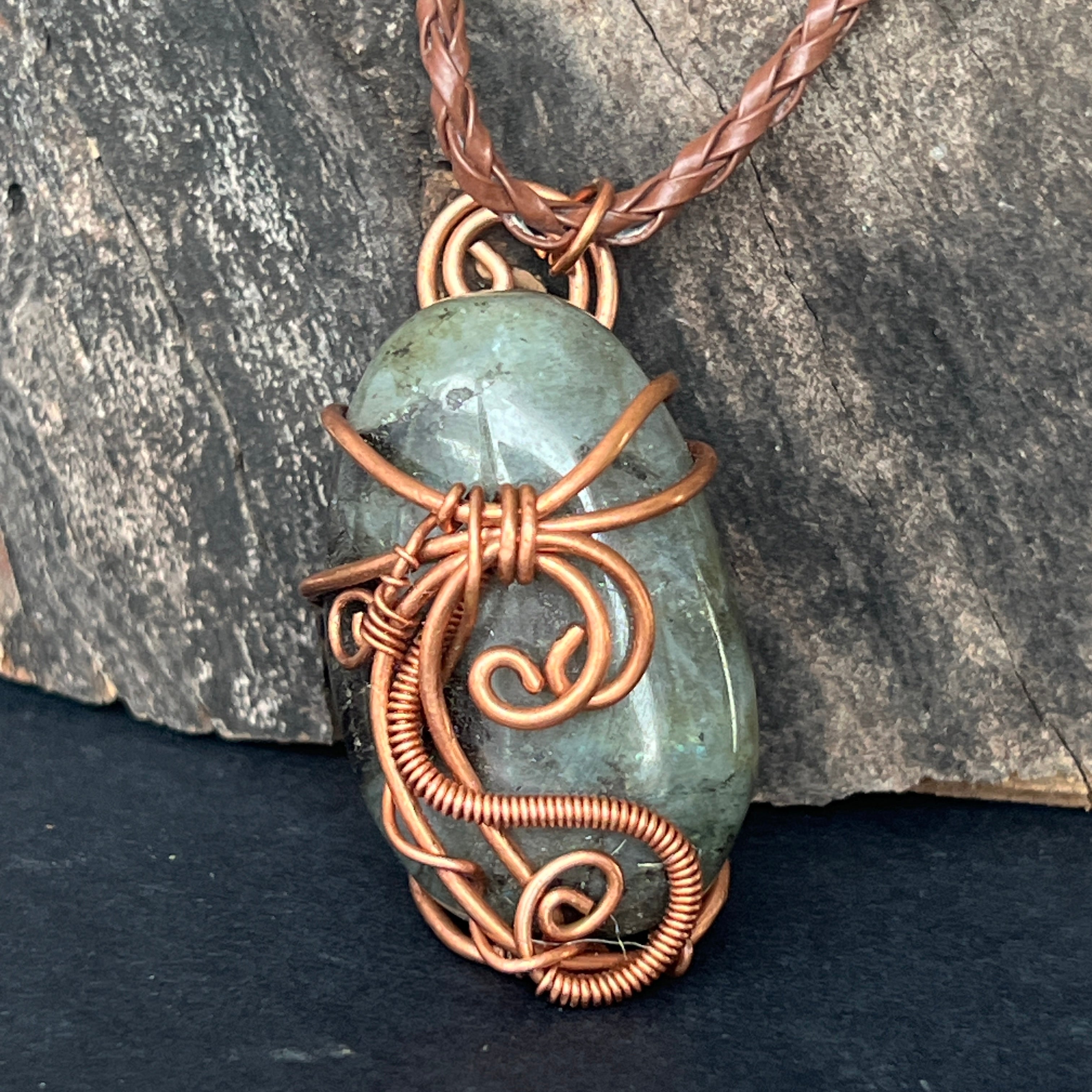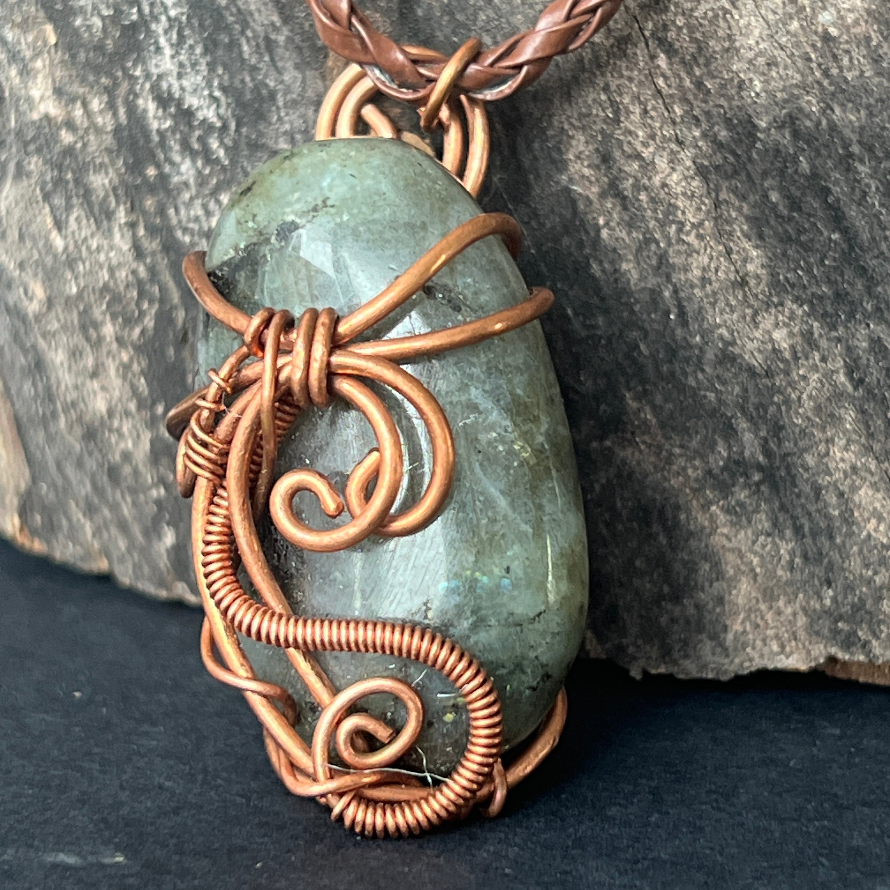 Labradorit medálos nyaklánc rézből/művészi drótból, 2. modell
