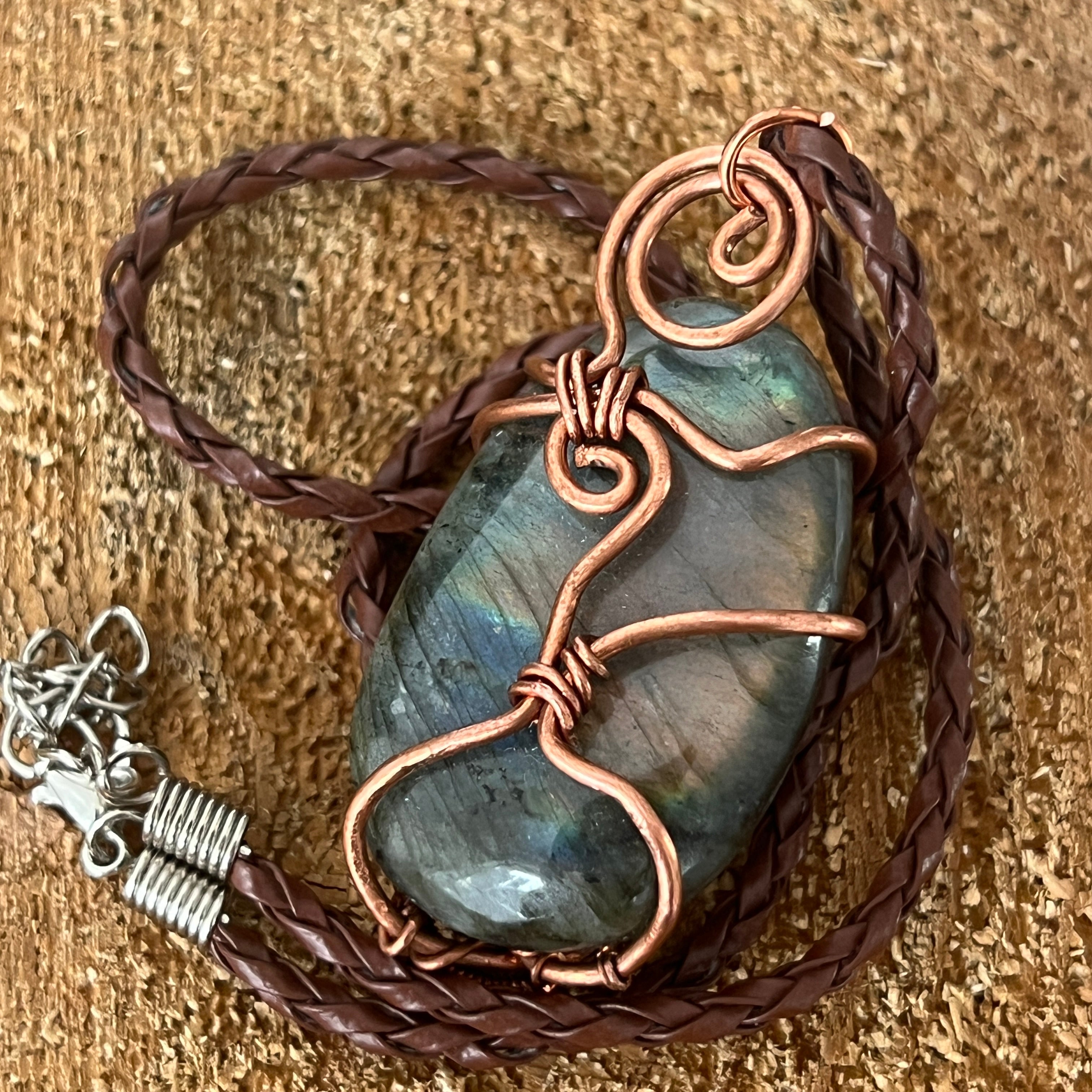 Descriere - Labradorit medálos nyaklánc rézből/művészi drótból, 2. modell
