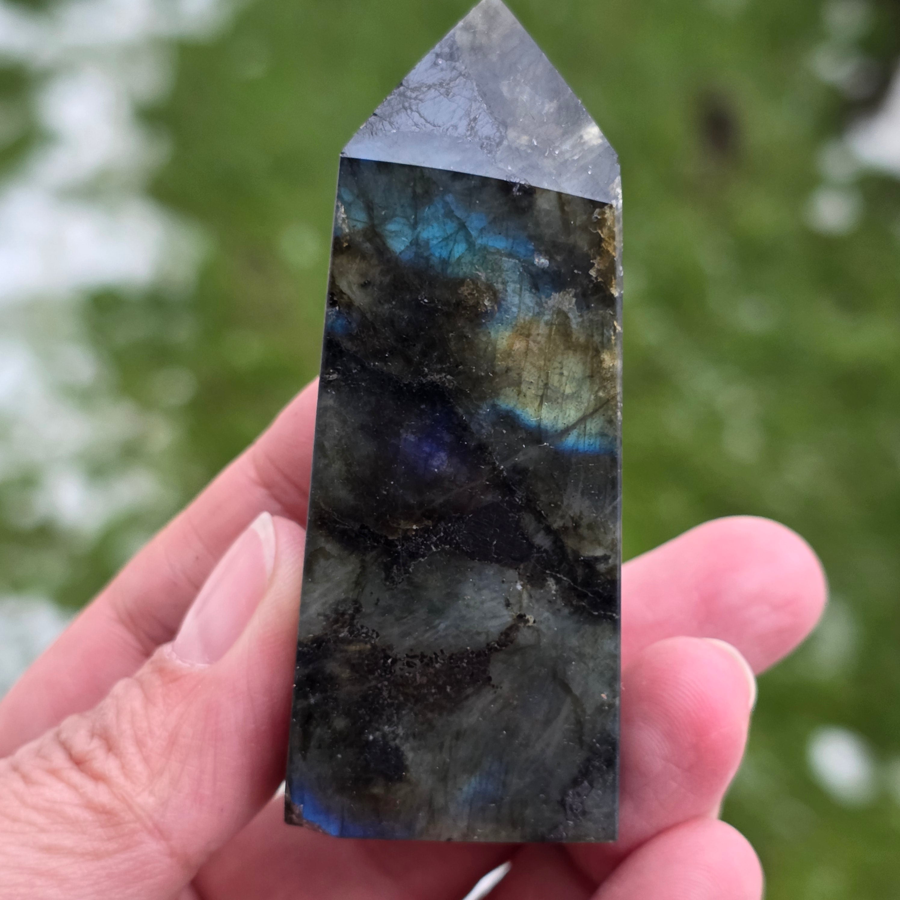 Labradorit obeliszk m1, méret 8,5 *4*2,4 cm