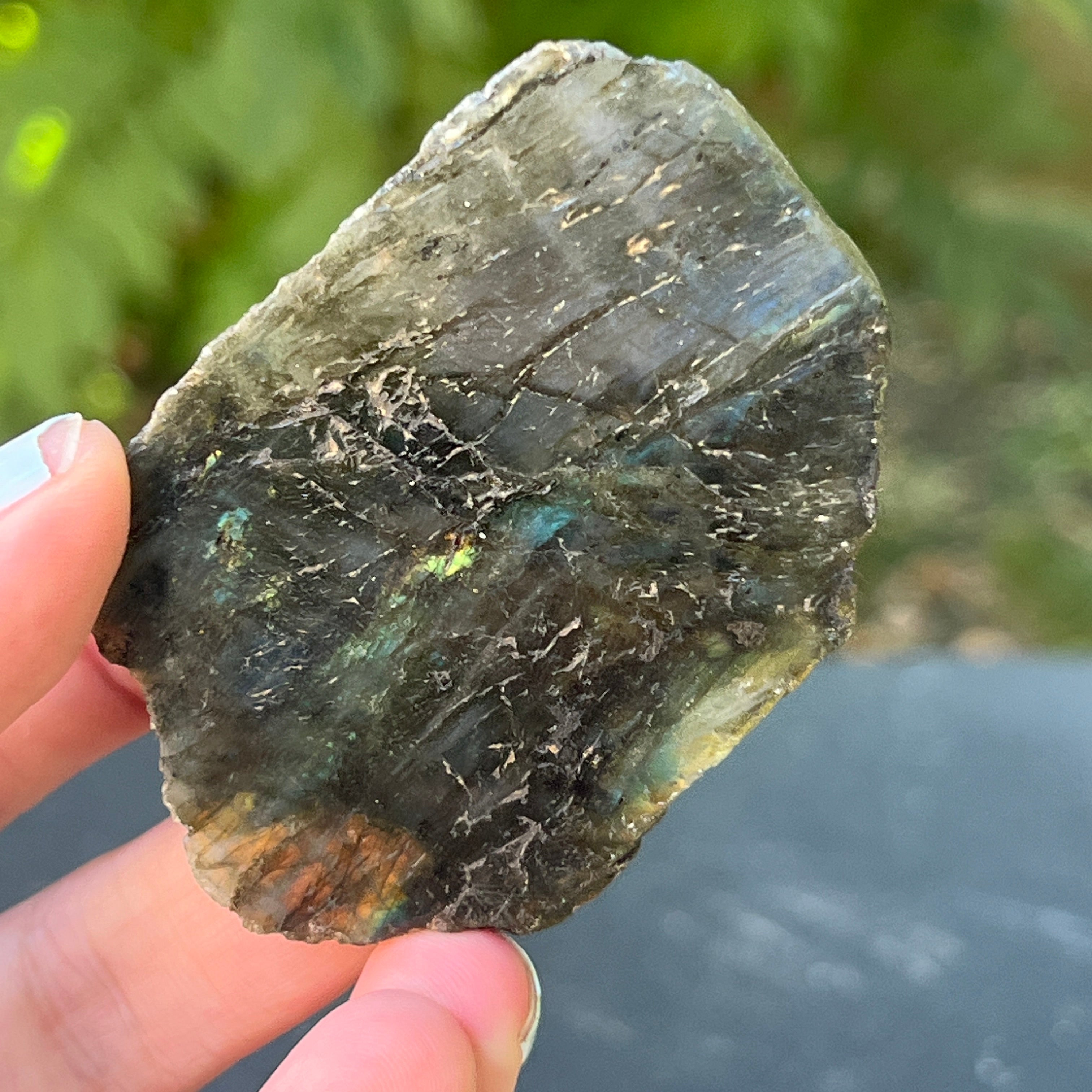 Vélemények - Labradorit polírozott durva kő az egyik oldalon, m13