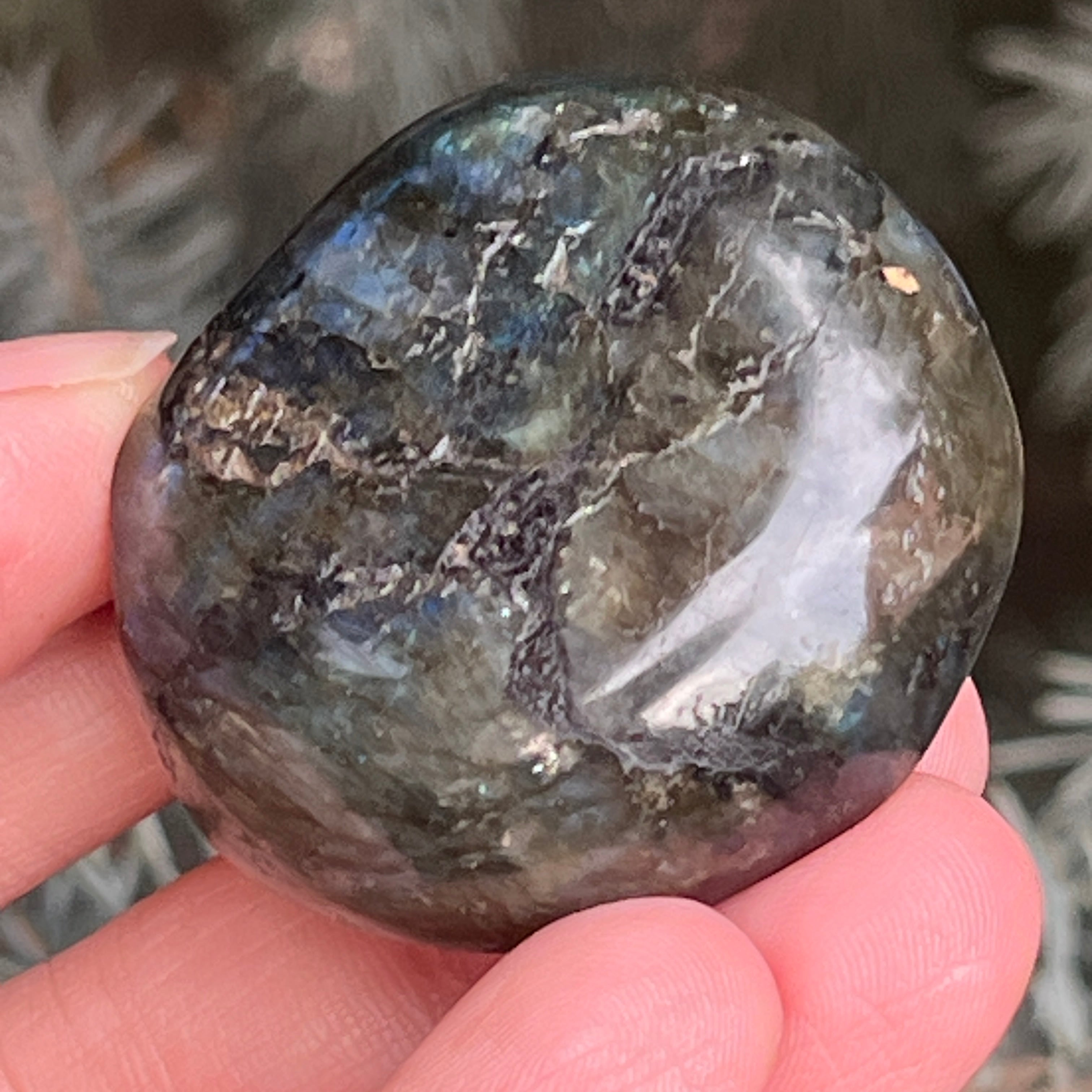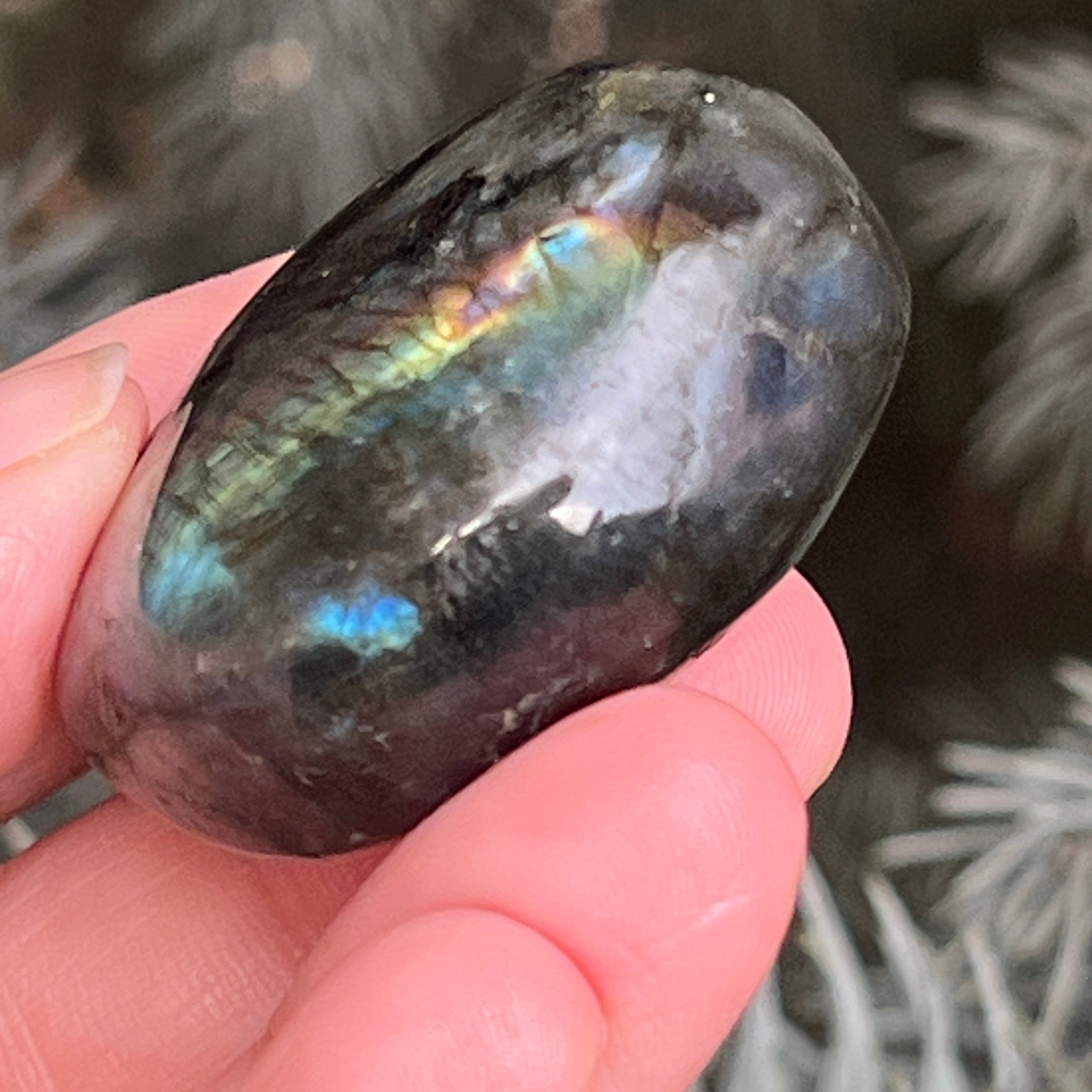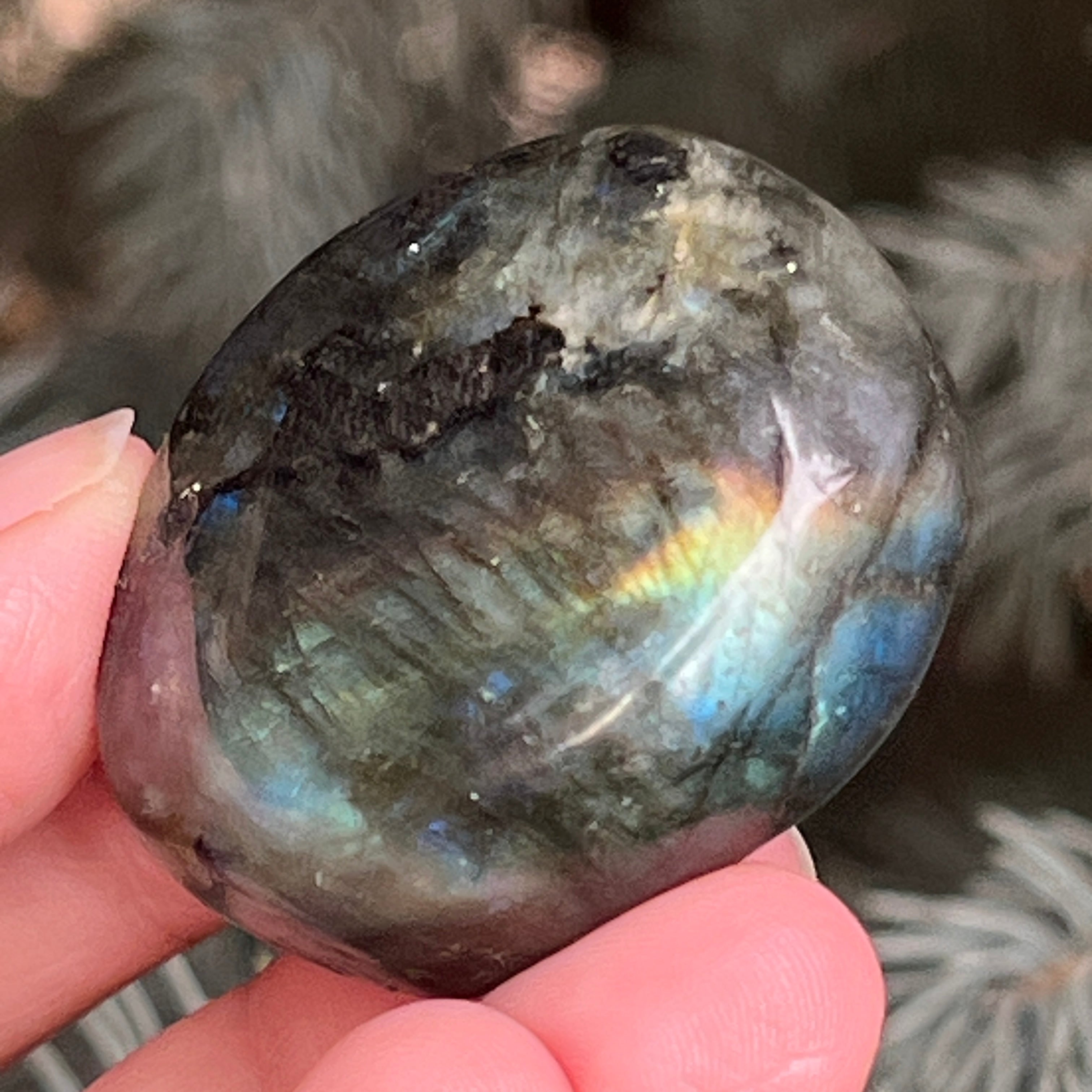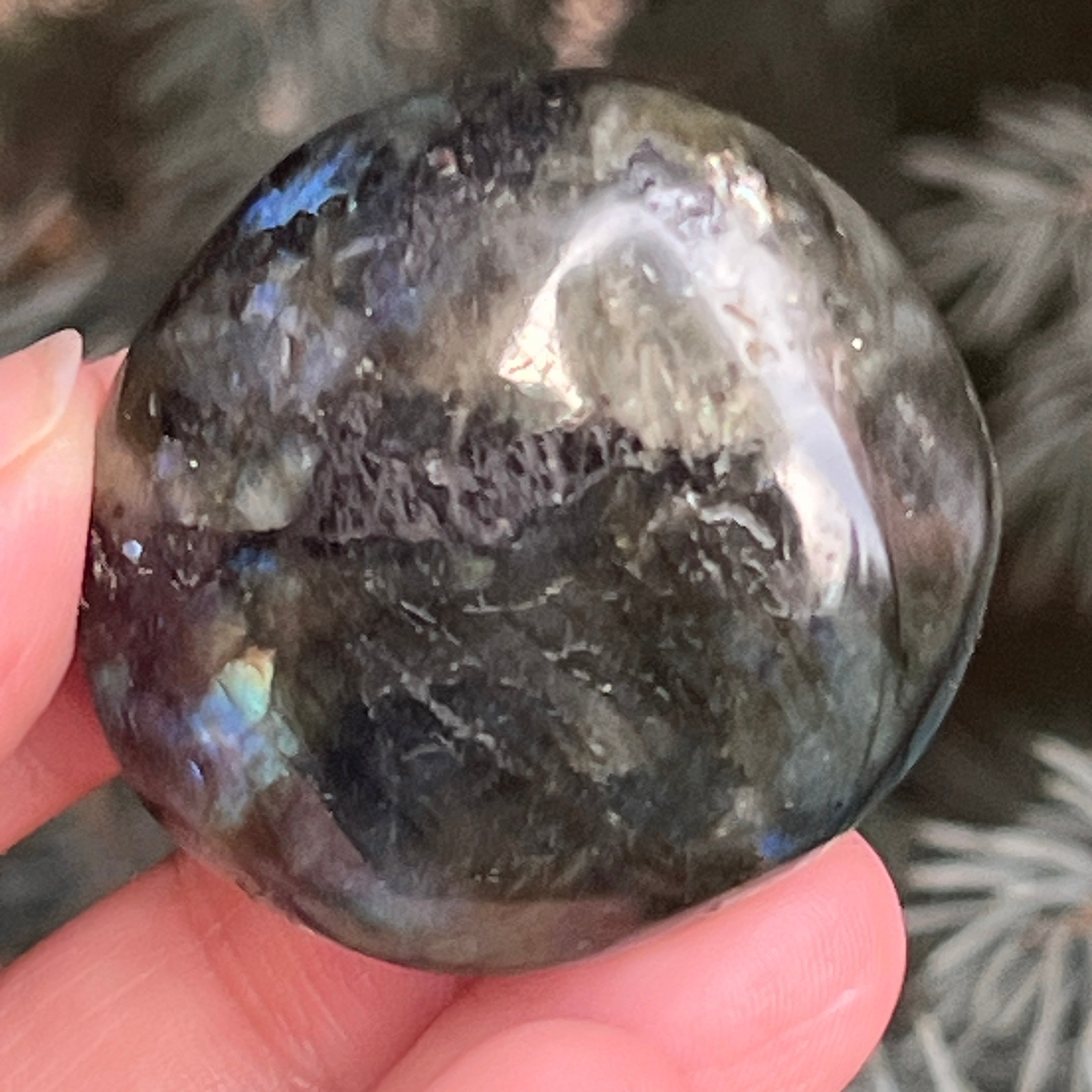 Labradorit tenyérkő m1, mérete 3,9 * 3,7 * 1,8 cm