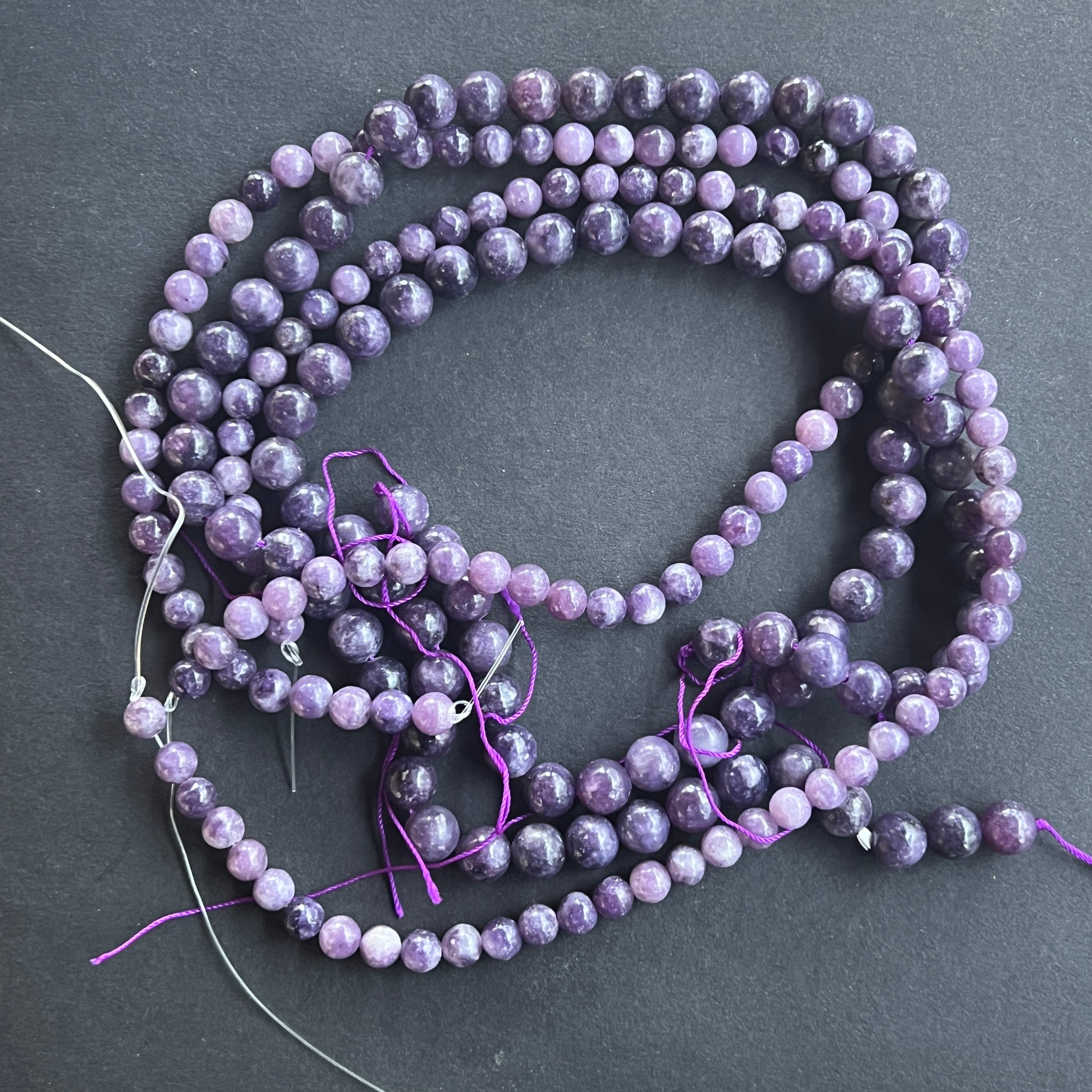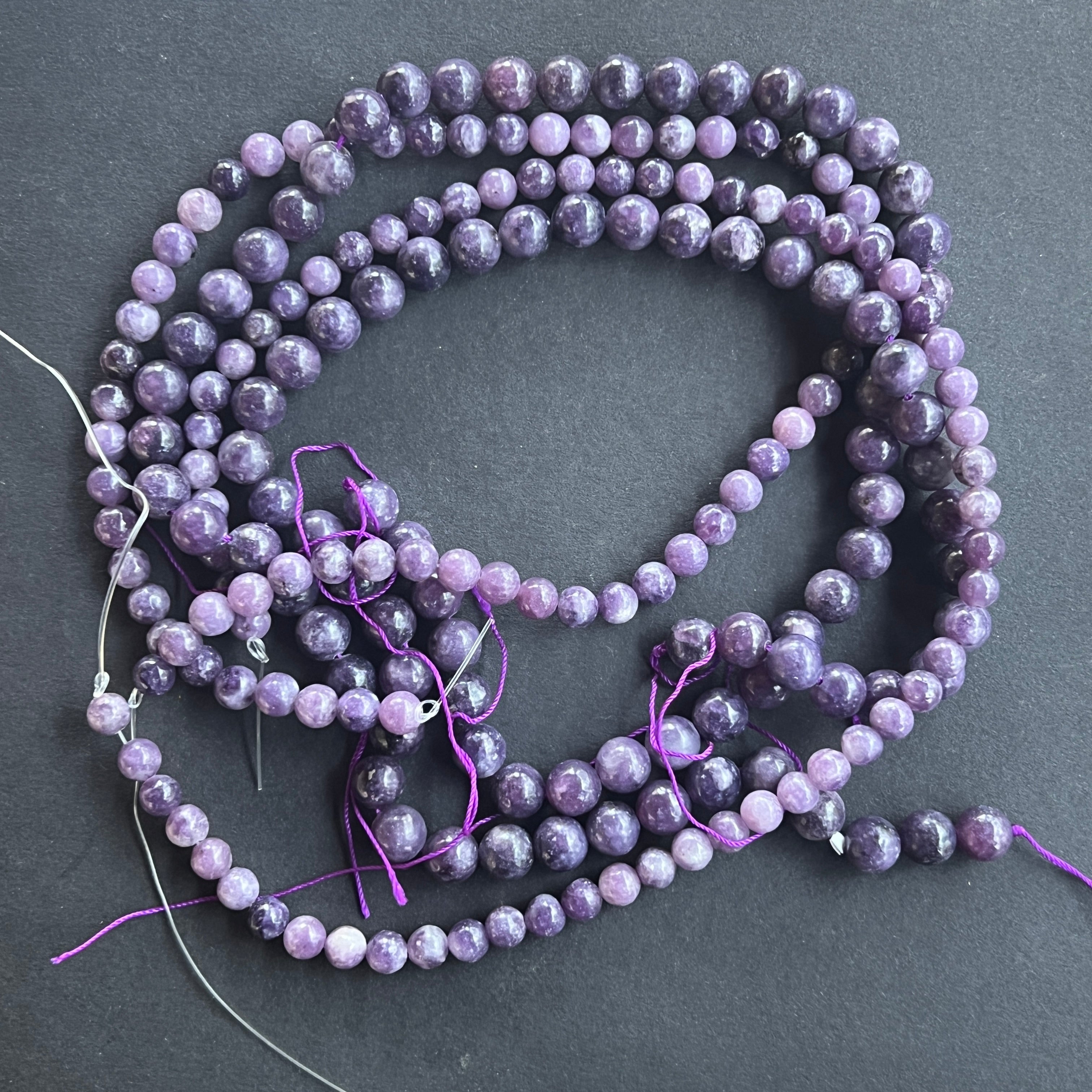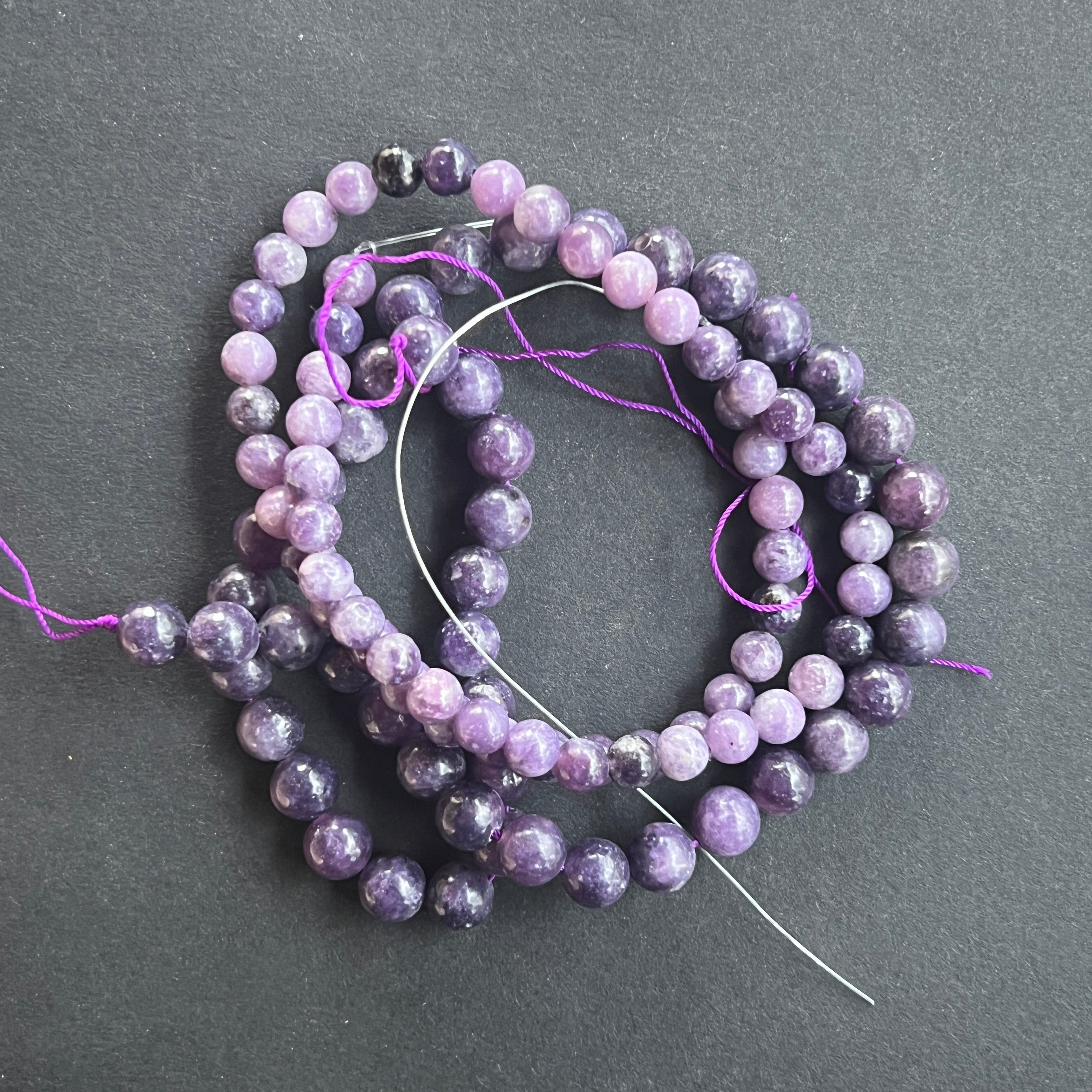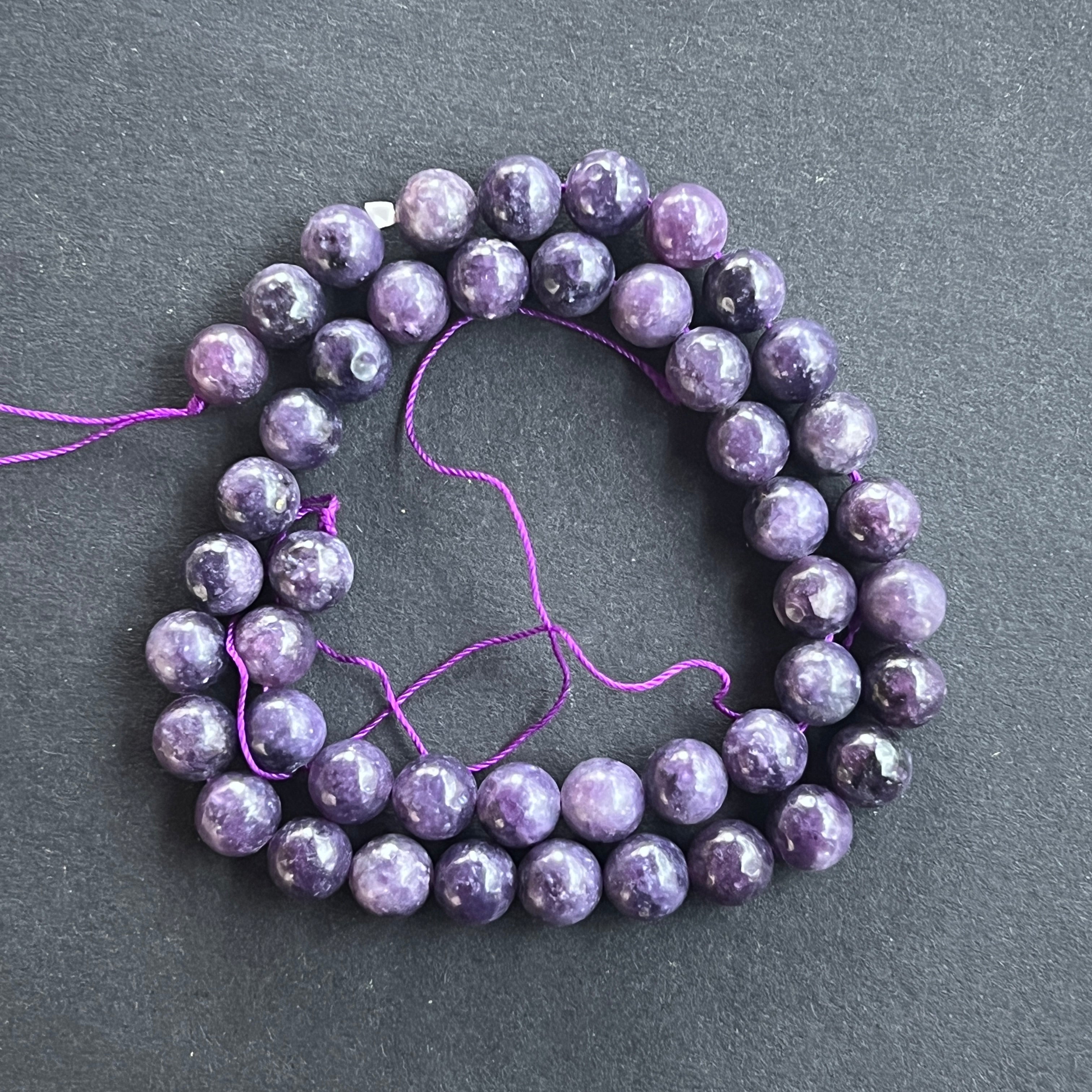 LEPIDOLIT sorozat, amely természetes gömb formájú gyöngyökből áll, tökéletes nyakláncokhoz, karkötőkhöz vagy más kézműves ékszerekhez.